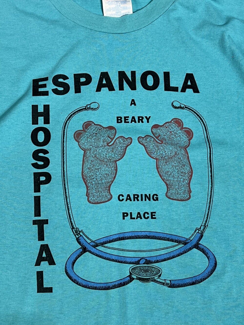 A BEARY CARING PLACE 라는 슬로건답게 청진기 사이에 곰돌이 프린팅이 올려진 ESPANOLA HOSPITAL 프린팅 티셔츠.
