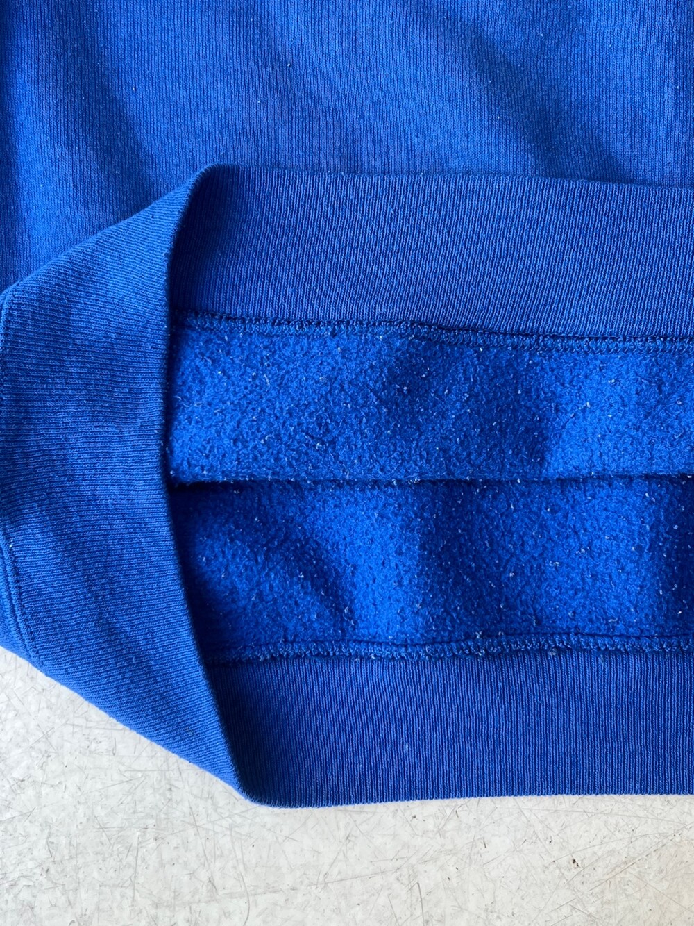 튜블러 타입 스웻셔츠 중에서도 수요가 많은 90년대 러셀 애슬레틱의 스웻셔츠입니다. 컨디션 좋은 러셀 애슬레틱의 50/50 스웻에서 기대할 수 있는 특유의 폭신한 원단감을 느끼기에는 살짝 얇아지기도 했고, 립도 텐션이 약해졌지만 너무 타이트하게만 입지 않는다면 벌키한 실루엣을 연출하기에는 충분합니다.