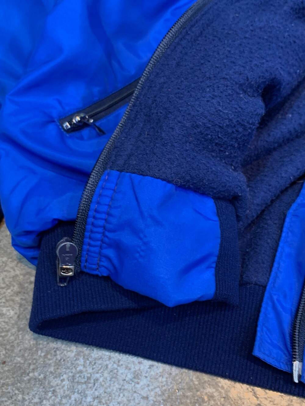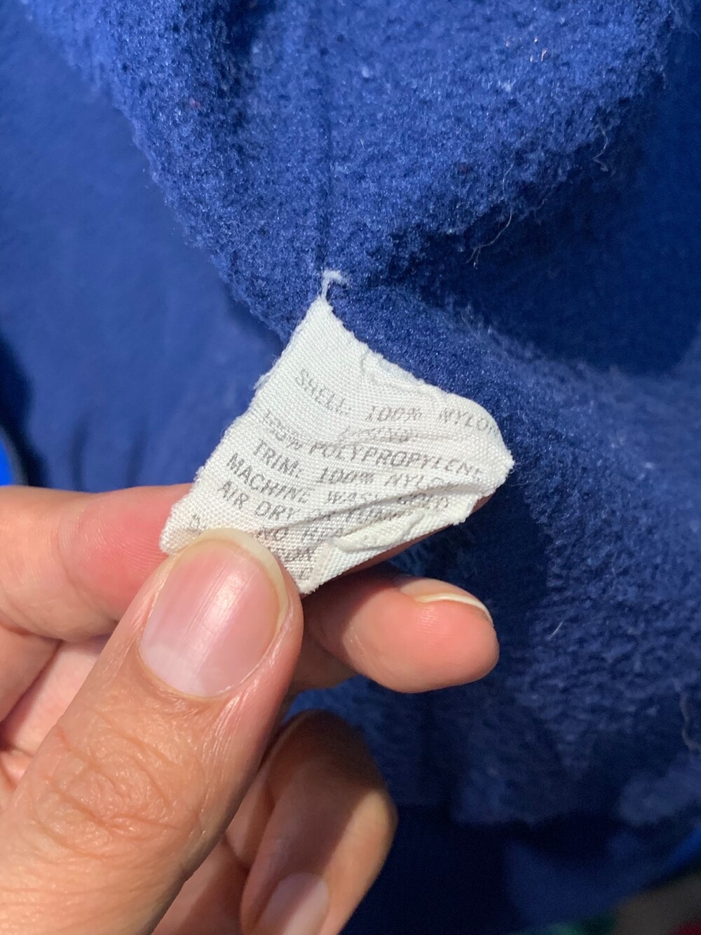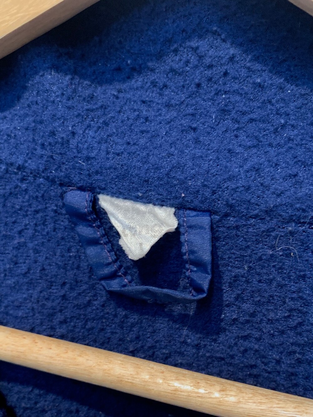🚩Detail 겉면 나일론 원단은 방풍을, 재활용 폴리에스테르로 생산된 플리스 원단 신칠라(Synchilla)가 라이닝이 보온을 담당하는 파타고니아의 쉘드 신칠라 자켓입니다. 파타고니아 라벨이 넥라인 안쪽에도 붙는 8-90년대 사이 제품과는 다르게 별도의 라벨 없이 표기 사이즈만 기재되어 있을 뿐더러 보일드 울과 유사한 거친 원단감의 번팅 플리스 라이닝이 몸판에만 붙어있는, 80년대 초반에 생산된 것으로 추정되는 제품입니다. 표기 Large Long에 해당하는 사이즈로 레귤러에 비하면 소매나 총장지 길게 내려오긴 하지만 원체 쉘드 신칠라 자켓 기장이 짧게 나오는 편이기도 하고 긴 소매기장도 립 텐션이 좋은 편이라 크게 개의치않고 착용할 수 있을만한 사이즈입니다.