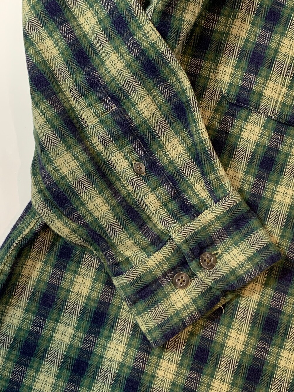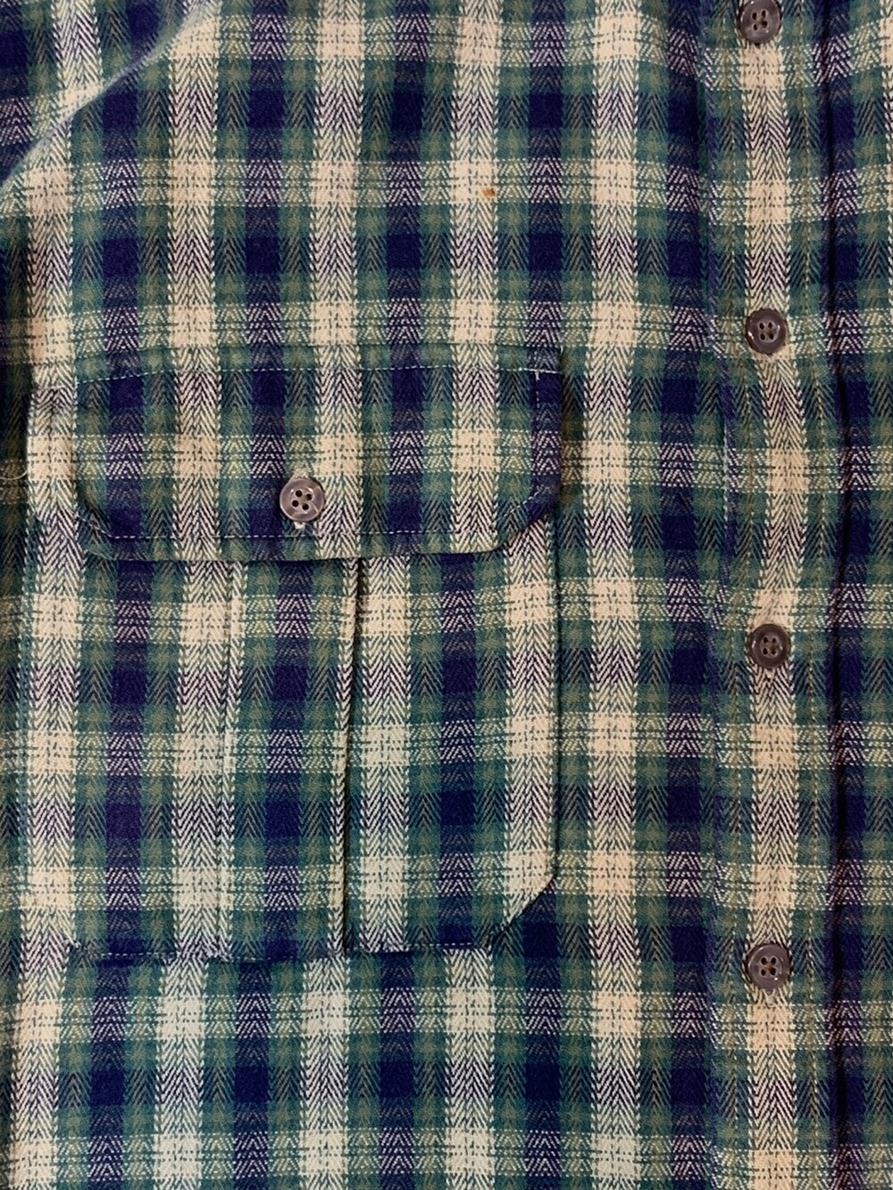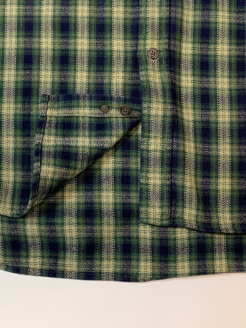 🚩Detail 90년도에서 2000년도 사이에 생산된 것으로 추정되는 올드 갭의 플란넬 버튼다운 셔츠입니다. 기존에 갭에서 선보이던 캐주얼한 버튼다운 셔츠에서 헌팅웨어용 셔츠의 디테일이 더해진 제품으로 전면에는 원활한 수납을 위해 플리츠가 붙은 포켓이, 후면에는 움직이기 편하게끔 뒷면 요크 아래에 플리츠가 붙어있습니다.