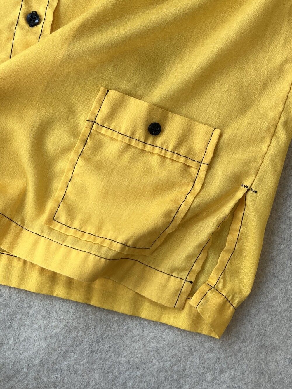 - 몸판 절개, 밑단 포켓, 옆트임 등의 디테일