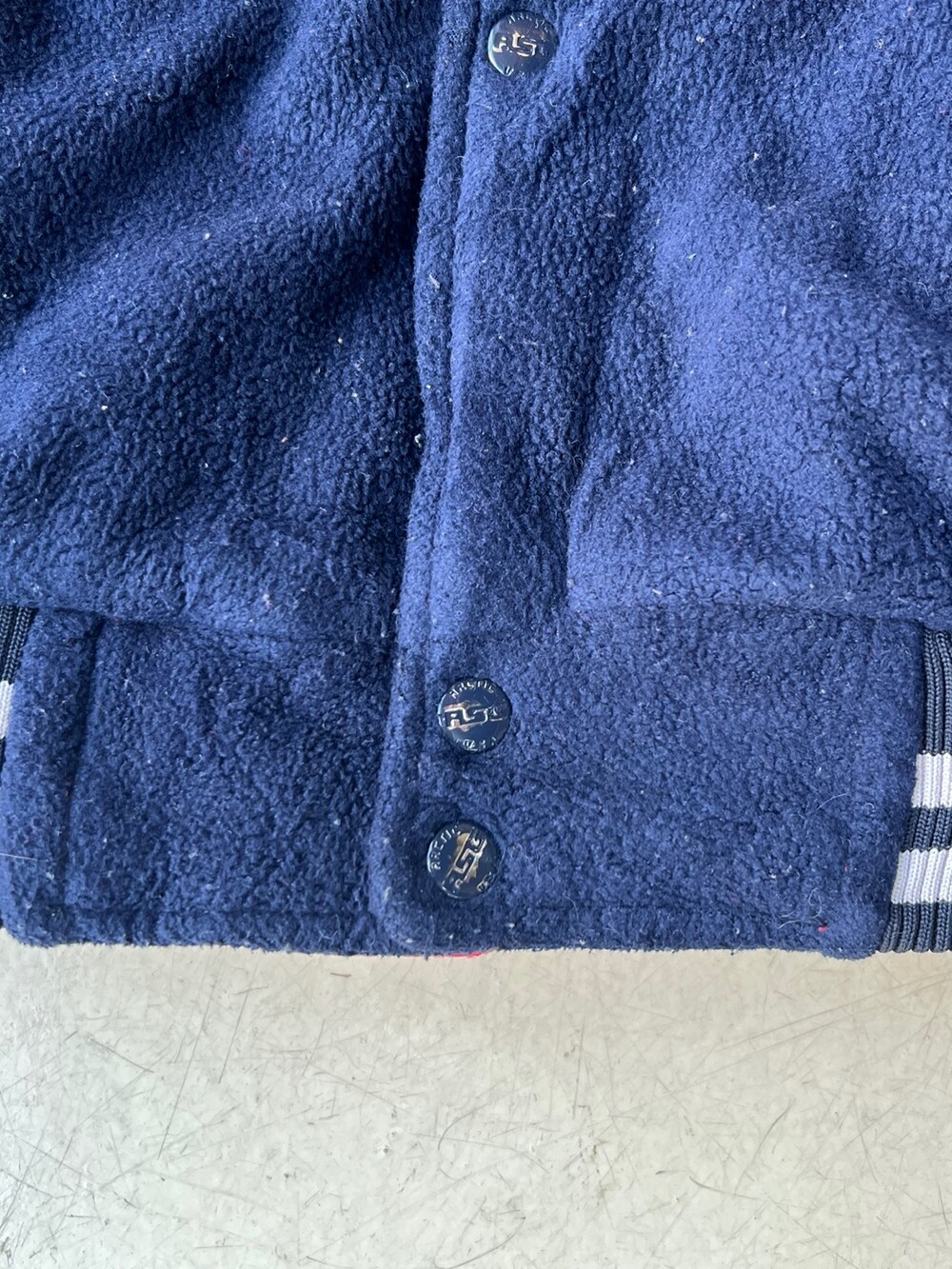 한 쪽은 플리스 원단, 다른 한 쪽은 두꺼운 PU코팅 나일론 원단을 사용한 리버시블 스타디움 자켓입니다. 1990년대 중후반 혹은 그 이후의 넉넉하고 벌키한 실루엣의 제품입니다.
