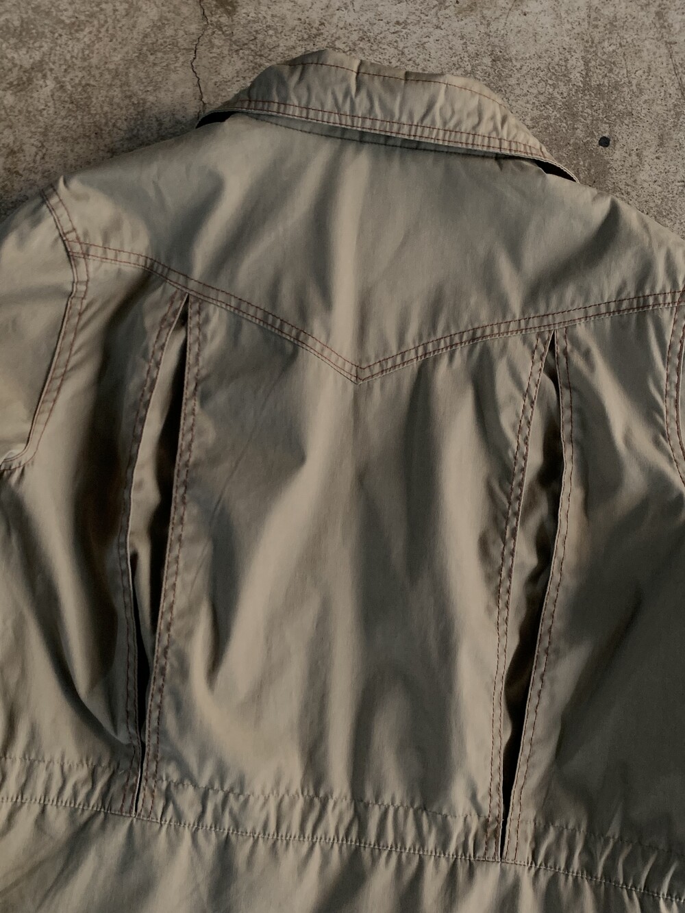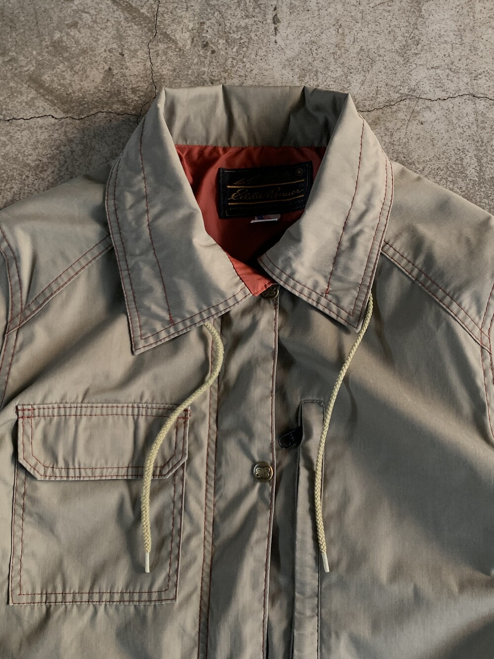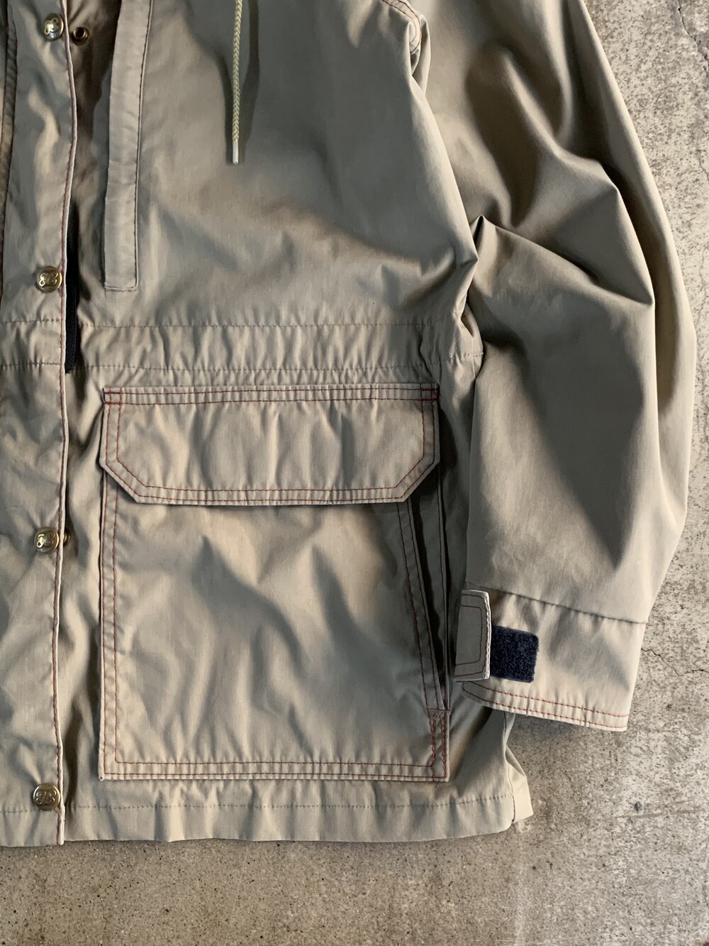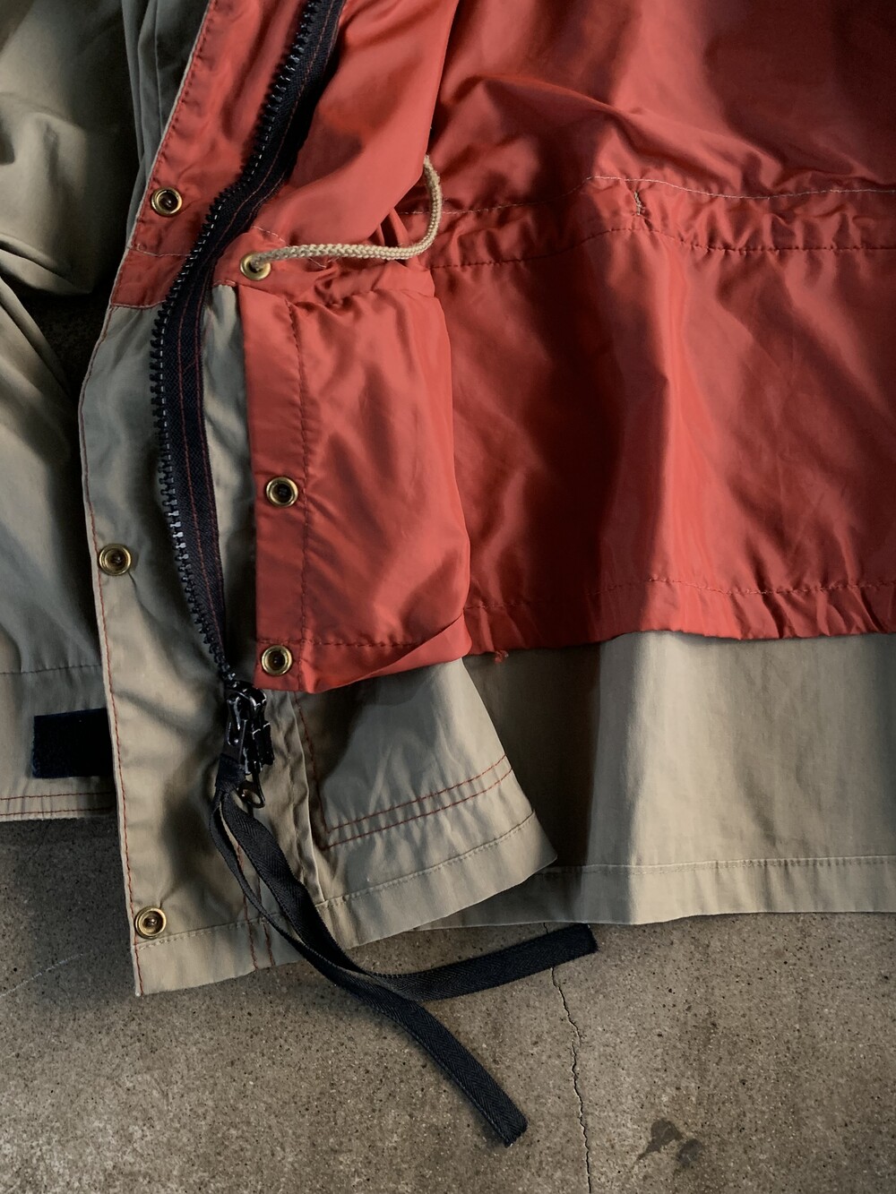 🚩Detail 마운틴 파카 혹은 스키 파카 정도로 소개할 수 있을만한, 미국발 아웃도어 브랜드에서 앞다투어 선보이던 방풍용 폴리/코튼 혼방 원단에 STORM SHED 라는 이름을 붙여 소개하는 에디바우어의 미들 기장 자켓입니다. 스티치 배색이나 뒷면 요크와 플리츠 디테일을 고려했을 때 캐주얼하고 활동적인 성격이 지배적입니다. 전반적으로 마운틴파카에 비해 가벼우면서도 짧은 기장감으로, 마운틴 파카 착용하듯이 입거나 몸에 딱 맞게 입을 땐 코트나 스포츠자켓 이너로 활용해도 좋을만한 제품입니다. 스냅으로 체결 가능한 후드가 유실되었으며 전반적으로 사용감이 있으나 눈에 띄는 큼지막한 얼룩이나 데미지는 없는 제품으로 여성분들 혹은 95-100호 사이로 착용하는 분들에게 권장드립니다.