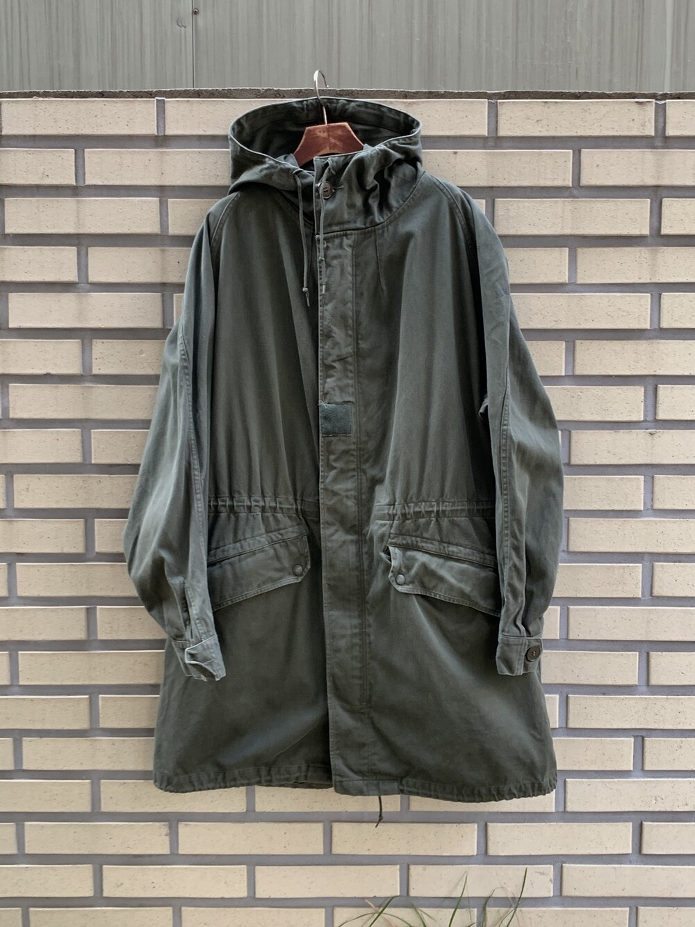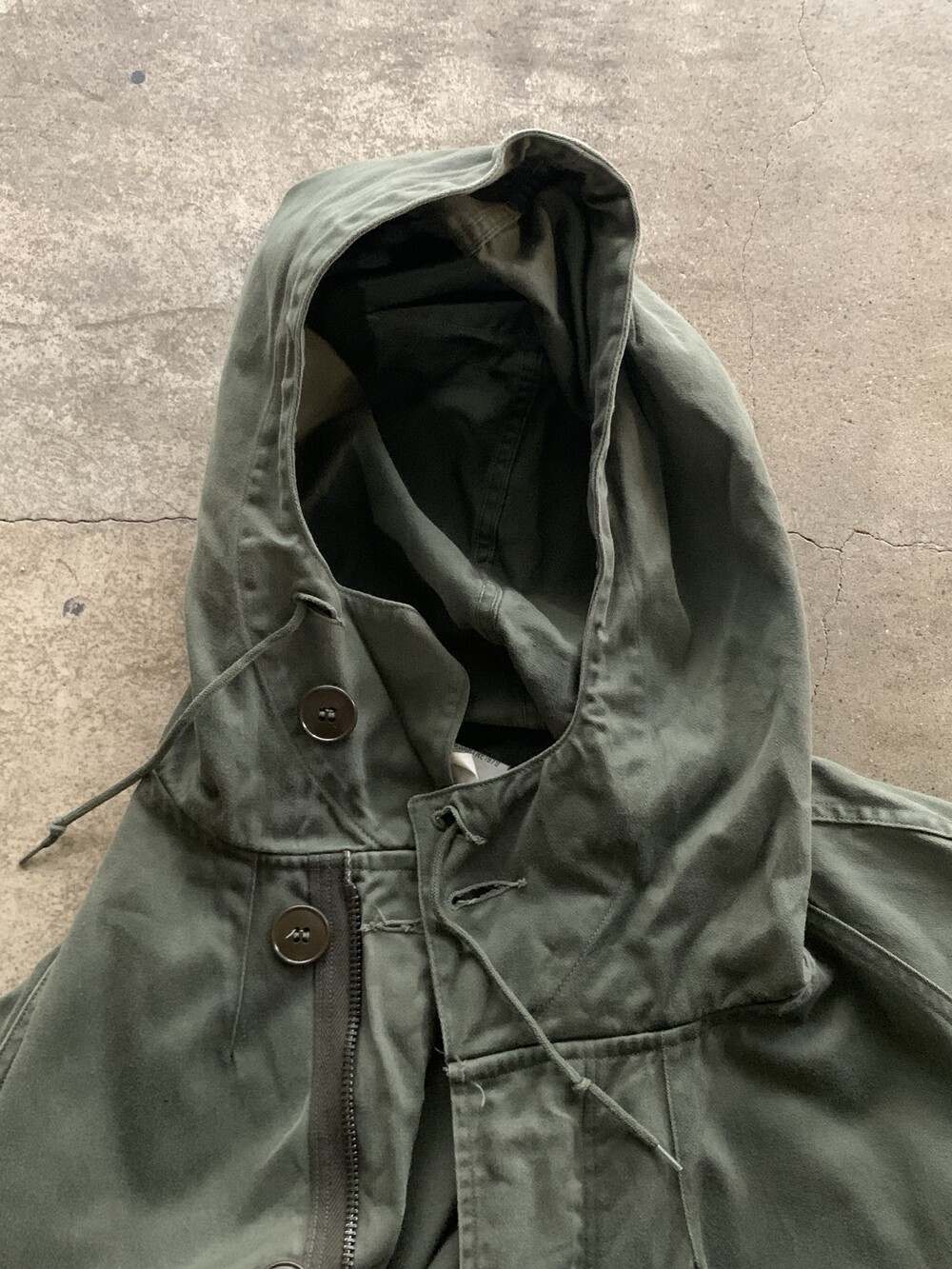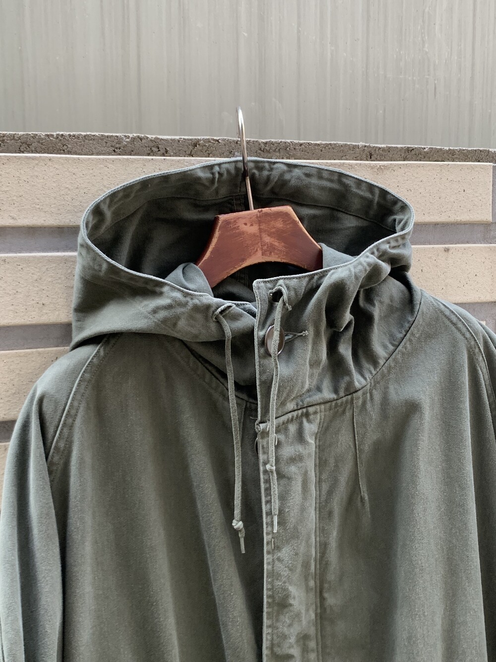 🚩Detail 코튼 사틴 원단과 후드 일체형의 미니멀한 디자인이 돋보이는, 1960년대 개발되어 1980년대까지 선보였던 프랑스군 M-1964 필드 파카. 군복에서 주로 보이는 견장, 뒷면 플리츠, 원활한 수납을 위한 추가 포켓 등이 보이지 않아 군복 치고도 미니멀한 구성이 매력적인 제품입니다.