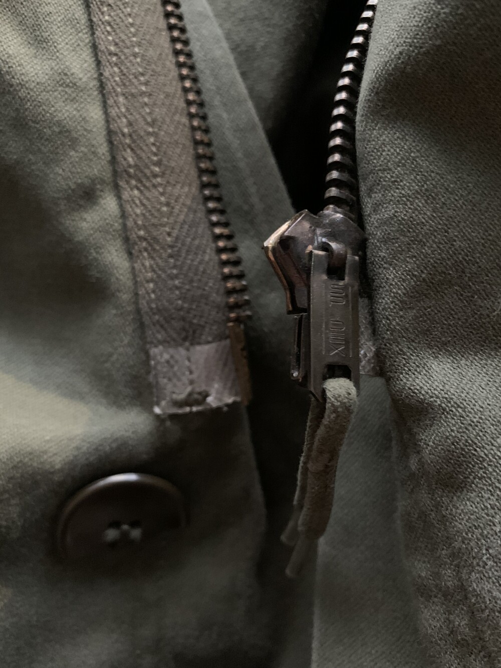 🚩Condition 소매 버튼 유실, 전면 가장 아래 버튼 깨짐 등의 사용감은 있으나 전반적으로는 큰 얼룩이나 데미지는 없는 제품. 지퍼 체결이 살짝 불안하나 체결 시 잘 맞물린다면 작동에는 문제 없는 상태입니다.