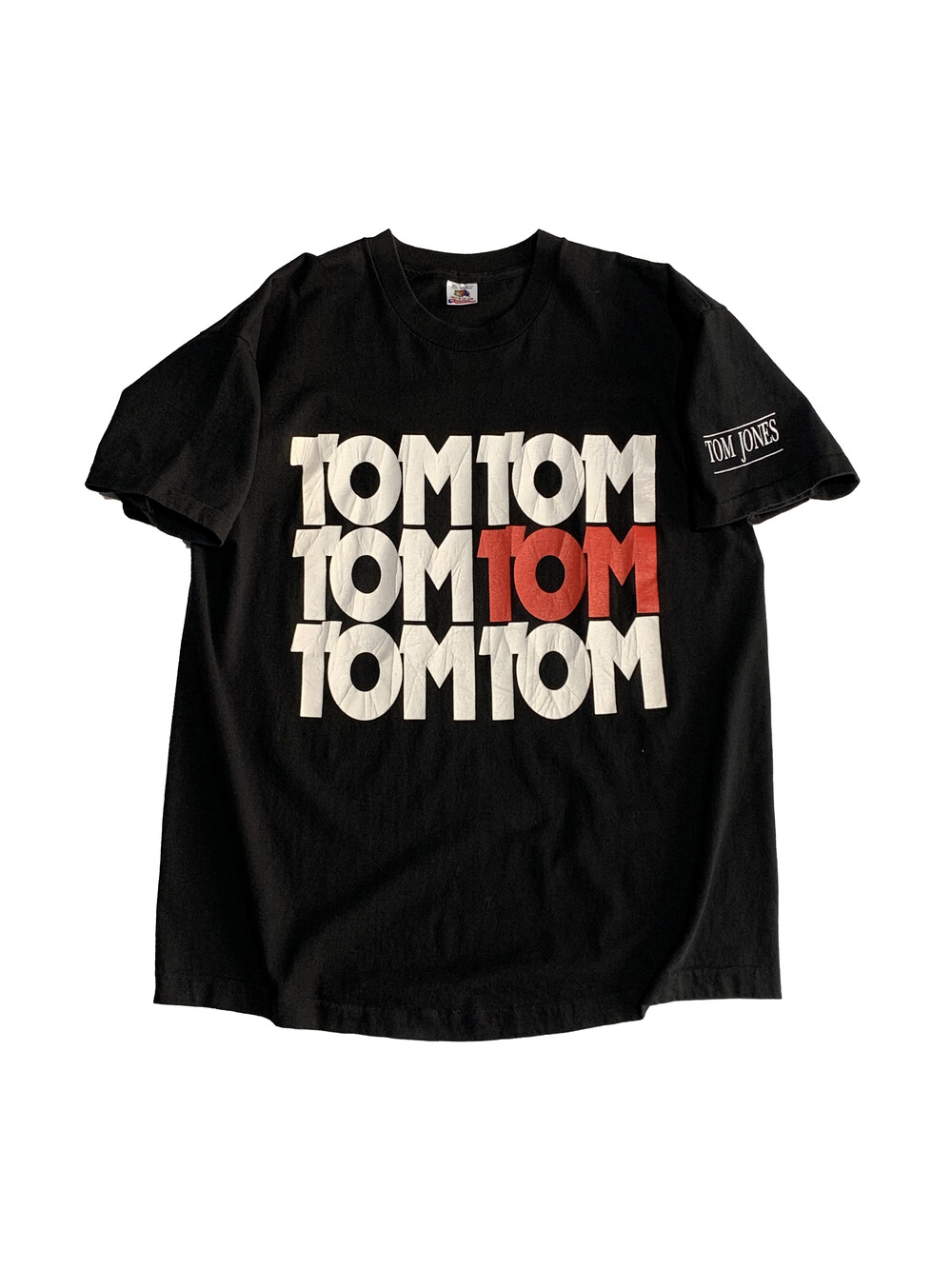 🚩Detail It’s not Unusual이나 Sexbomb 같은 곡으로 알게 모르게 미디어애서 한 번 쯤은 접해봤을 웨일즈 출신 싱어송라이터 톰 존스(Tom Jones)가 1992년 10월과 11월 두 달 간 진행했던 UK 투어 프로모션 프린팅이 올려진 티셔츠입니다. 한 번 쯤 널리 알려진 곡들을 들어보는 것도 좋겠고, 수록곡이나 뮤지션을 모른다 할지라도 콘서트 프로그램에 수록된 이미지 그대로 TOM이 C반복적으로 배열된 프린팅 만으로도 충분히 캐주얼하게 즐길 수 있을만한 티셔츠입니다.