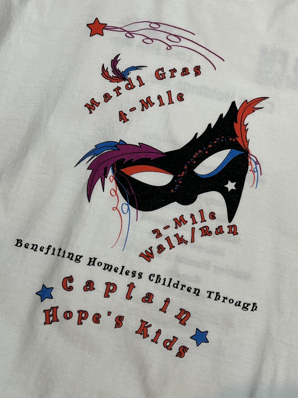 부활절 이전 약 40여일간의 금식 회개에 돌입하는 사순절을 보내기 직전에 가면을 쓰고 이국적인 음식, 그리고 재즈 음악과 함께하는 축제 마디 그라(Mardi Gras)를 맞아 4마일과 2마일 코스로 구성된 단거리 런 행사 프로모션 티셔츠.