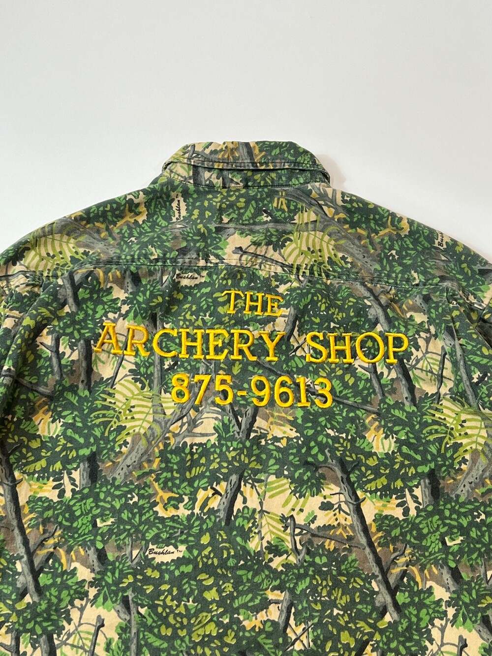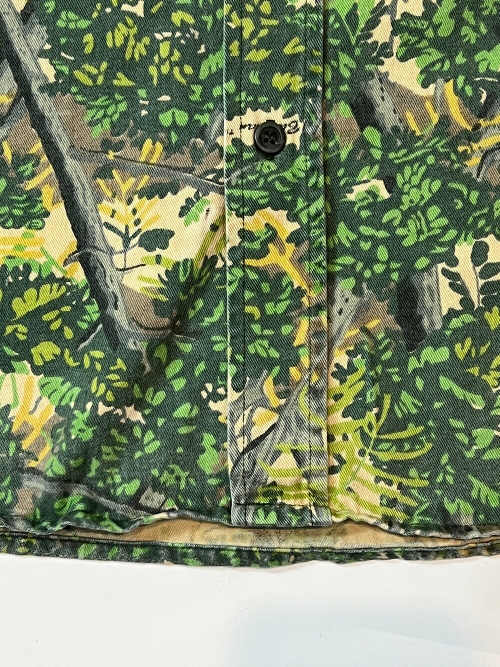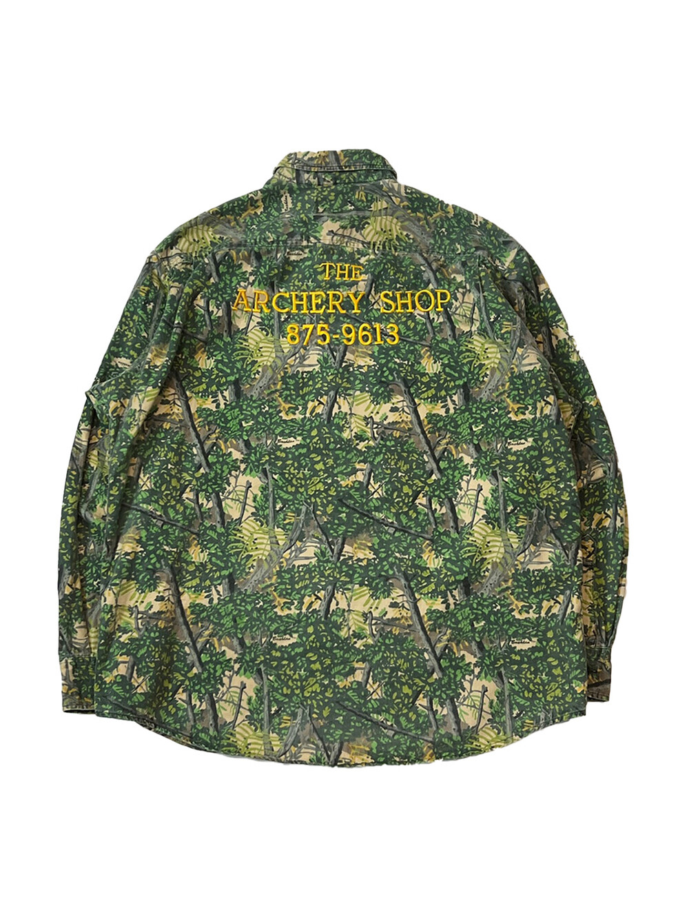 🚩Detail 보다 효율적인 위장패턴을 개발하고자 전문 야생동물학자와 함께 선보인 이른바 The Texas Original Camoflague 라는 이름이 붙은 채도 높은 녹색이 지배적인 고유의 카모플라주 패턴을 선보인 부슬란(BUSHLAN) 브랜드의 90년대 리얼트리 패턴 프린티드 셔츠입니다. 적당한 두께감의 트윌 코튼 원단에 넉넉한 사이즈, 그리고 후면에는 아처리 샵 스태프가 입었을 것으로 추정되는 내용의 자수가 올려져 캐주얼하게 착용하기 좋을만한 제품입니다.