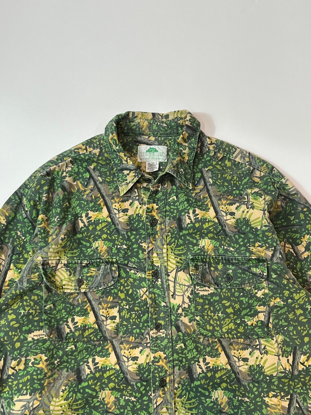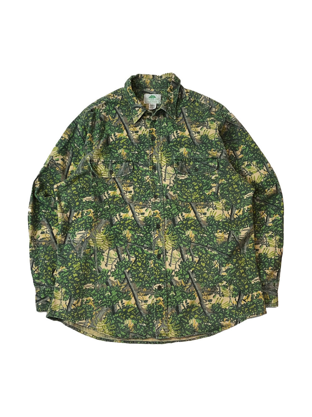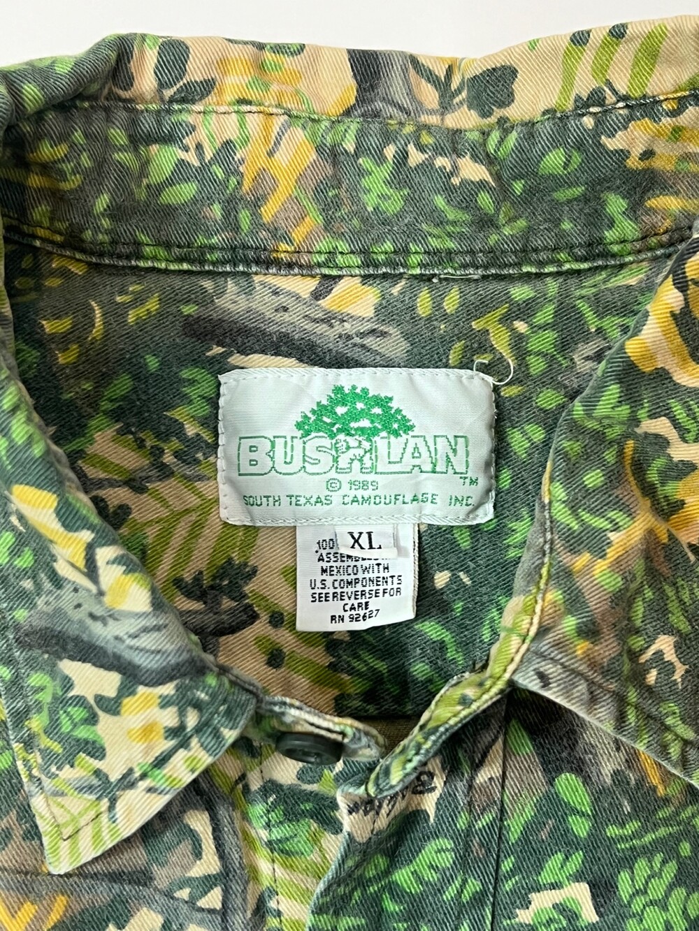 🚩Detail 보다 효율적인 위장패턴을 개발하고자 전문 야생동물학자와 함께 선보인 이른바 The Texas Original Camoflague 라는 이름이 붙은 채도 높은 녹색이 지배적인 고유의 카모플라주 패턴을 선보인 부슬란(BUSHLAN) 브랜드의 90년대 리얼트리 패턴 프린티드 셔츠입니다. 적당한 두께감의 트윌 코튼 원단에 넉넉한 사이즈, 그리고 후면에는 아처리 샵 스태프가 입었을 것으로 추정되는 내용의 자수가 올려져 캐주얼하게 착용하기 좋을만한 제품입니다.