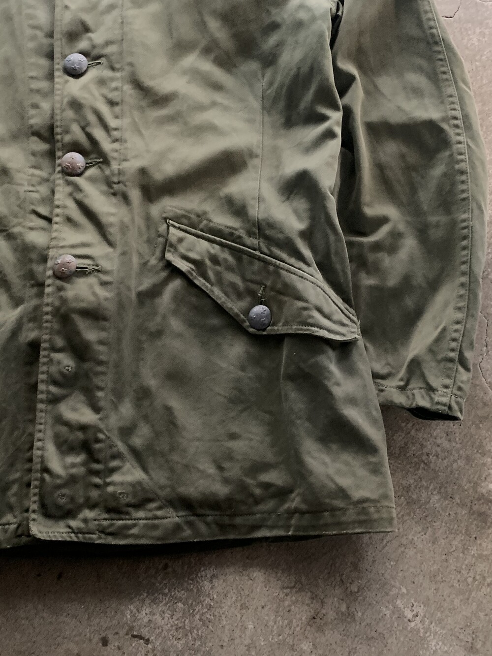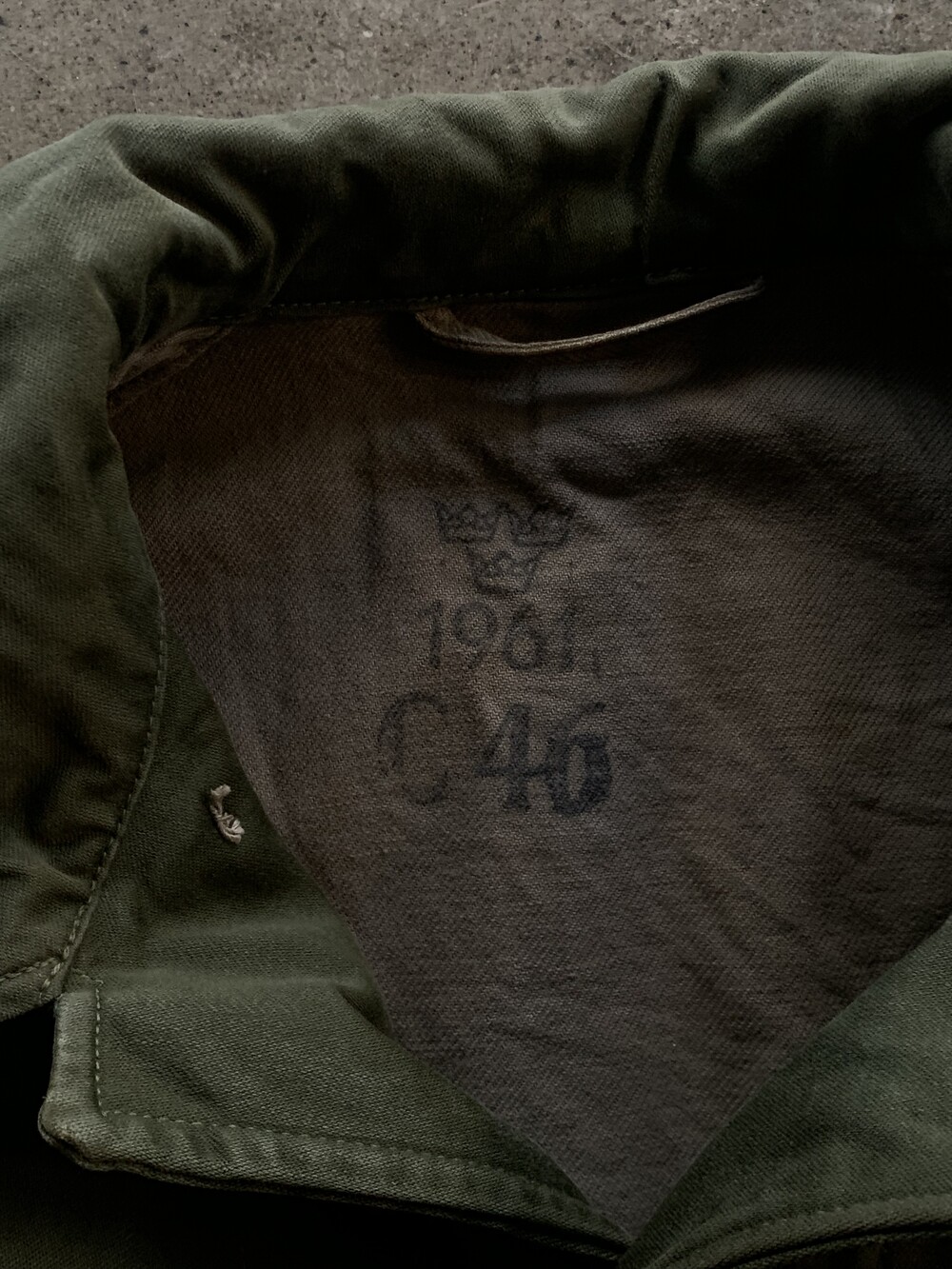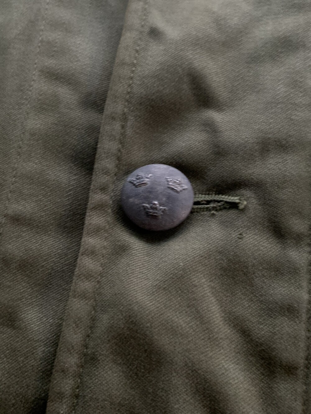 스웨덴 군에게 지급된 필드자켓. 루프 칼라, 스웨덴 군을 상징하는 왕관 문장이 각인으로 새겨진 단추, 뒷면에 배치된 포켓 등 슬림한 실루엣과 다소 점잖은 분위기에 걸맞는 디테일이 배치된 제품입니다. 암홀이나 소매 폭이 여유롭지는 않아 두께가 얇은 이너와 매치하기를 권장드립니다.
