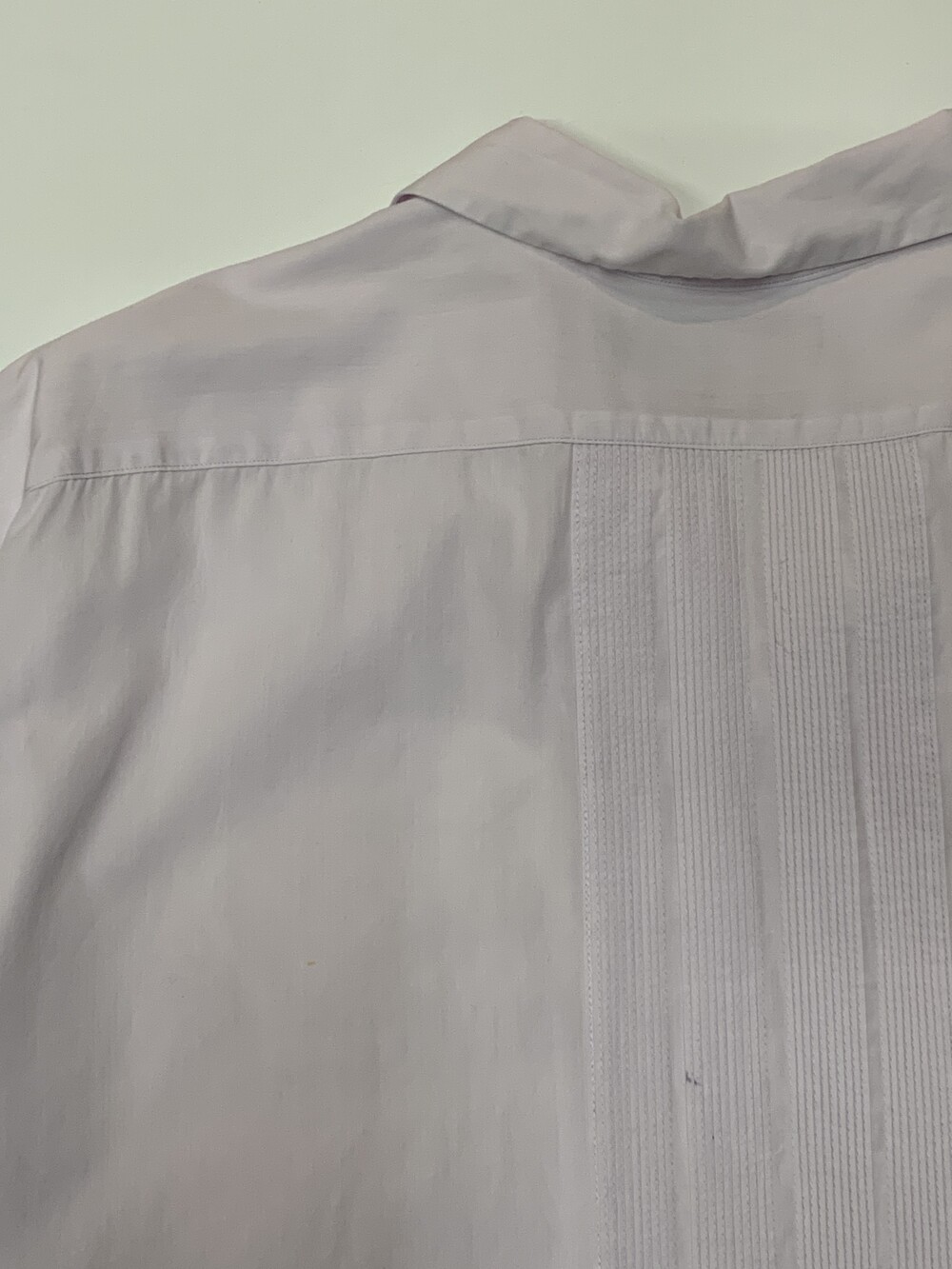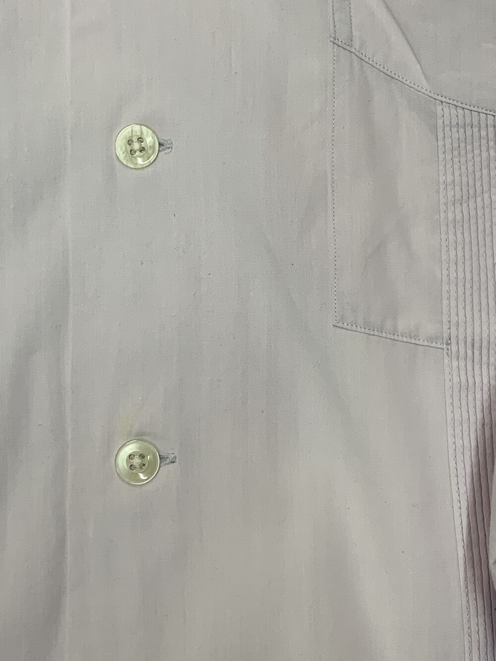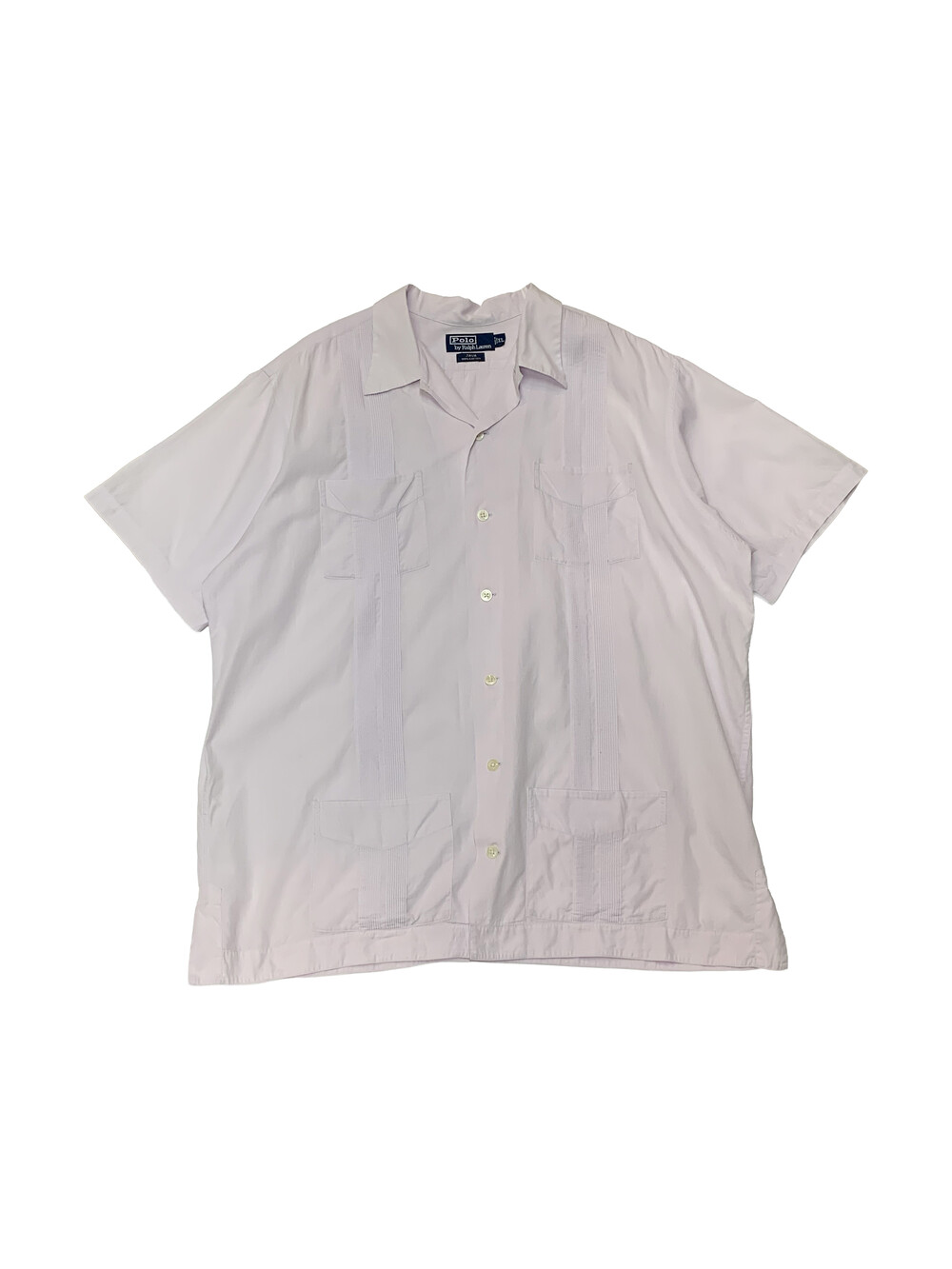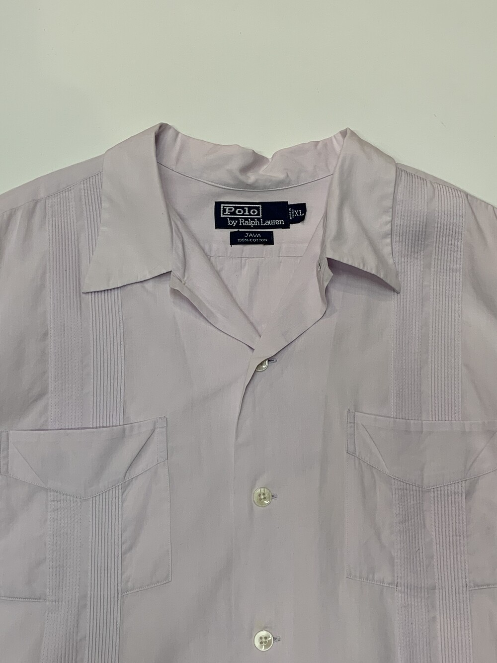 🚩Detail 전면 네 개의 포켓, 측면 하단부 트임, 그리고 전면과 후면을 가로지르는 주름 디테일에서 구아야베라(Guayabera) 셔츠를 연상케하는 폴로 랄프로렌의 자바(JAVA) 반팔셔츠입니다. 루프 칼라는 아니지만 맨 윗 단추를 풀었을 때 자연스레 오픈칼라 형태로 연출이 가능하며, 요철감이 거의 느껴지지 않는 얇고 가벼운 코튼 포플린 원단에 표기 대비 여유로운 사이즈로 캐주얼하게 활용하기 좋을만한 제품입니다.