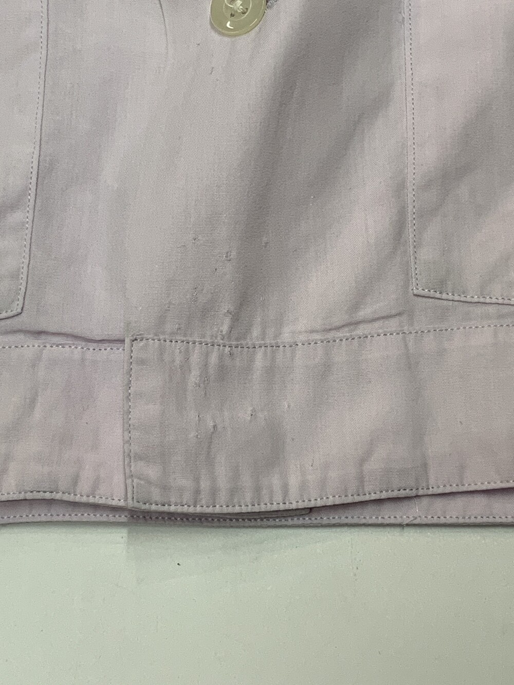 🚩Condition 전면부 버튼홀 부근 옅은 얼룩, 전면 하단부 무분별한 택 작업으로 인한 데미지, 후면부 주름장식 펜얼룩과 그 주변 스팟성 얼룩 등 사용감 있는 제품.