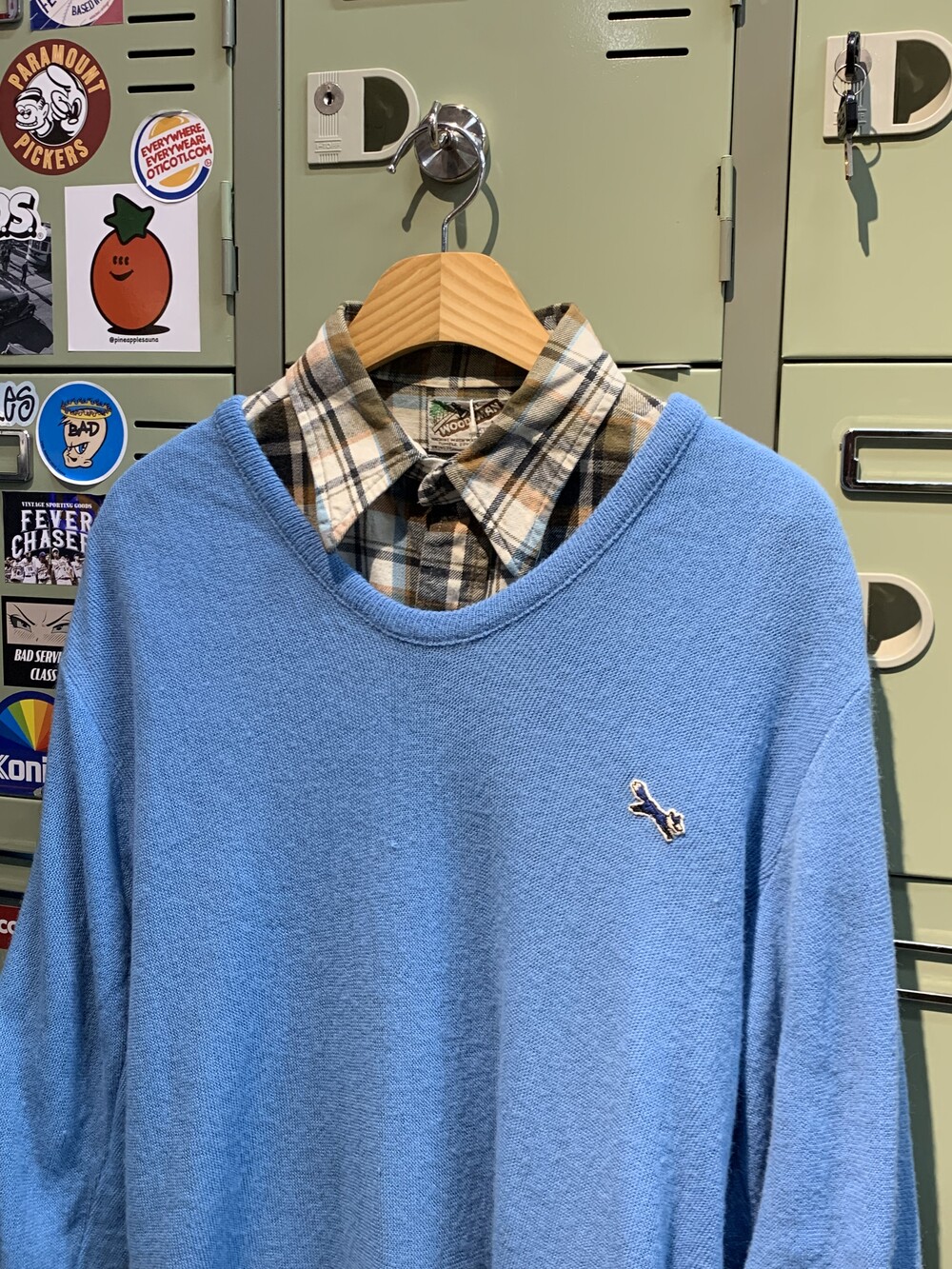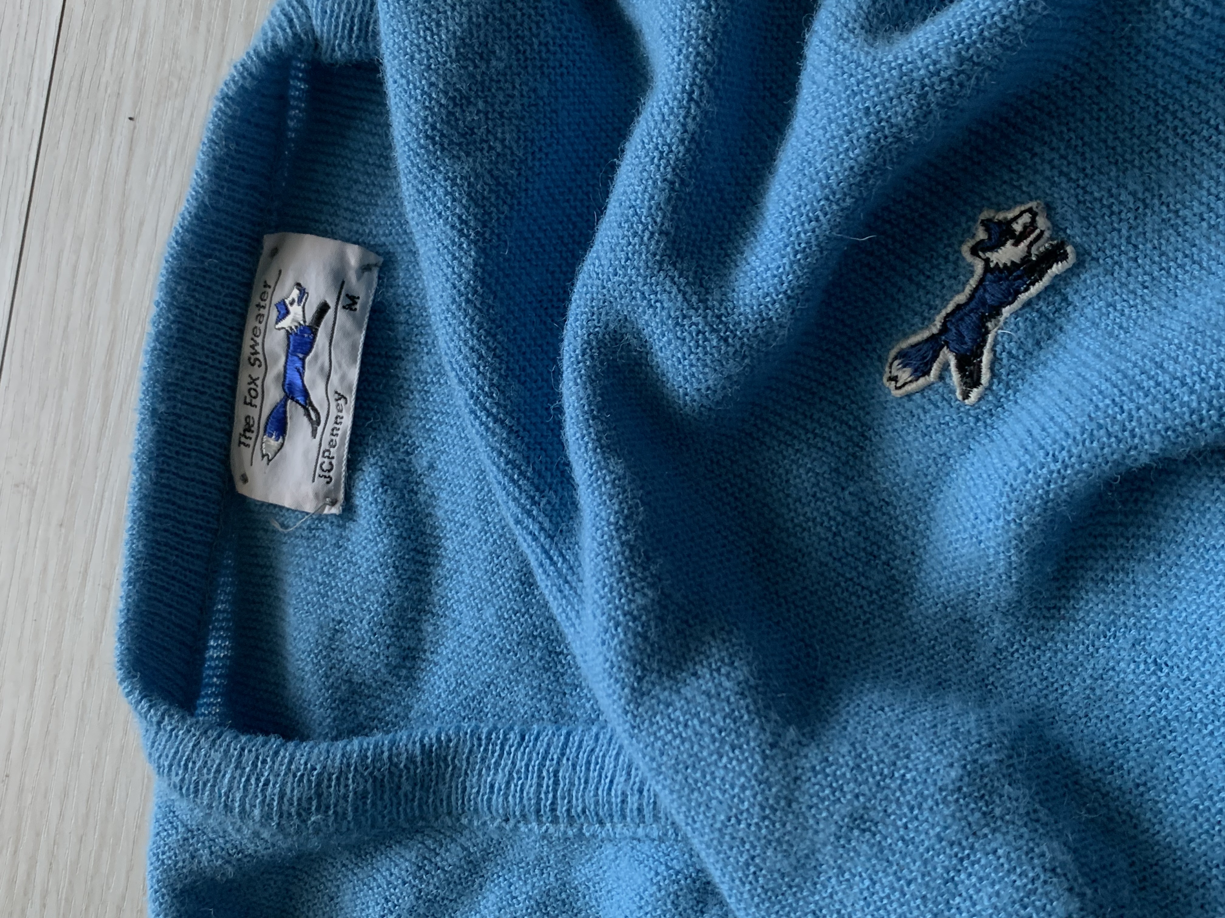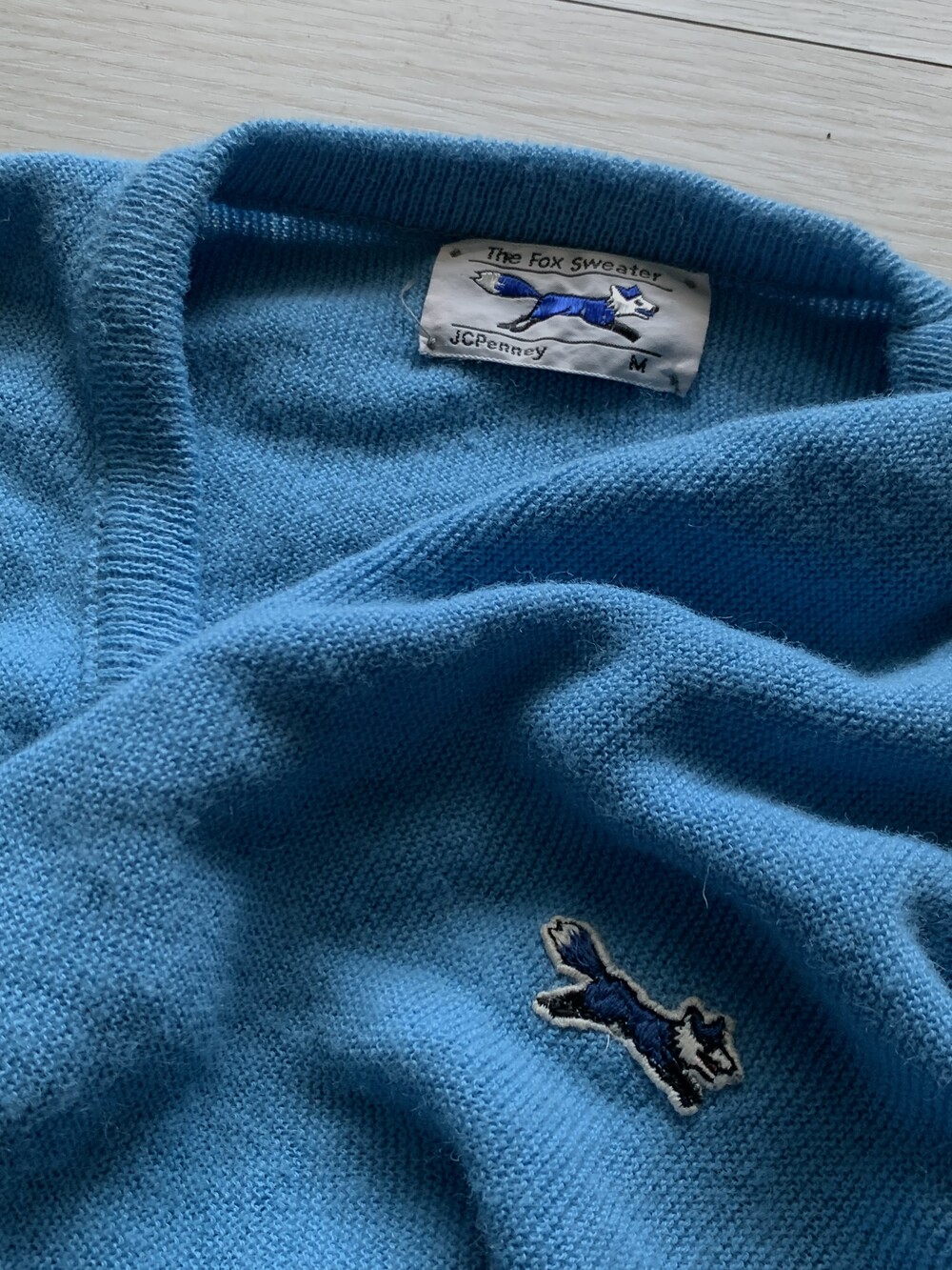 🚩Detail 미국발 스토어 브랜드 JCPenney 에서 선보인 The Fox Sweater 라인의 아크릴 니트 풀오버. 1970년대부터 니트나 카디건 등 가볍게 착용할 수 있는 골프웨어 스웨터 바디 위에 새로운 소재에 거부감 없이 착용할 수 있도록 키치한 동물 캐릭터 패치나 자수를 놓아 소개하던 시기에아크릴 니트 특유의 가벼운 착용감과 V넥도 U넥도 아닌 어정쩡한듯한 넥라인이 돋보이는 제품입니다.