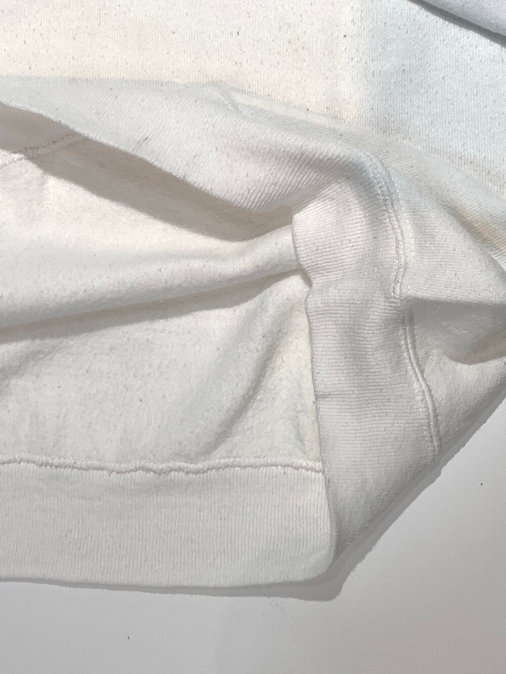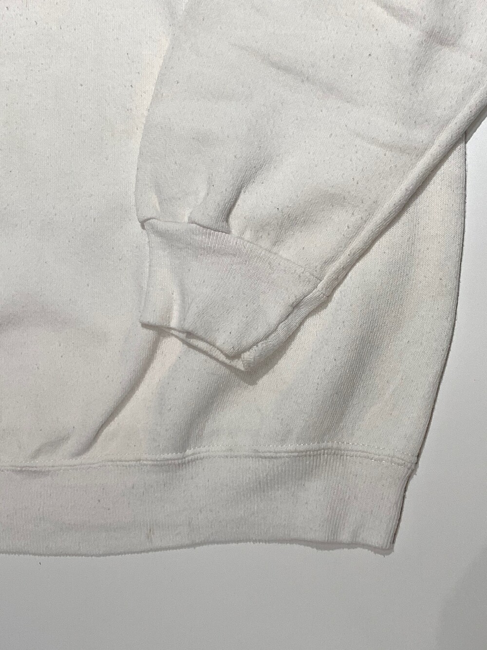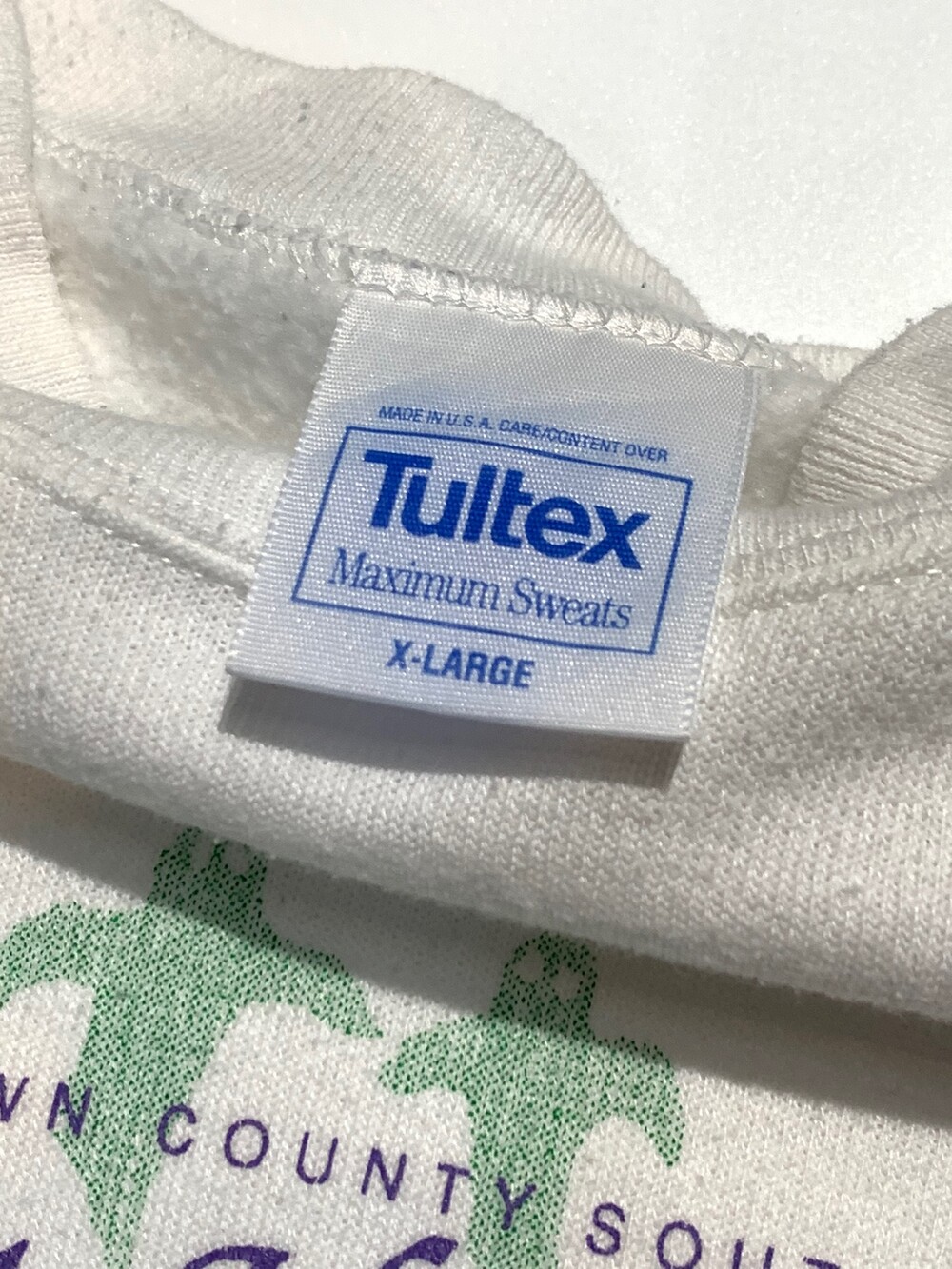 몸판 옆 부분에 봉제선이 없는 튜블러 타입의 툴텍스 스웻셔츠. 이너 플리스가 닳아 코튼/폴리 혼방 특유의 포근함은 거의 남아있지 않지만 넓은 암홀과 여유로운 립 너비로 오버사이징에 어울릴만한 바디입니다. 원단 사우스 캐롤라이나 주 조지타운 카운티에서 열린 고스트 헌트 행사 프로모션 프린팅이 올려져 있습니다.