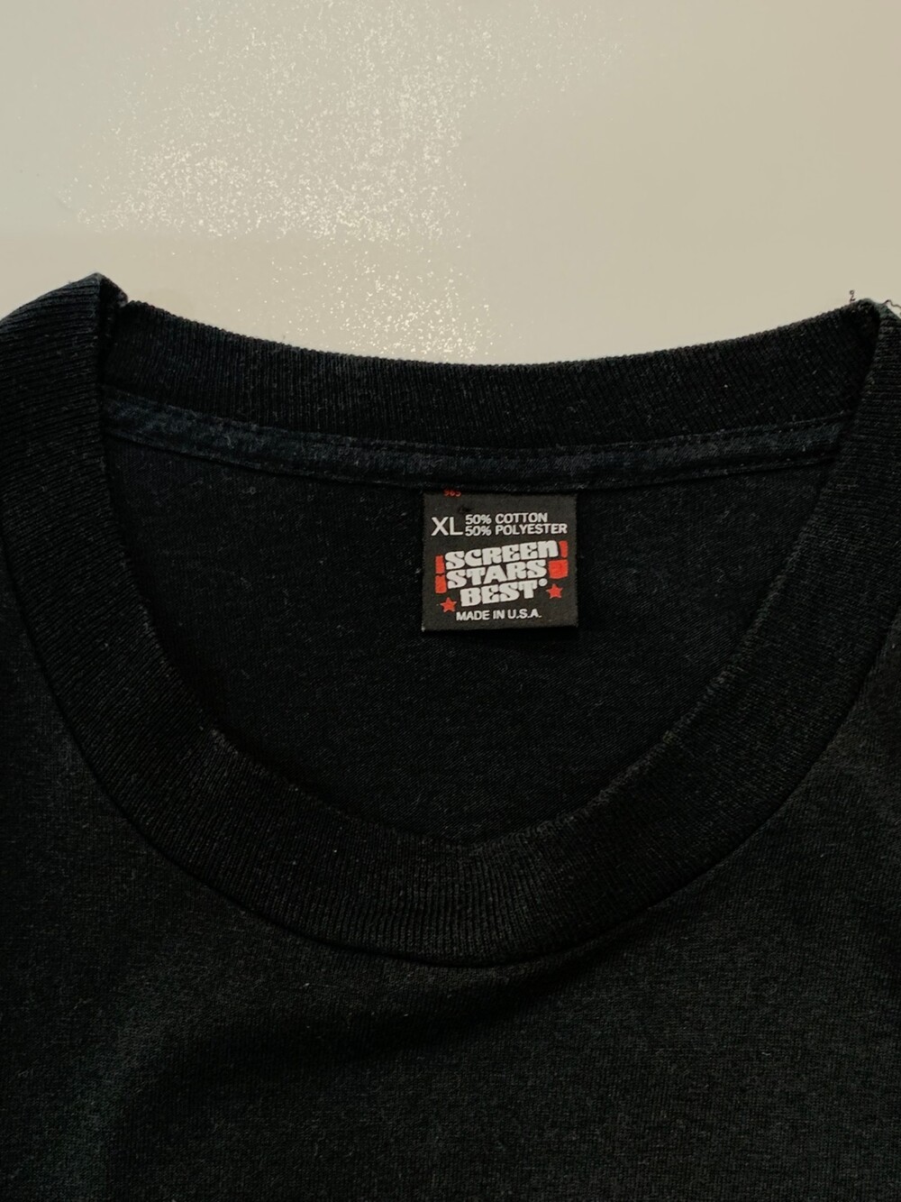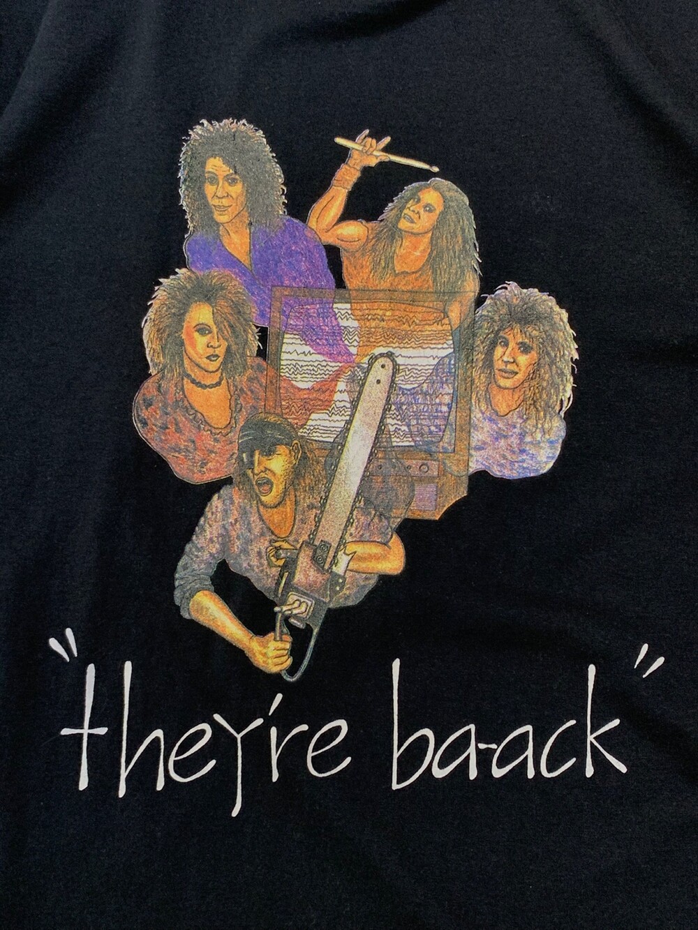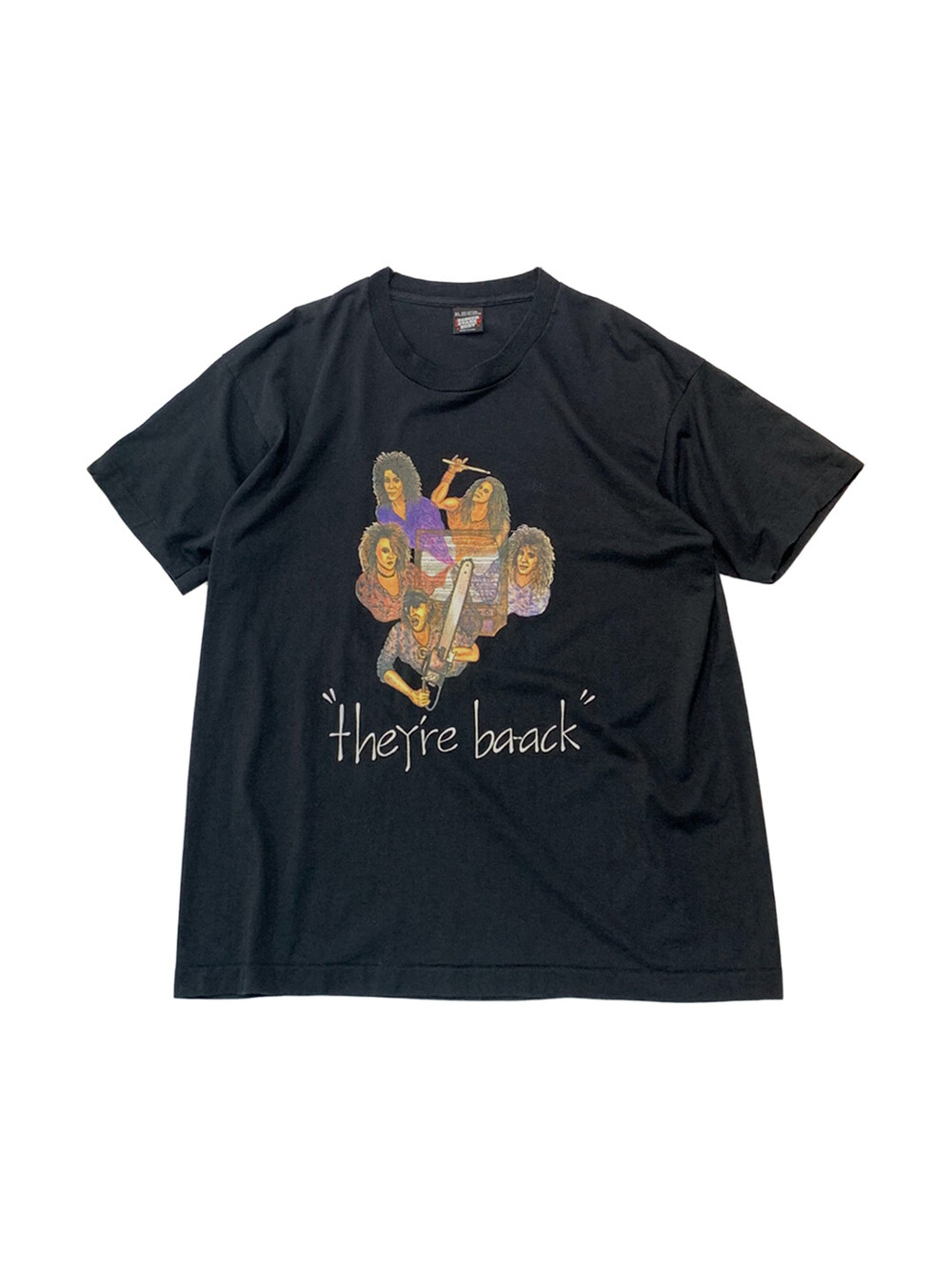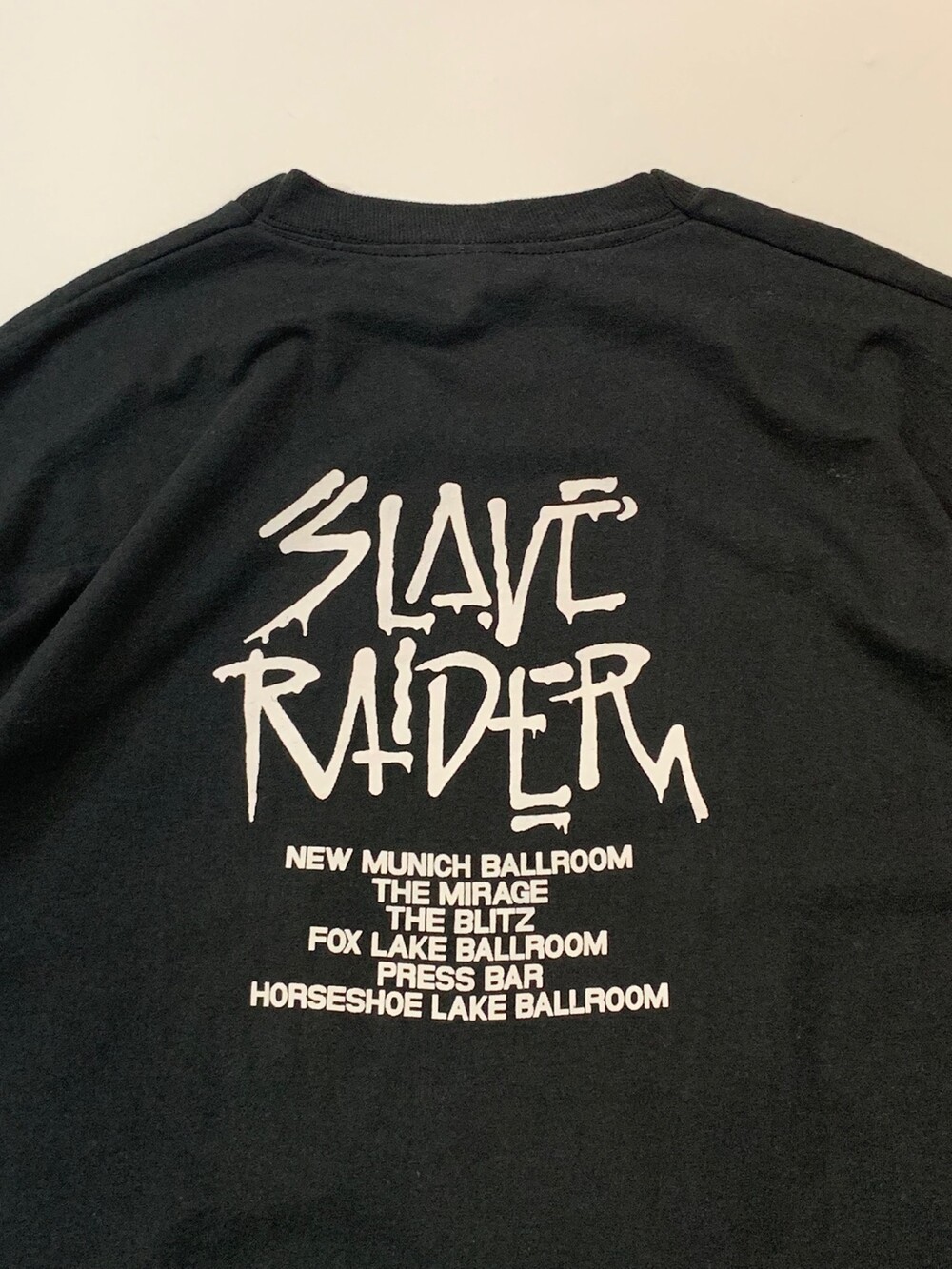 🚩Detail 1985년에 결성되어 활동했던 미국 메탈 밴드 그룹 슬레이어 레이더(SLAYER RAIDER) 프린팅이 전후면에 올려진 티셔츠. 글램록 장르의 음악과 컨셉추얼한 퍼포먼스로 인기를 끌었으나 시대적인 흐름과 레이블 계약 문제로 인해 6년만에 해체하여 글램록 씬에서 영향력을 행사할만한 기회가 충분치는 않았던 비운의 밴드이기도 합니다. 컨셉에 충실한듯한 멤버들의 모습이 전면에, 컴백을 맞아 BALLROOM 위주의 컴백 스테이지 리스트가 후면에 프린팅된 제품입니다.