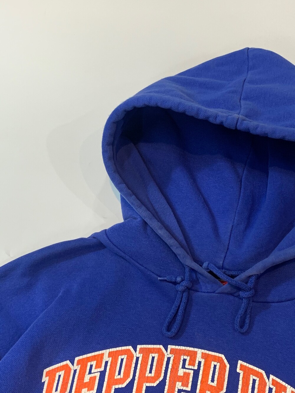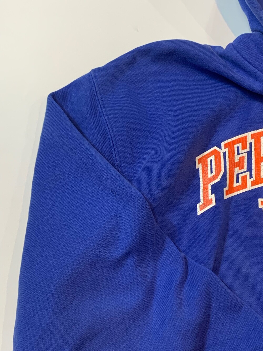 2000년대 초반 나이키 팀 라벨을 달고 출시된 스웻후디. 코튼 함량이 살짝 높아 단단한 질감이나 혼방 원단 특유의 가벼움 역시 동시에 갖춘 제품으로, 전면에는 페퍼다인 대학교 바시티 팀 페퍼다인 웨이브 스펠아웃 프린팅이 전면에 올려져 있습니다.