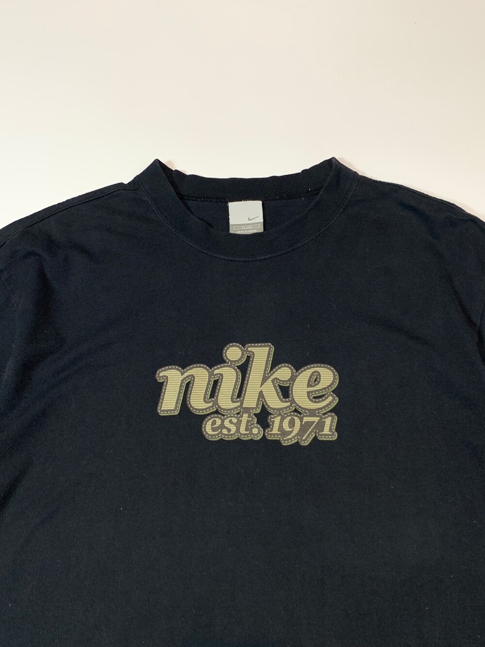 2002년 한국에서 생산된 나이키 티셔츠. 전면에는 나이키 스펠아웃 로고가, 후면에는 작게 나이키 로고 프린트가 올려진 제품으로 심플하게 착용하기 좋을만한 제품입니다.