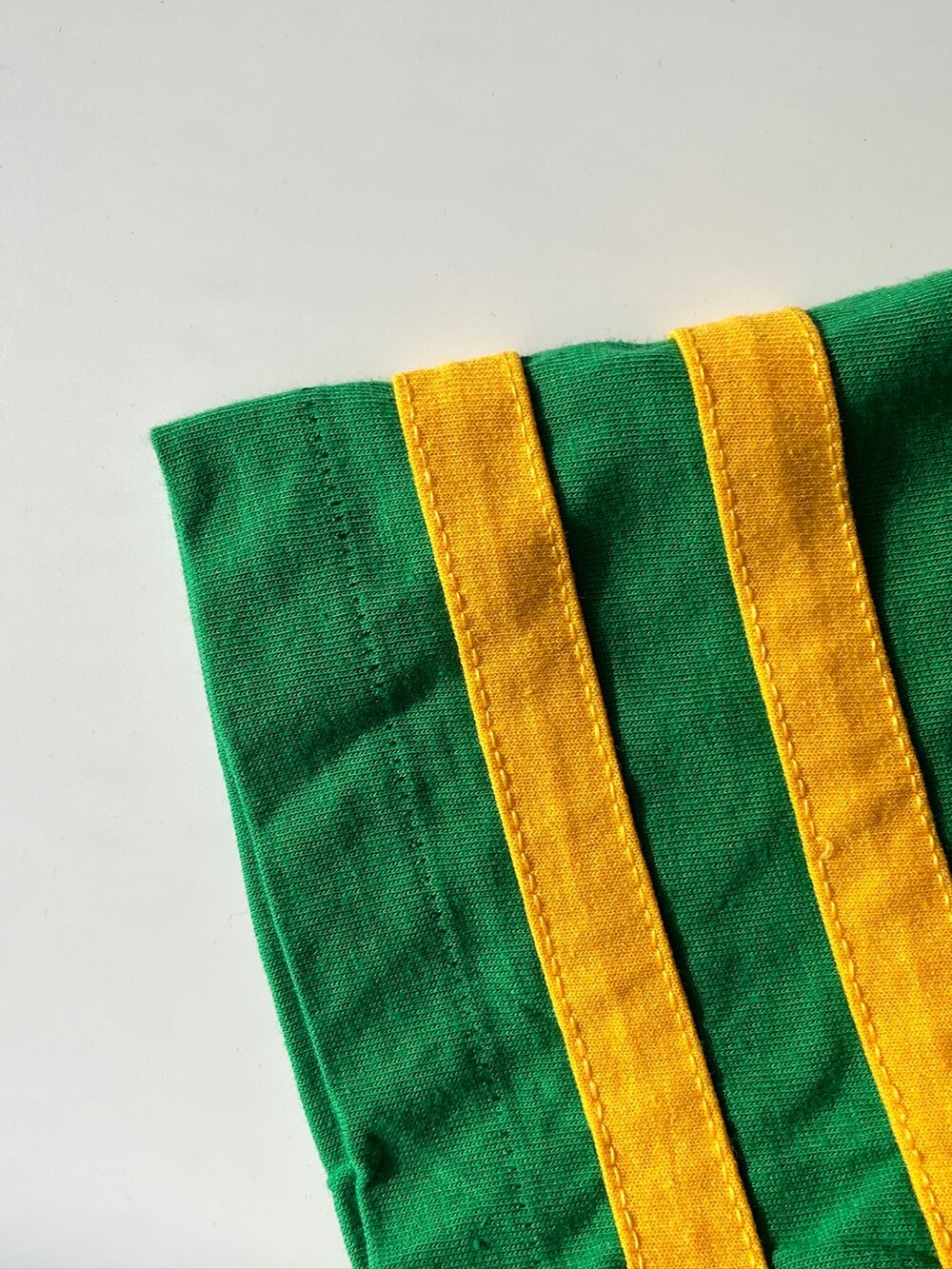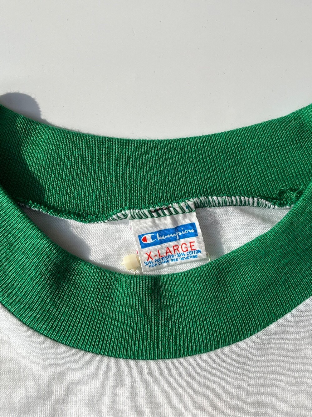 넥라인 립이 두툼한 독특한 디자인의 챔피온의 래글런 티셔츠입니다. 가벼운 질감의 코튼/폴리 혼방 원단의 제품으로 소매 폭이 급격하게 줄어들 뿐더러 품이 넓지 않아 타이트한 실루엣으로 입기에 좋을만한 티셔츠입니다.