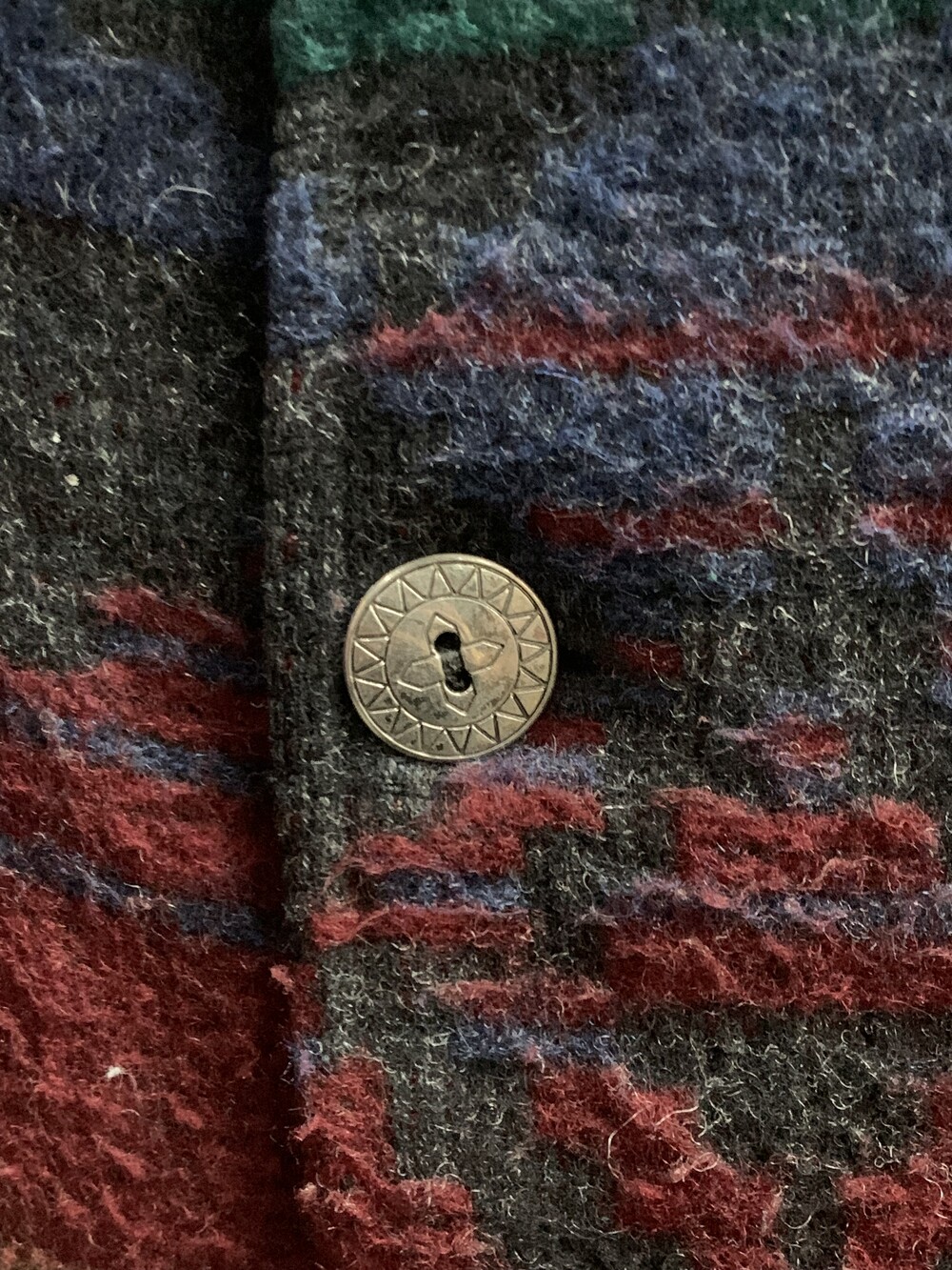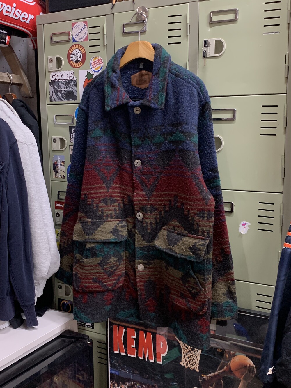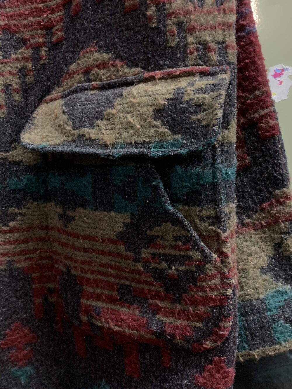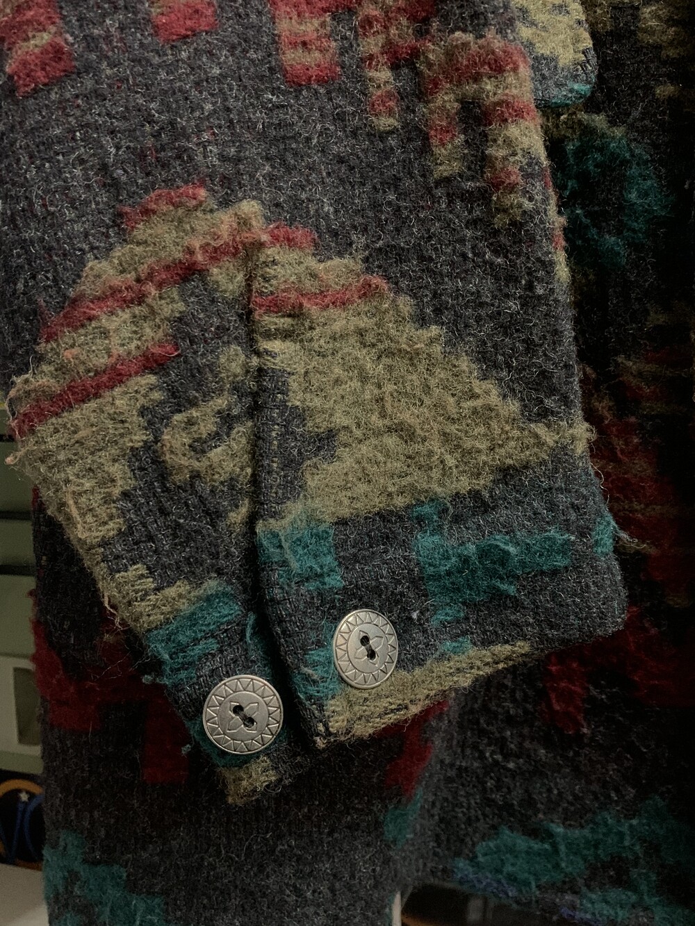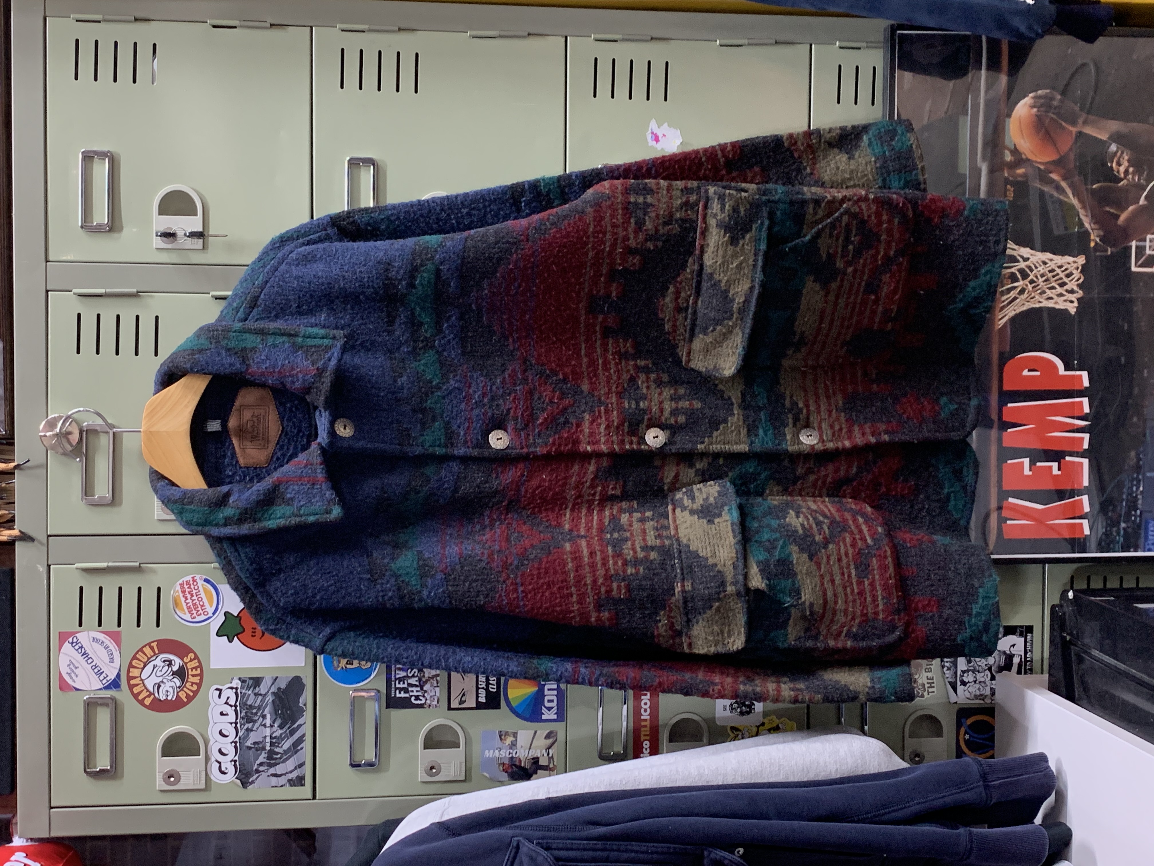 🚩Detail 미국발 아웃도어 브랜드가 한 번 씩은 다루는 사우스웨스턴 네이티브 패턴이 적용된 블랭킷 자켓입니다. 울/나일론 혼방으로 두껍지 않아 비교적 유연하게 착용할 수 있을만한 블랭킷 원단으로, 보온성 자체가 대단히 높지는 않으나 군용 파카류 혹은 보다 넉넉한 사이즈의 코트 안에 매치할 미들레이어로 활용해 부족한 보온성을 더하기에 좋을만한 제품입니다. 마지막 아우터로도 혹은 중간 아우터로 범용성있게 활용하고자 한다면 100-103호 사이로 착용하는 분들에게 권장드립니다.