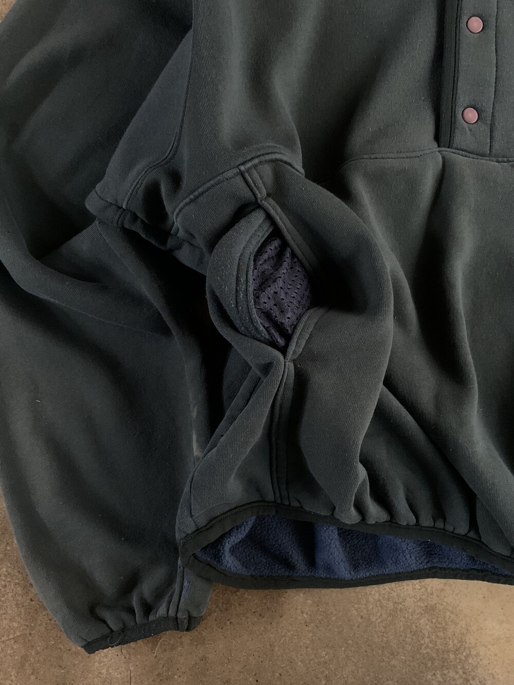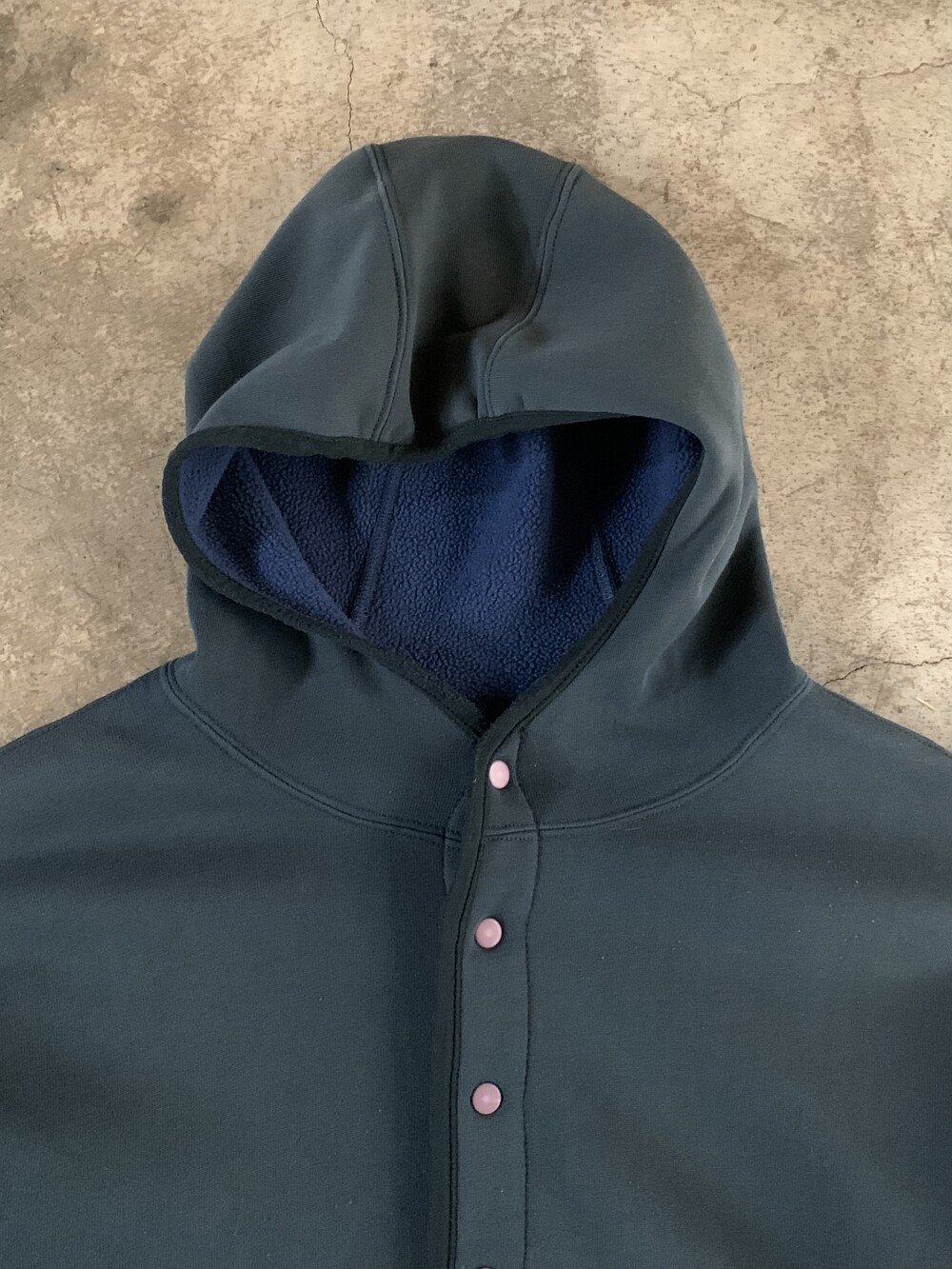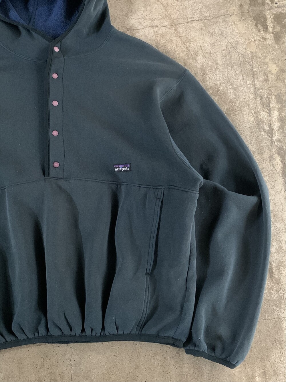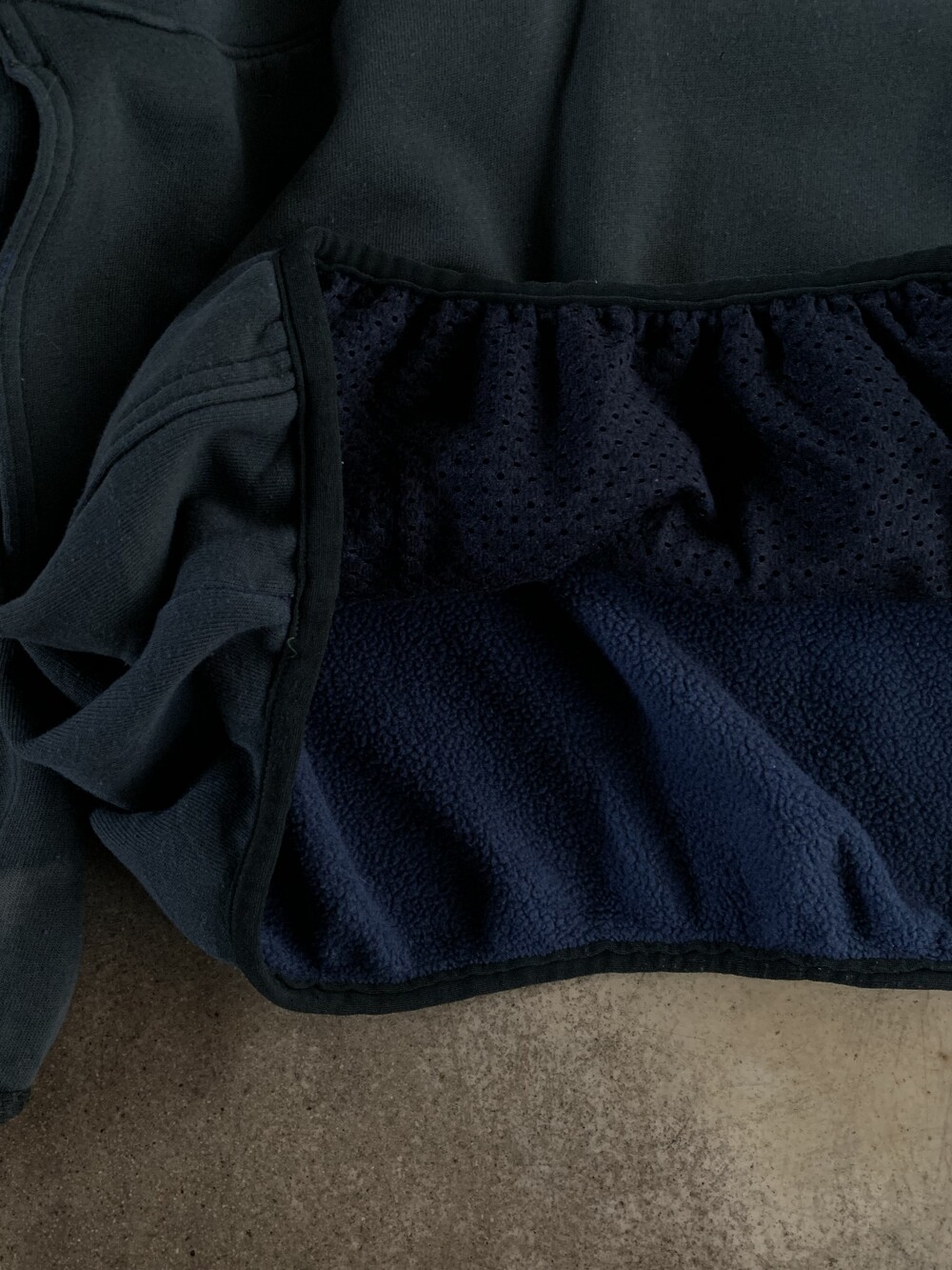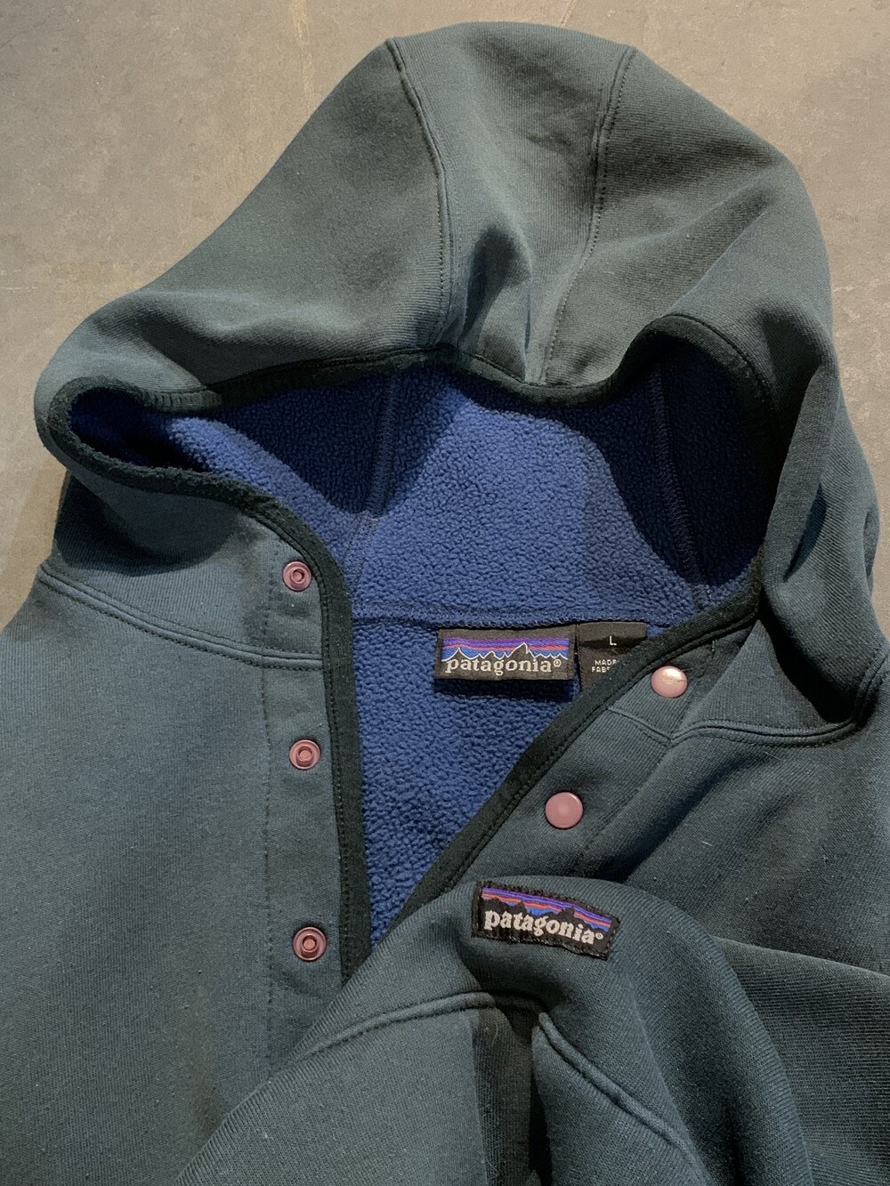 🚩Detail 폴리65% 코튼 35% 혼용률의 가벼운 질감의 원단이 겉면에, 안쪽에는 재생 폴리에스터로 만든 플리스 원단이 라이닝으로 깔린 풀오버 타입의 상의로 매트릭스(Matrix)라는 제품명이 붙은 제품군 중에서도 후드가 붙은 풀오버 후디입니다. 디깅을 통한 한정적인 정보이나 1990년대 초중반 단기간 생산된 모델로 추정되며, 가장 쉽게 찾을 수 있는 1995년 생산 모델은 스냅 체결 부분에 나일론 파이핑이 붙으며 전면에 직조 패치가 아닌 자수가 놓여있어 스노우리스 택이 붙은 해당 제품은 1993년 생산으로 추정됩니다.