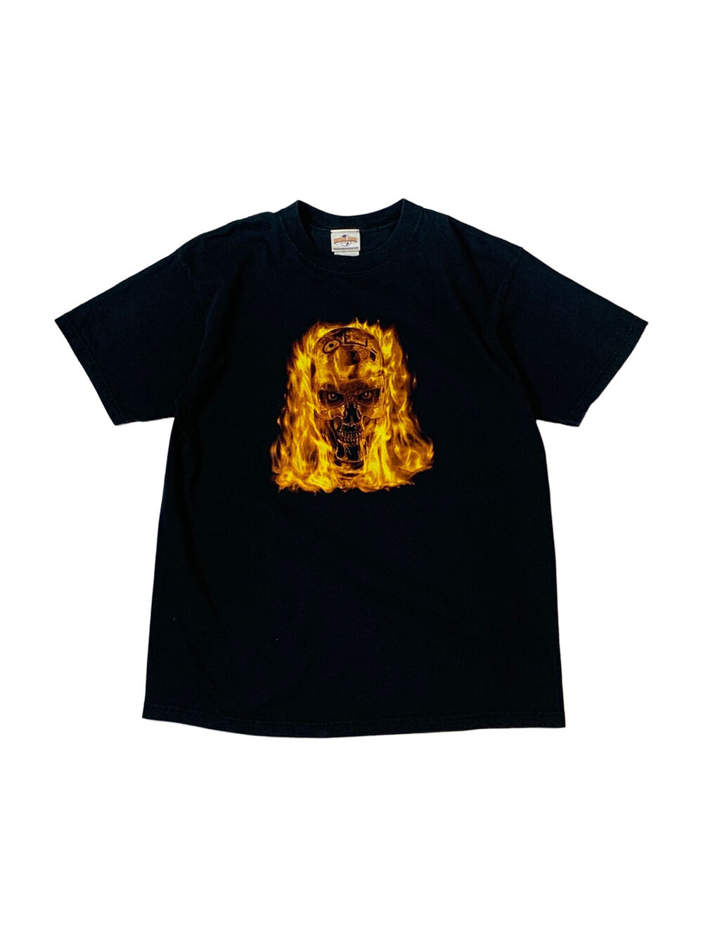 🚩Detail 1996년 유니버설 스튜디오 플로리다에서 처음 선보인 어트랙션 T2-3D: Battle Across Time. 2001년에는 오사카에 위치한 유니버설 스튜디오 재팬에서 개장했습니다. 해당 제품은 유니버설 스튜디오 재팬 어트랙션 프로모션 프린팅이 올려진 2000년대 초반에 생산된 것으로 추정되는 티셔츠로, 포스터 속 강렬한 프린팅이 그대로 전면에 올려져 터미네이터 시리즈다운 분위기가 두드러지는 제품입니다..