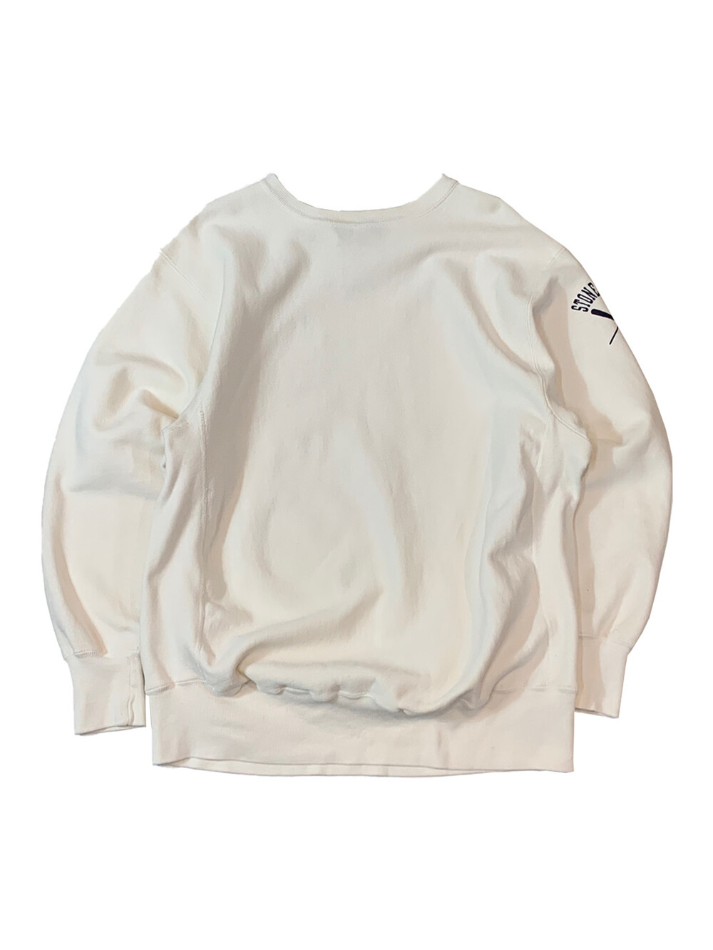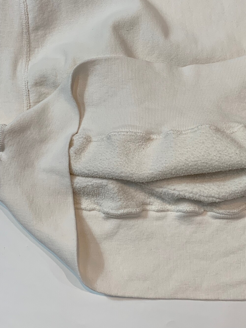 🚩Detail 몸판 원단 결이 가로방향을 향하도록 원단 재단방향을 90도로 돌려 재단하는 호리즌탈 위브 타입 중에서도 가장 대표적인 메이커 챔피온에 생산을 맡긴 미국의 캐주얼 브랜드 랜즈엔드의 리버스위브 스웻셔츠. 랜즈엔드 발주 모델은 주로 플레인 모델이 대부분인데, 소매 부분에 로잉(Rowing)을 대표하는 노가 겹쳐진 로고와 함께 해양 레크리에이션 시설로 유명한 지역 뉴저지 스톤 하버(STONE HARBOR) 스펠아웃 프린팅이 올려진 보기 드문 제품입니다. 동일 챔피온 생산 모델에 비해 표기 대비 여유로운 사이즈로 105호 혹은 그보다 작게 착용하는 분들에게 추천드립니다.