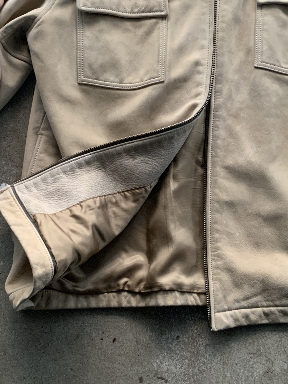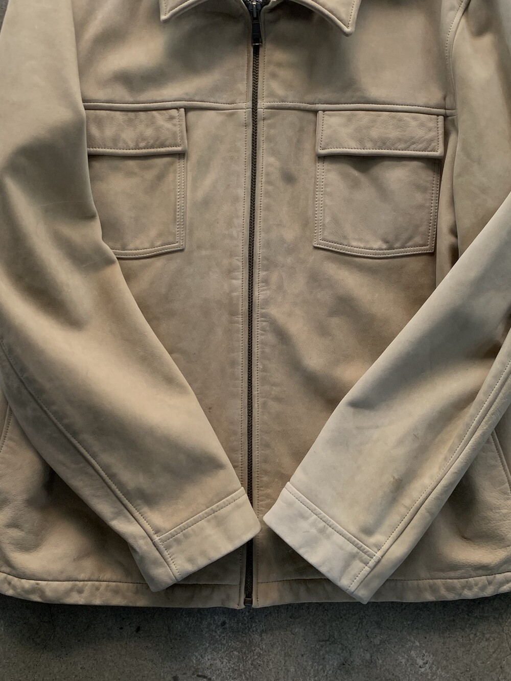 🚩Detail 부드러운 터치감과 동시에 두껍지도 그렇다고 얄팍하지도 않은 소가죽을 사용해 가죽자켓 특유의 존재감을 드러낼 수 있을만한 2003년 생산 올드 갭의 레더 자켓. 전면 아웃포켓이나 전후면 절개 외에는 디테일이라 할 만한 요소 없이 심플한 구성으로, 측면 트임이 있어 자칫 답답하고 단조로워보일 수 있는 형태가 보완된 웨어러블한 실루엣이 매력적인 제품입니다. 큼지막한 칼라와 V존 조절에 용이한 지퍼플라이 방식으로, 취향에 따라 크루넥 풀오버 이너와 심플하게 매치하거나 머플러를 두르거나 롤넥 티셔츠나 V넥 스웨터 등을 매치해 V존 연출을 해도 좋을만한 제품입니다.