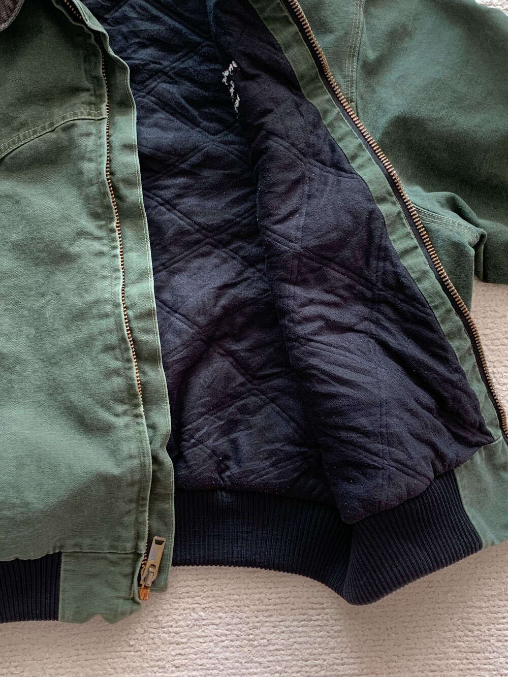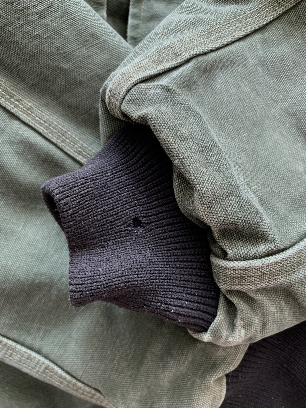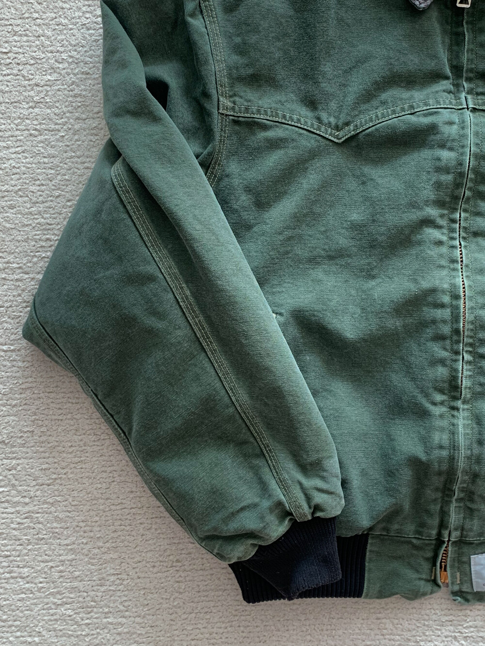 🚩Detail 칼하트 자켓류가 J 시리즈로 모델명이 통합되기 이전, JQ2104라는 모델명이 붙었던 짙은 그린 컬러의 산타페 자켓입니다. 산타페 자켓의 전신인 웨스턴 자켓이 1995년까지 소개되었기에 1995년 후반 혹은 1996년에 생산된 산타페 초기형 제품이라 할 수 있겠습니다.