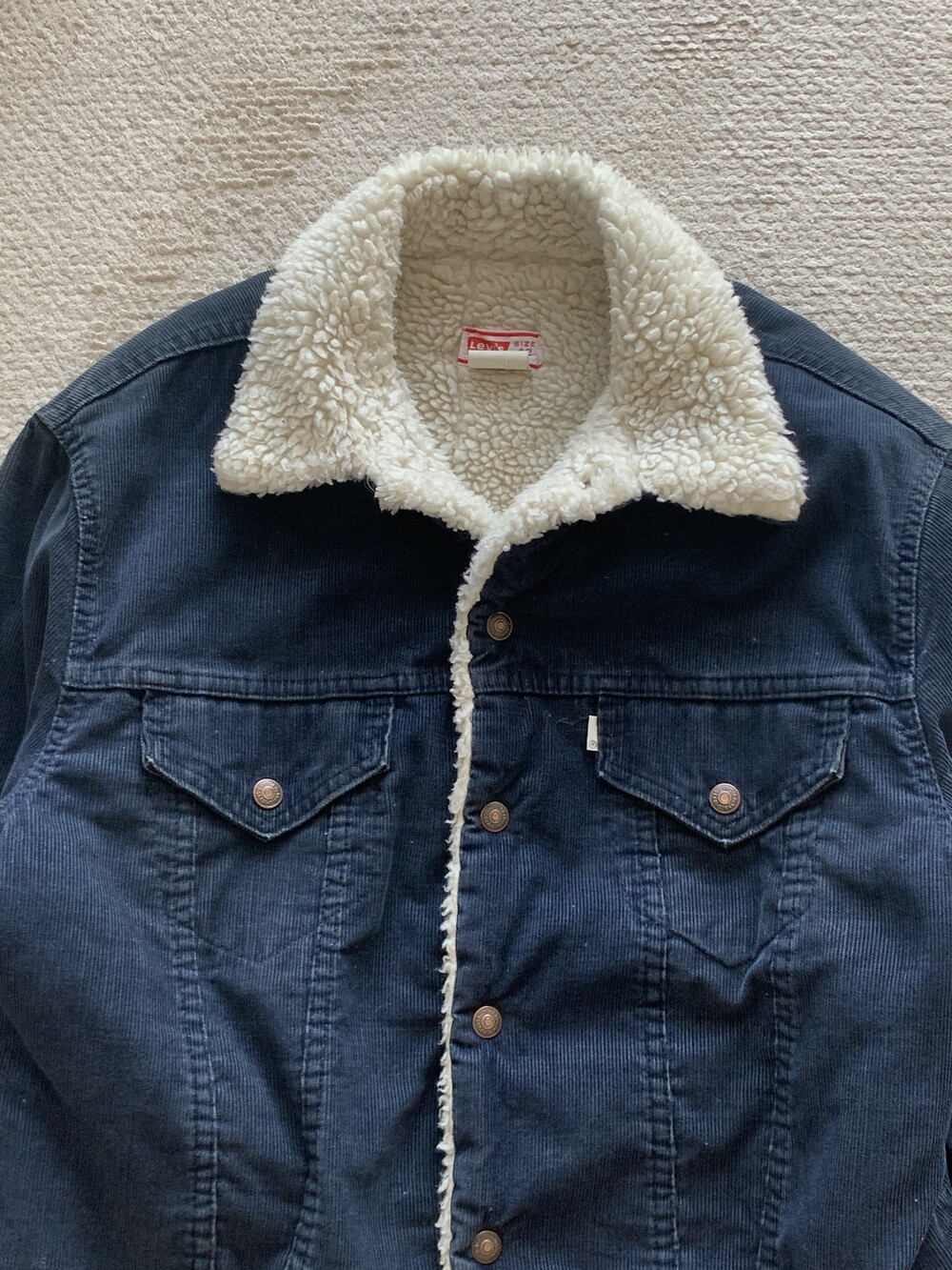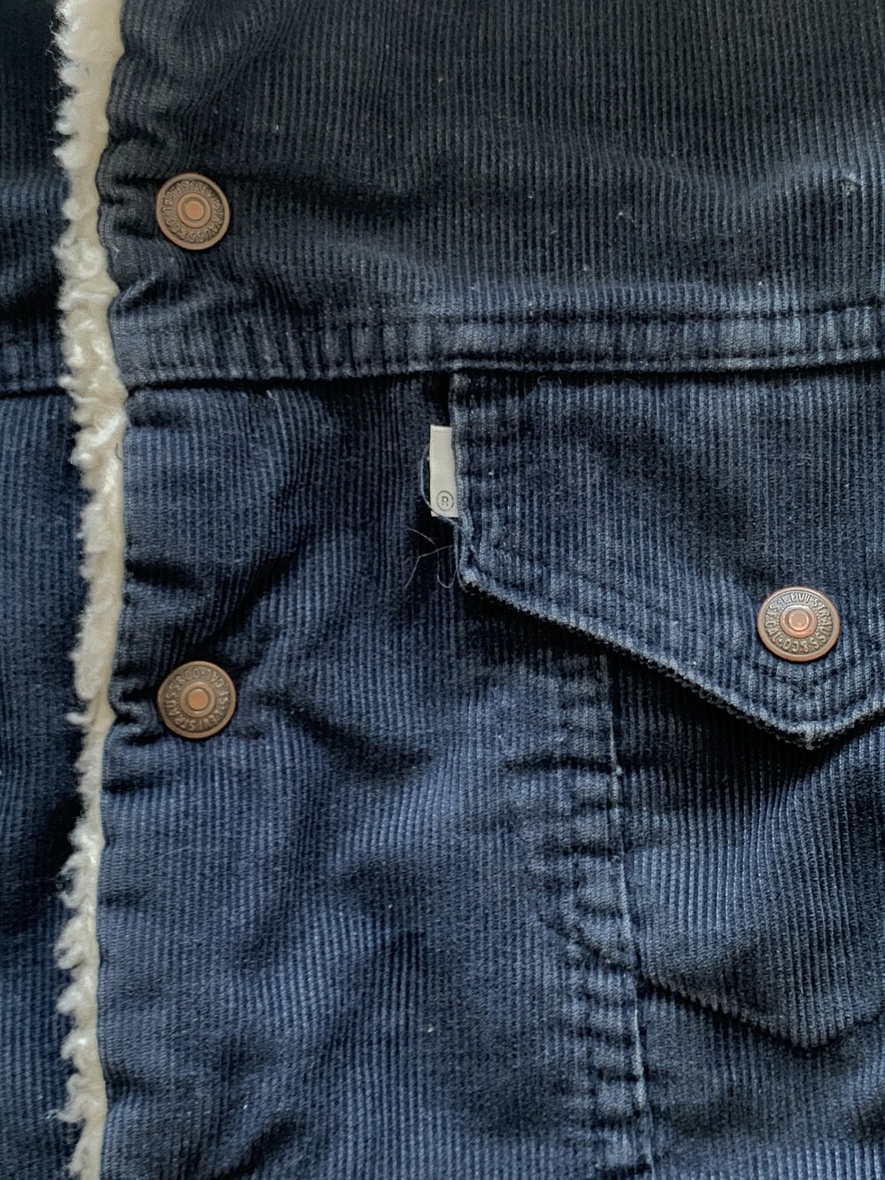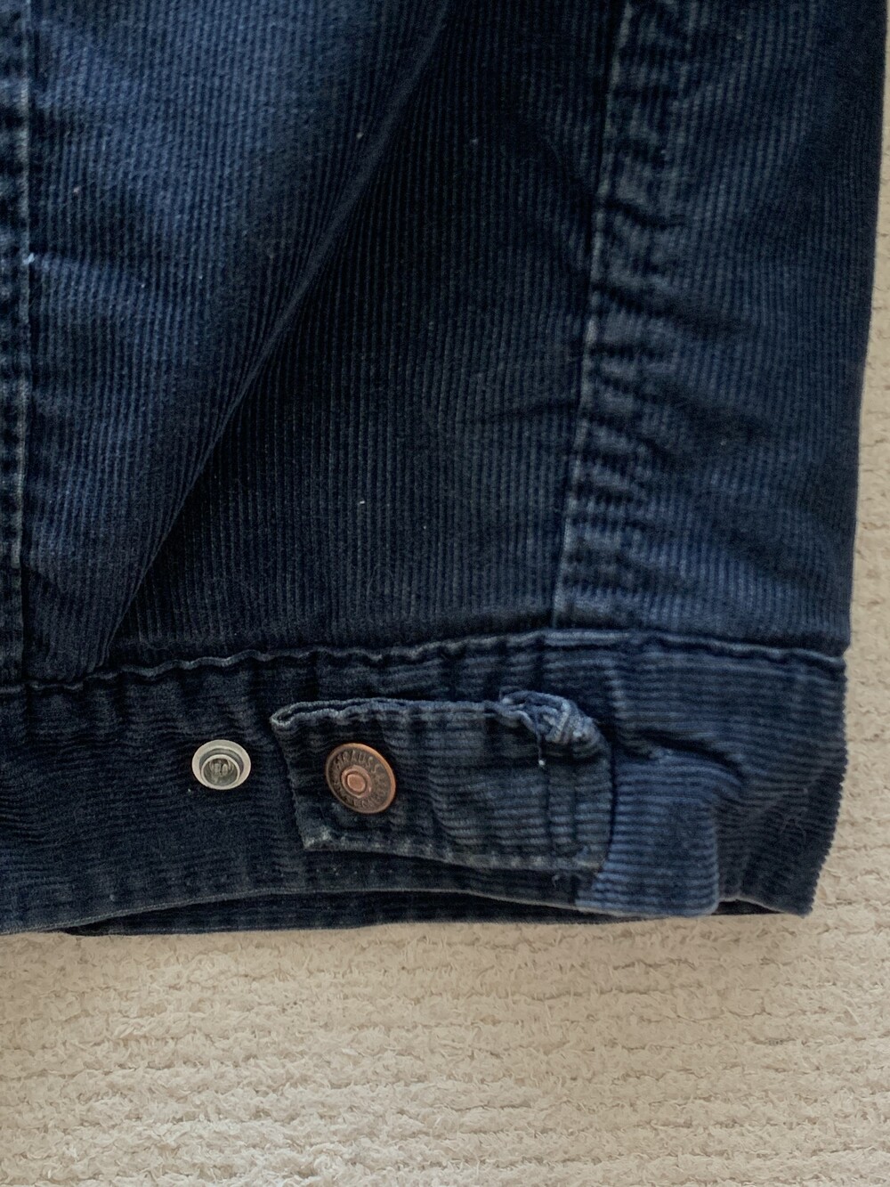 🚩Detail 리바이스의 네이비 색상 코듀로이 트러커 자켓 70505-1517 의 비례감을 유지하면서도 몸판에 보아 라이닝, 소매에는 퀼트 라이닝이 붙는 등 라이닝이 추가되어 편의성을 고려해 전면과 포켓 머드 스냅버튼으로 변경된 쉐르파 자켓 70605-1517 입니다. 아웃쉘 차이로 인해 데님 쉐르파 자켓에 비하면 유연한 착용감이 돋보이는 제품으로, 이너에 롤넥 티셔츠나 써멀 티셔츠 등을 매치하고 소매 부피감을 고려해 다운 베스트 등의 아우터와 레이어드하여 활용하셔도 좋겠습니다. 100호 혹은 그보다 살짝 크게 착용하는 분들까지도 권장드립니다
