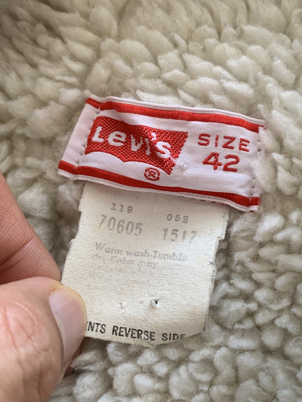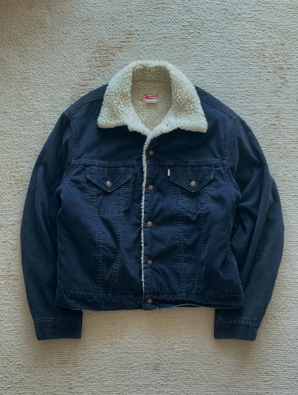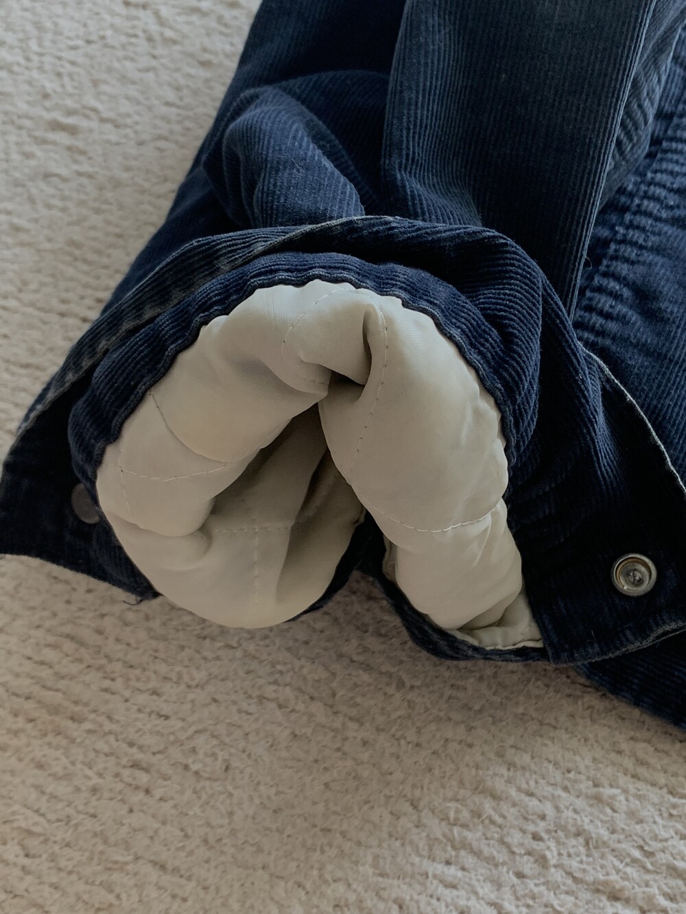 🚩Detail 리바이스의 네이비 색상 코듀로이 트러커 자켓 70505-1517 의 비례감을 유지하면서도 몸판에 보아 라이닝, 소매에는 퀼트 라이닝이 붙는 등 라이닝이 추가되어 편의성을 고려해 전면과 포켓 머드 스냅버튼으로 변경된 쉐르파 자켓 70605-1517 입니다. 아웃쉘 차이로 인해 데님 쉐르파 자켓에 비하면 유연한 착용감이 돋보이는 제품으로, 이너에 롤넥 티셔츠나 써멀 티셔츠 등을 매치하고 소매 부피감을 고려해 다운 베스트 등의 아우터와 레이어드하여 활용하셔도 좋겠습니다. 100호 혹은 그보다 살짝 크게 착용하는 분들까지도 권장드립니다