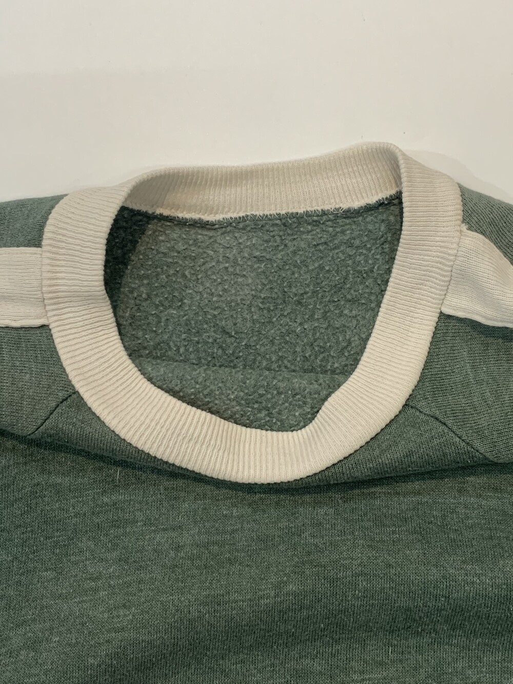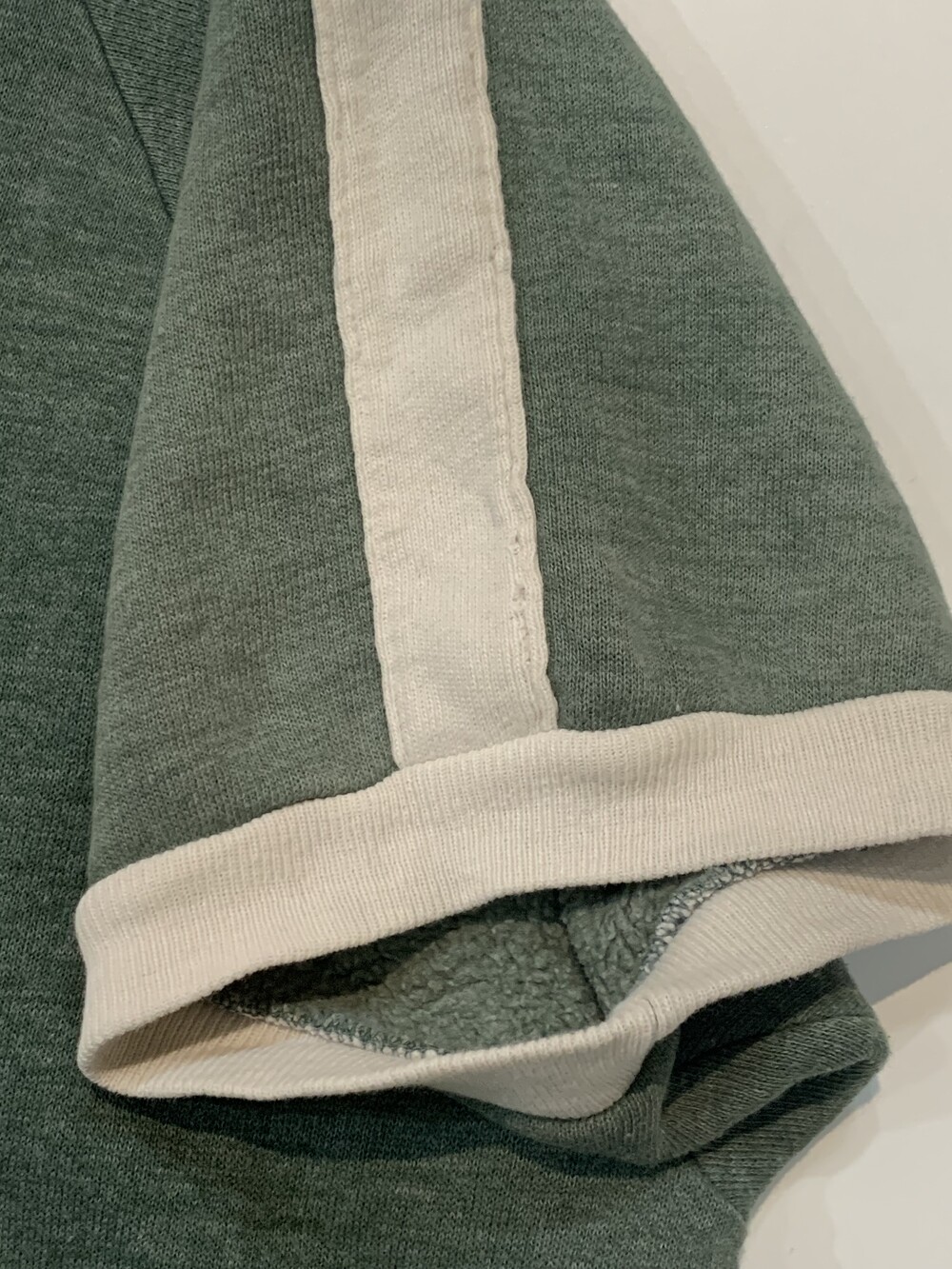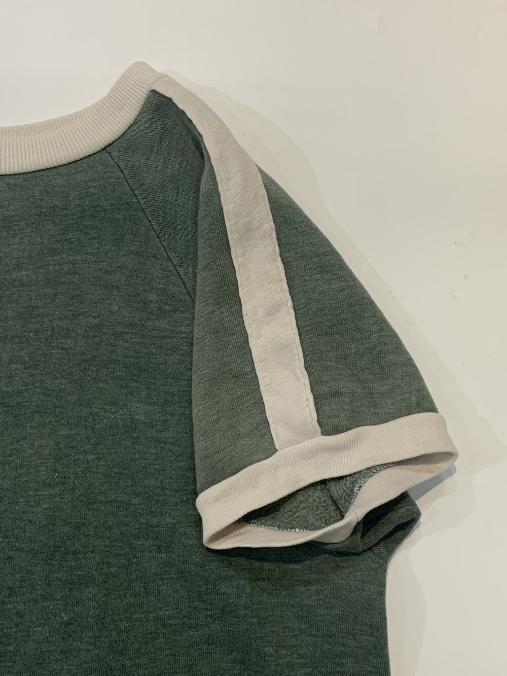 택은 유실되었으나 구형 직기로 짠 코튼 저지 원단 특유의 터치감이 돋보이는 1960년대 생산 숏슬리브 스웻셔츠입니다. 몸판 외에도 어깨선과 립 부분에는 배색이 다르게 들어가는 투톤 사양으로, 애슬래틱한 무드를 연출하기 좋을만한 제품입니다.
