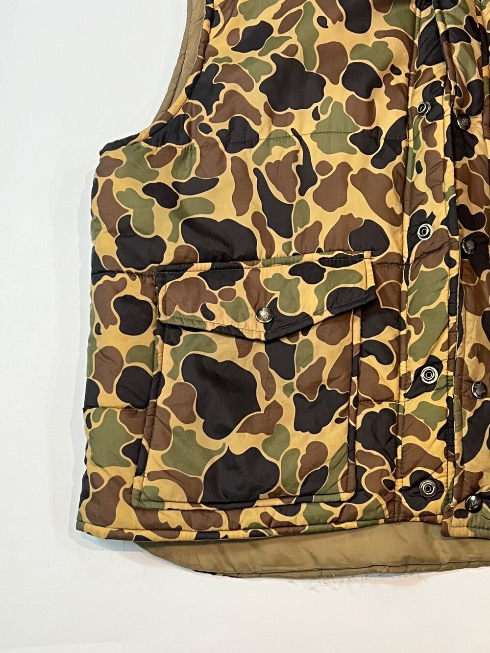 덕 헌터 카모플라주 패턴이 적용된 생모리츠(St.Moritz)의 퀼티드 베스트입니다. 겉면은 미국발 아웃도어웨어에서 주로 쓰이던 폴리/코튼 혼방 원단을 사용한 제품입니다. 칼라부분 스냅냅을 풀어 칼라를 연출할수도 혹은 스냅을 채워 목을 감쌀수도 있으며, 폴리 충전재를 넣어 관리에 용이하며 가벼운 착용감을 보이는 제품입니다.