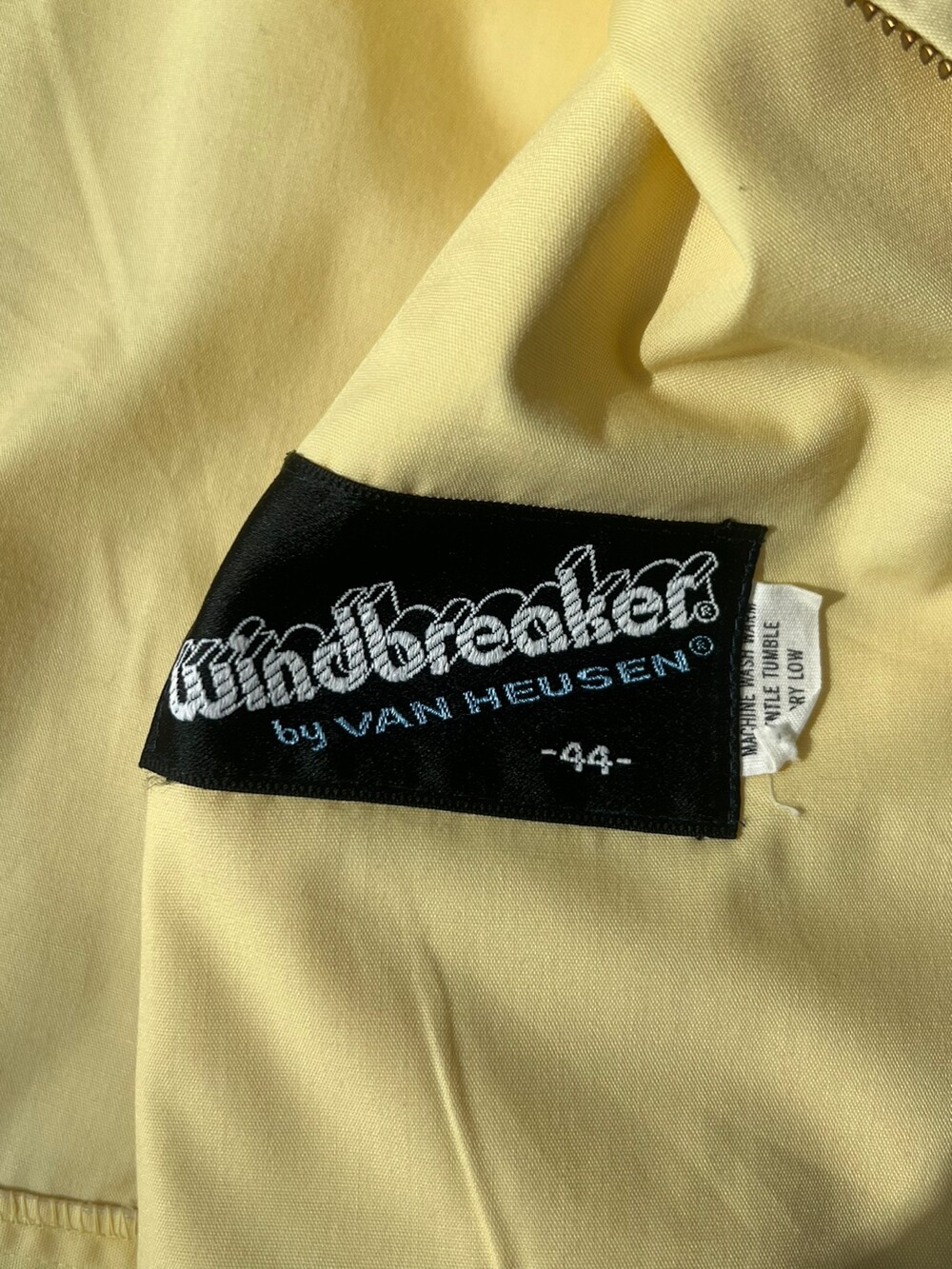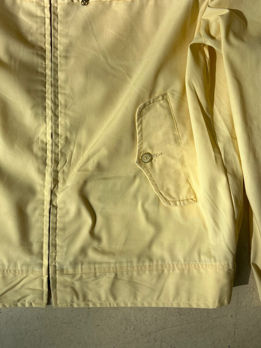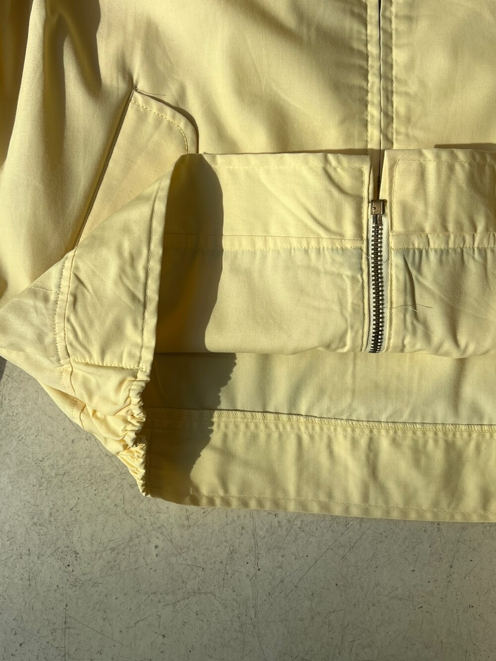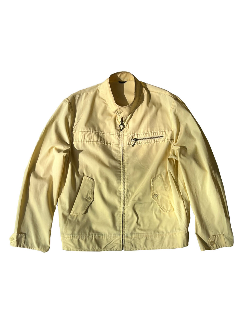 흔치 않은 역삼각형 그립의 탈론 지퍼, 그리고 수선 흔적이 없음에도 손목 스트랩이 둘 다 왼쪽 방향으로 되어있는 독특한 디테일이 매력적인 VAN HEUSEN의 나일론 스윙 자켓입니다. 밑단에는 양쪽에 밴딩이 있어 밑단은 살짝 조여지는듯한 실루엣에 소매는 스트랩이 널널해서 여유있는 제품입니다.