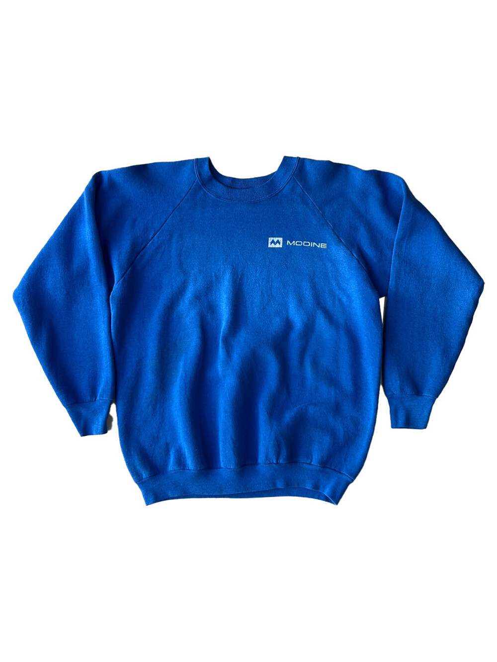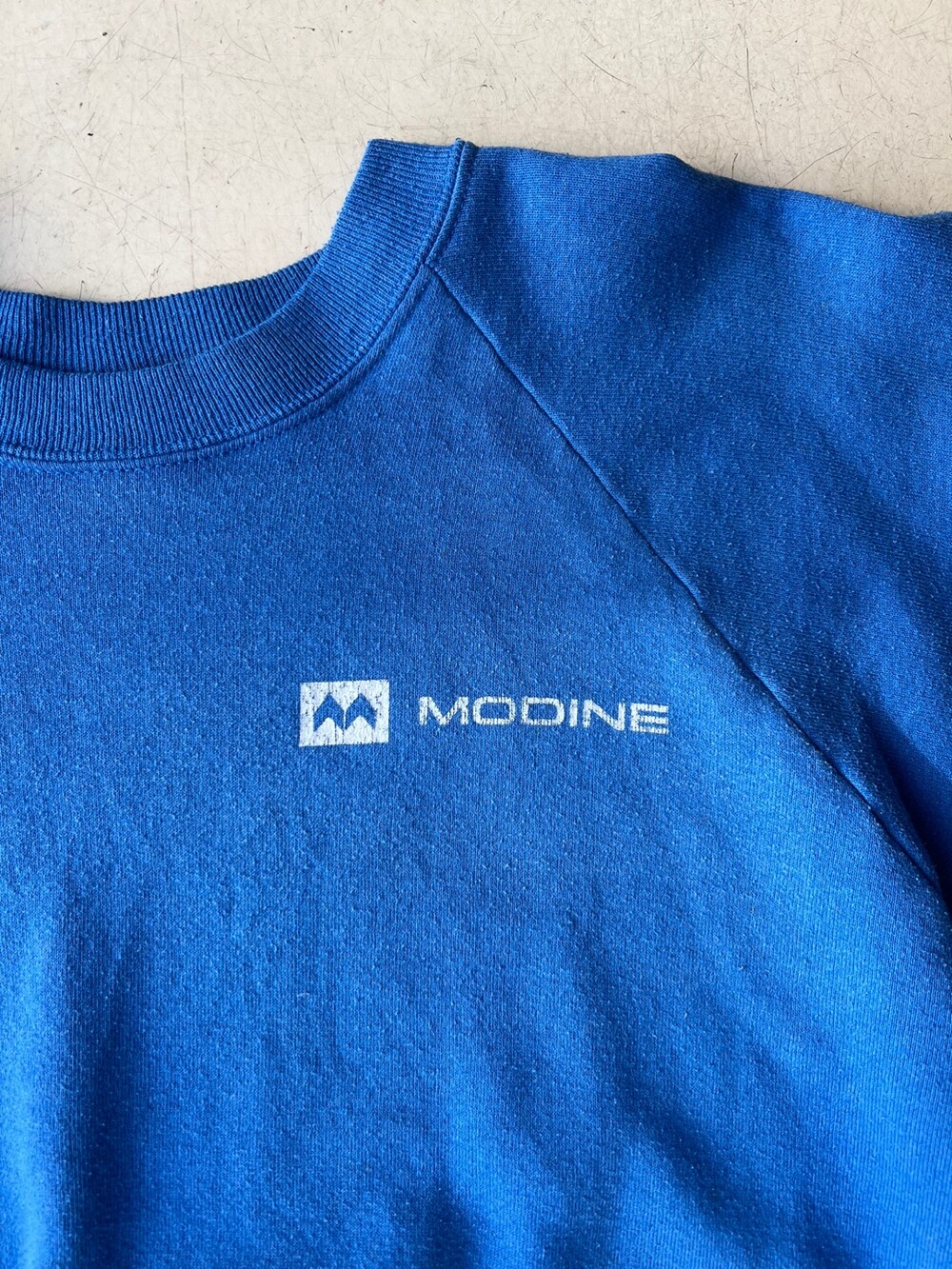 몸판 옆 부분과 밑단 립에 봉제선이 없는 튜블러 타입의 스웻셔츠로, 50/50 특유의 폭신한 원단감을 유지하고 있는 좋은 컨디션의 제품입니다. 전면에는 미국에서 라디에이터 및 쿨러 등 냉난방기를 생산하는 모딘(MODINE) 브랜드의 옛 로고가 프린팅되어 있습니다.
