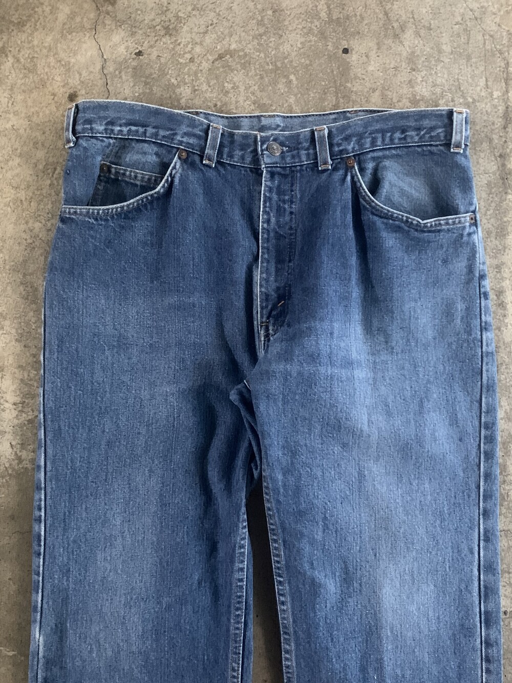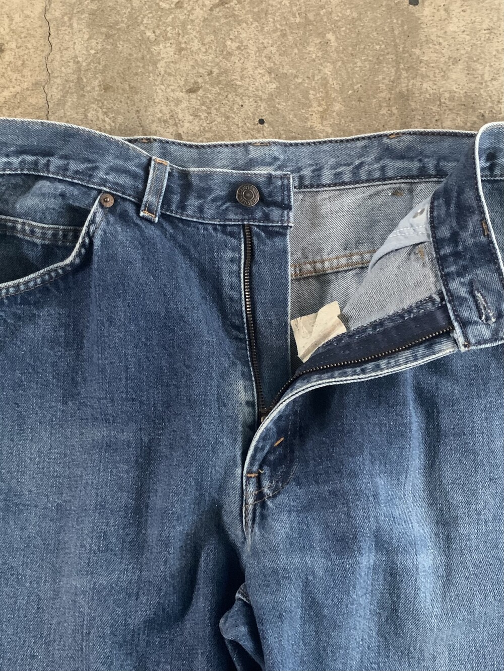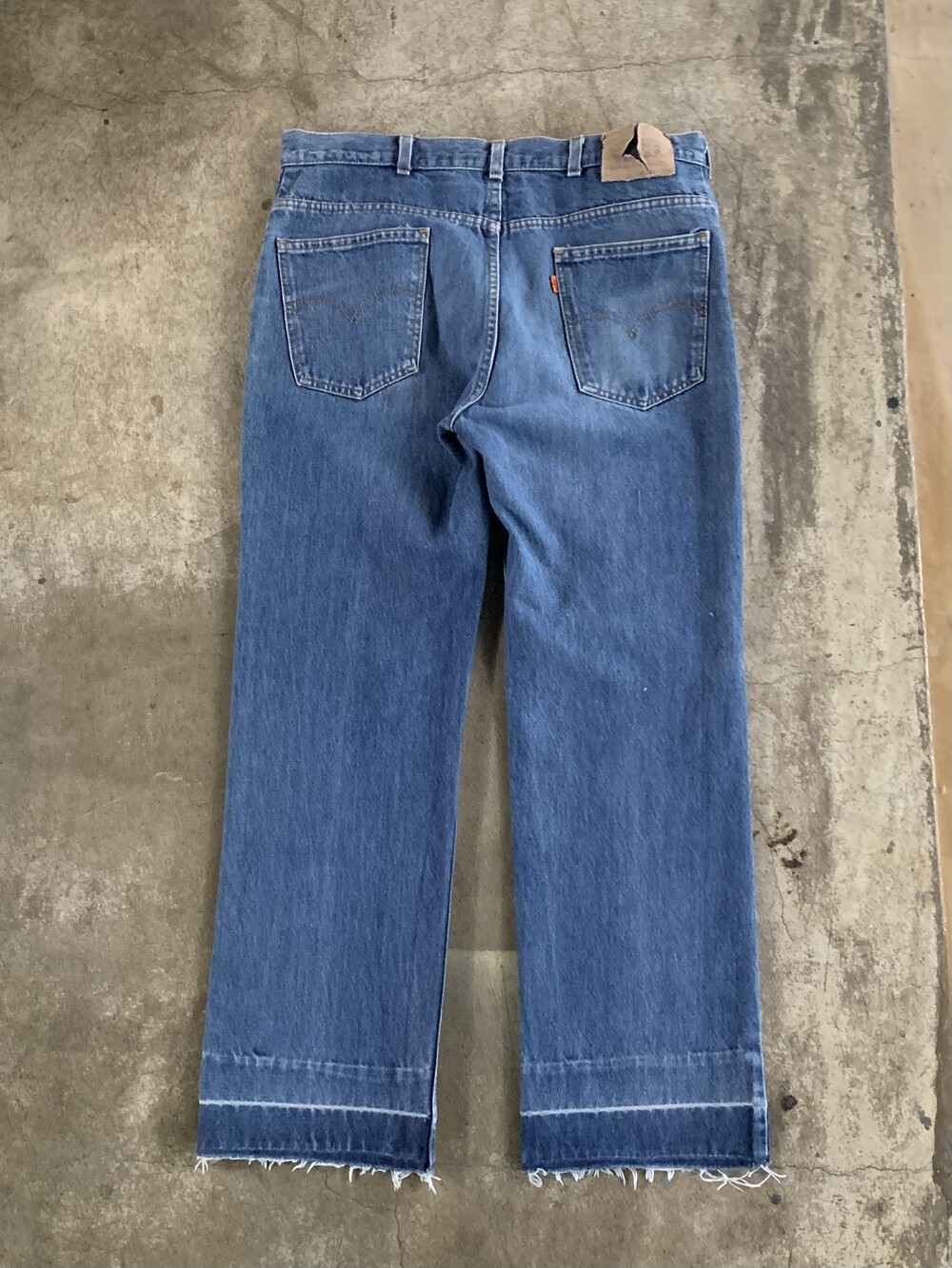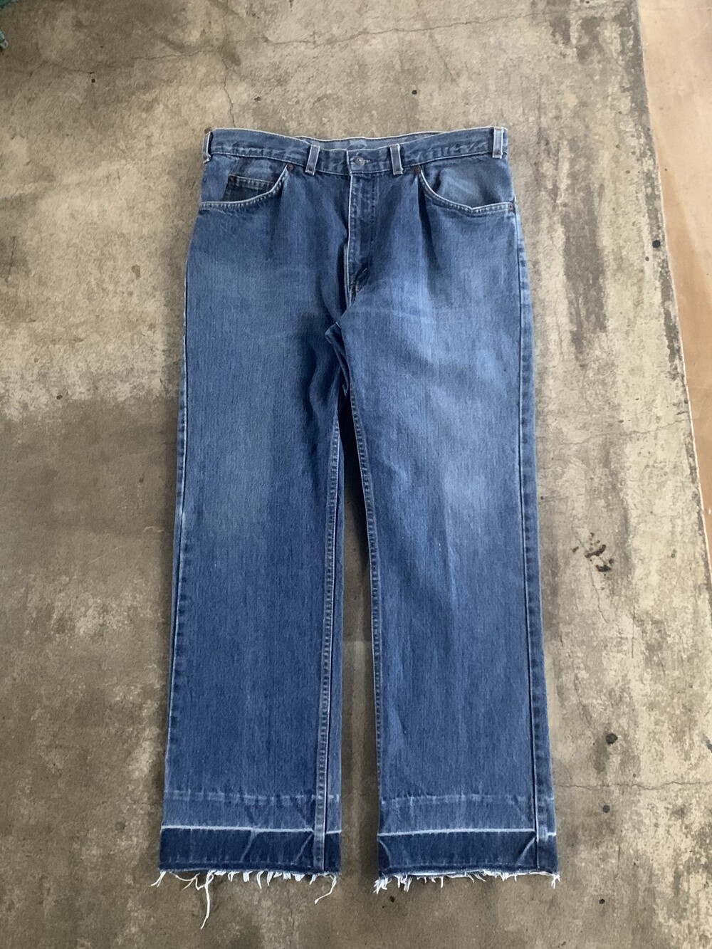 🚩Detail 애초에 오렌지탭 517이 무릎 너비와 밑단 너비 대비가 큰 편인 아닌데다 밑단을 잘라 기장을 줄인 수선을 거쳐 밑단에서 퍼지는듯한 부츠컷 특유의 실루엣이 보여지지 않을까 하고 걱정은 했지만, 밑단 너비 23cm로 부츠컷 마지노선에 턱걸이했다 싶은 정도의 1986년 10월 호주 생산 리바이스 517입니다. 미국제와 크게 다르지 않은 건조한 코튼 데님 원단에 페이딩이 자리잡는 단계의 사용감을 보이며 허리 단면 대비 기장이 그리 긴 편은 아닌지라 오버사이징하여 연출해도 좋을만한 제품입니다. 33인치 혹은 그보다 작게 착용하는 분들에게 권장드립니다.