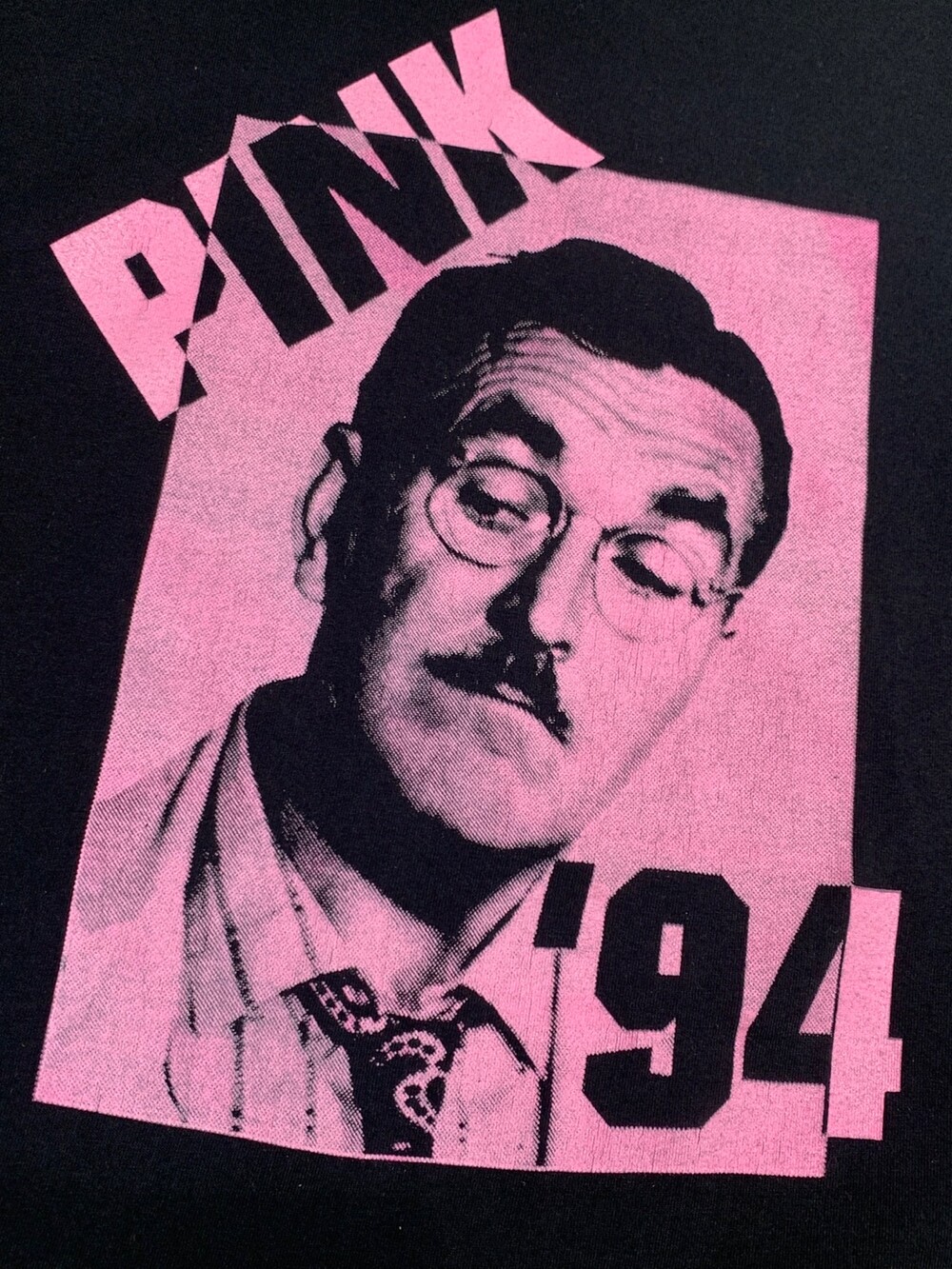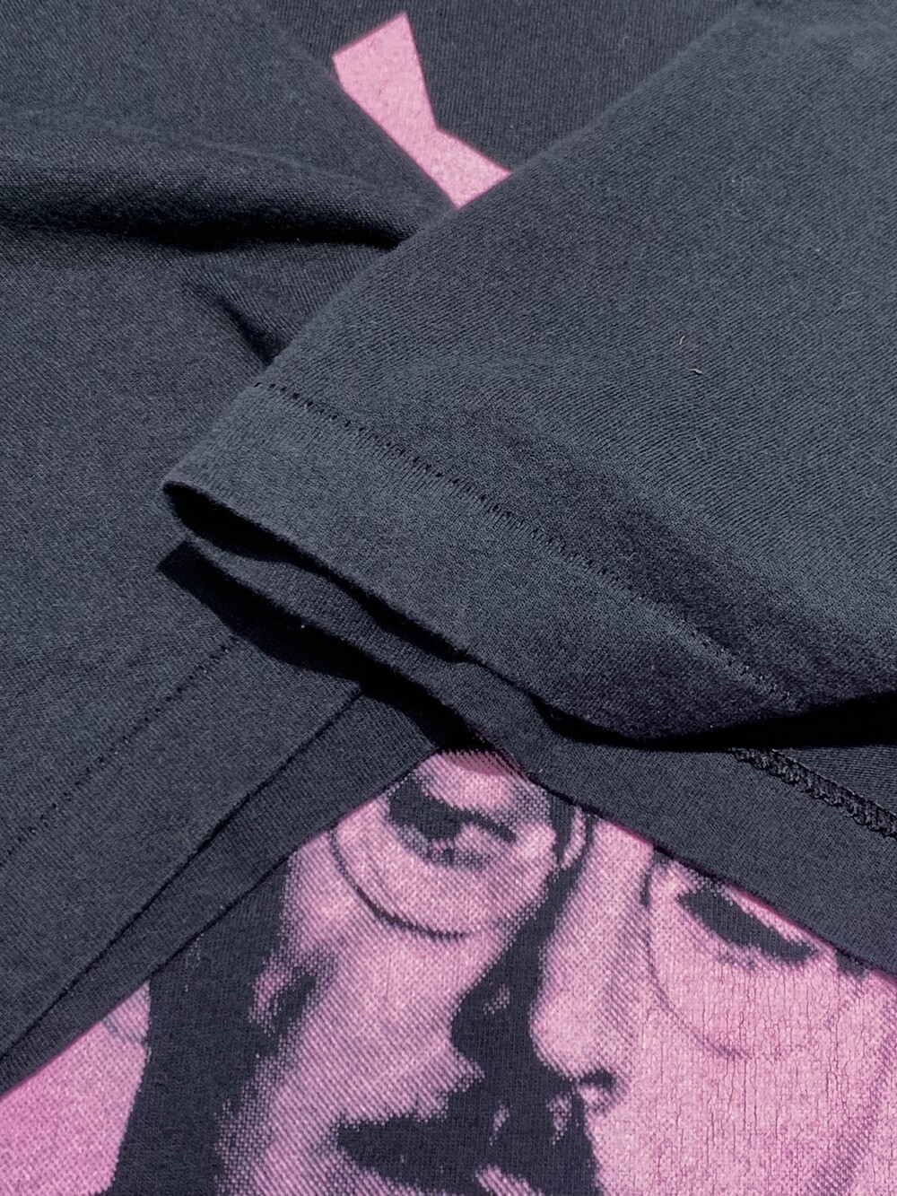 프린팅 속 인물은 1960년부터 8년간 방영된 미국 티비 시리즈 더 앤디 그리피스 쇼(The Andy Griffith Show)에 등장하는 인물 중 이발사 플로이드 로손(Floyd Lawson)입니다. 플로이드 로손의 흑백사진을 핑크 컬러로 뒤덮어버린, 말 그대로 핑크 플로이드가 되어버린 일종의 밈(Meme) 장르의 프린팅 티셔츠입니다. 대단한 의미부여를 할 정도의 티셔츠는 아니겠지만 고전적인 밈에 담긴 나름의 유쾌함, 그리고 음악도 듣지 않고 밴드 문화를 의류로 소비하는 포저가 오히려 그 누구보다 당당하게 소비할 수 있는 프린팅이라는 점에서 독특한 성격의 제품이라 할 수 있습니다.