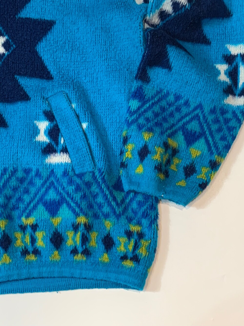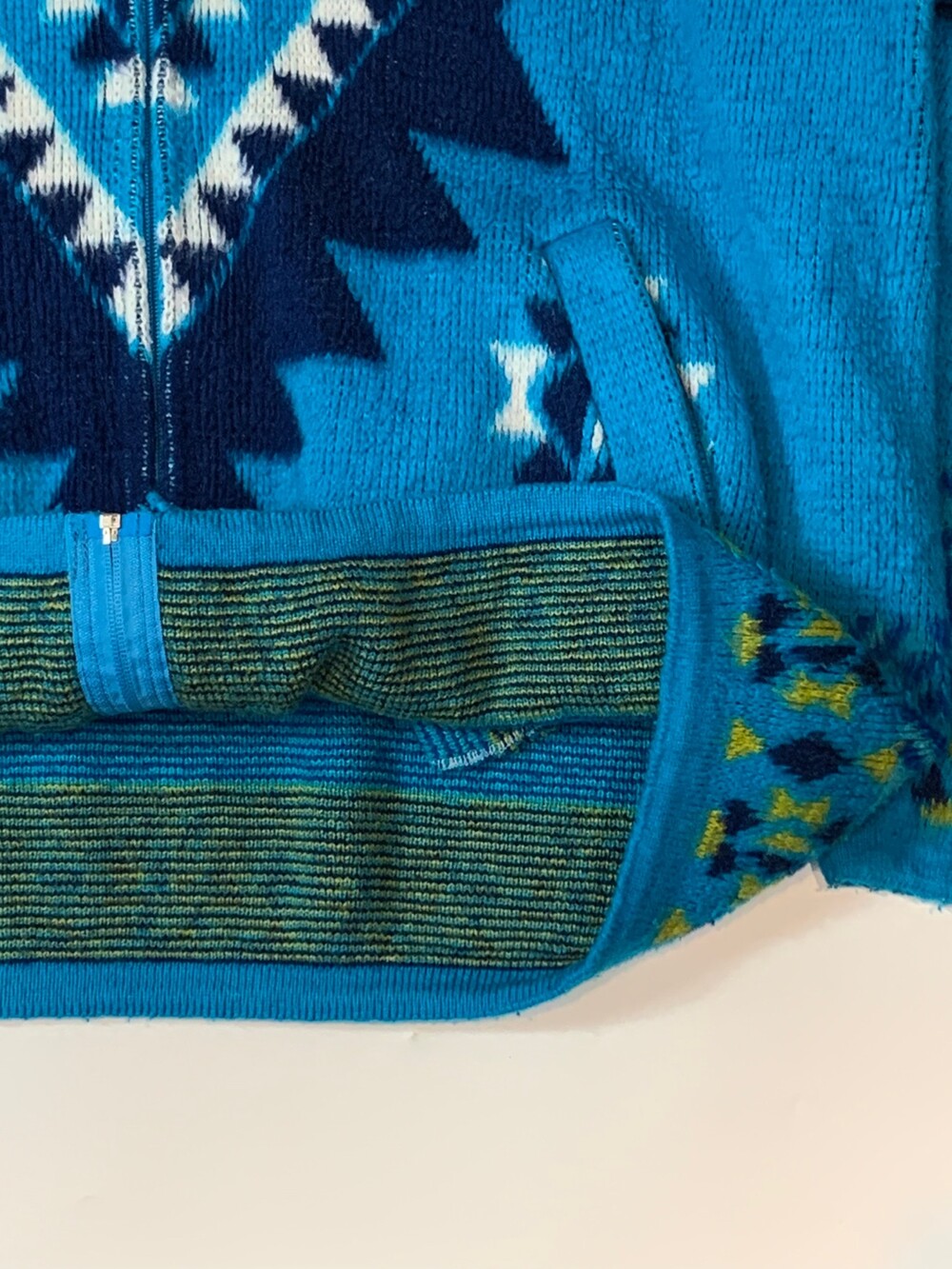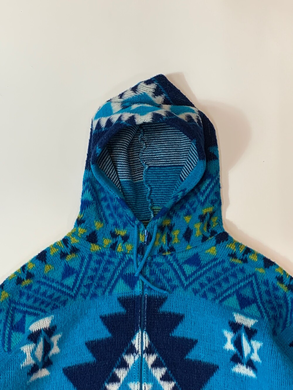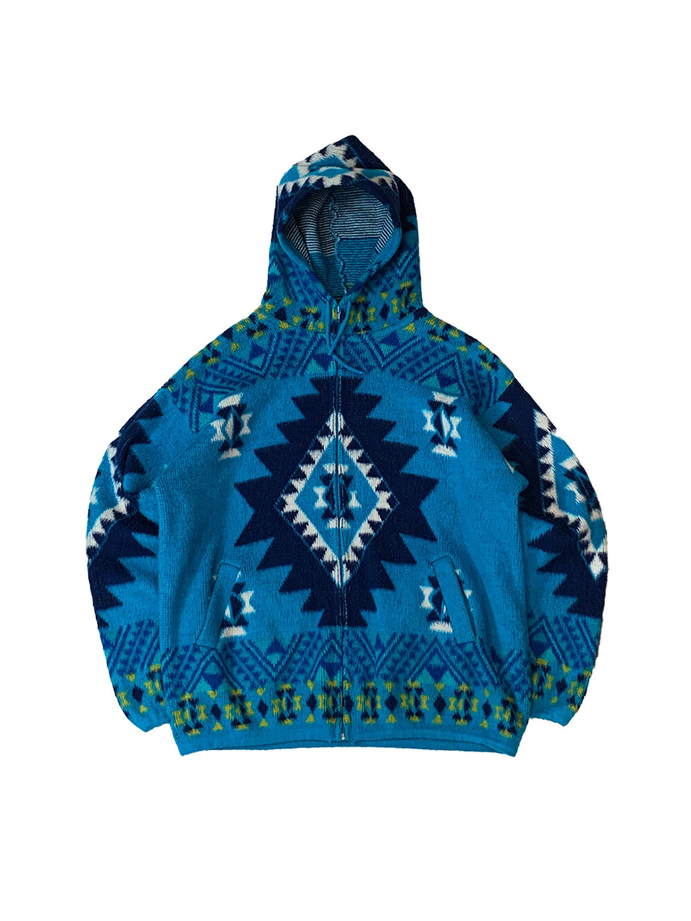 에콰도르에서 핸드메이드로 생산되는 울 소재 집업 후디입니다. 플리스를 연상케하는 부드럽고 헤어리한 소재감과 동물이나 나바호 문양 등 네이티브 장르에서 볼 법한 패턴이 전면 프린트로 올려지는 독특한 제품입니다. 소매와 밑단에 어느정도 텐션이 있으며 목을 가릴 정도로 높게 올라오는 후드와 스트링 덕분에 따뜻하게 착용할 수 있는 제품입니다.