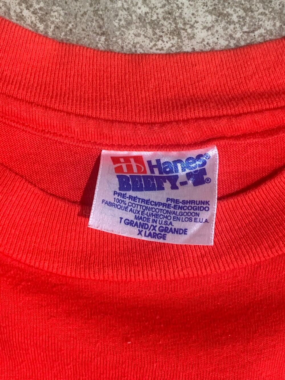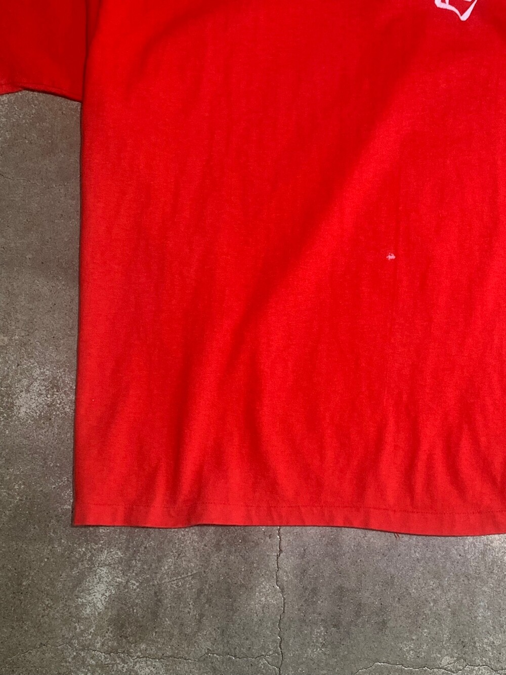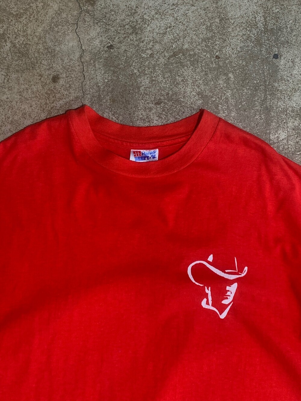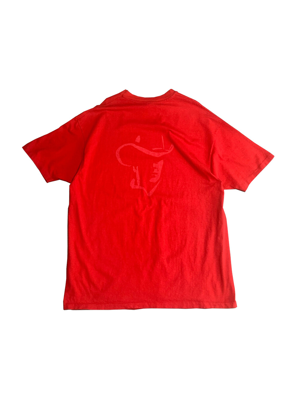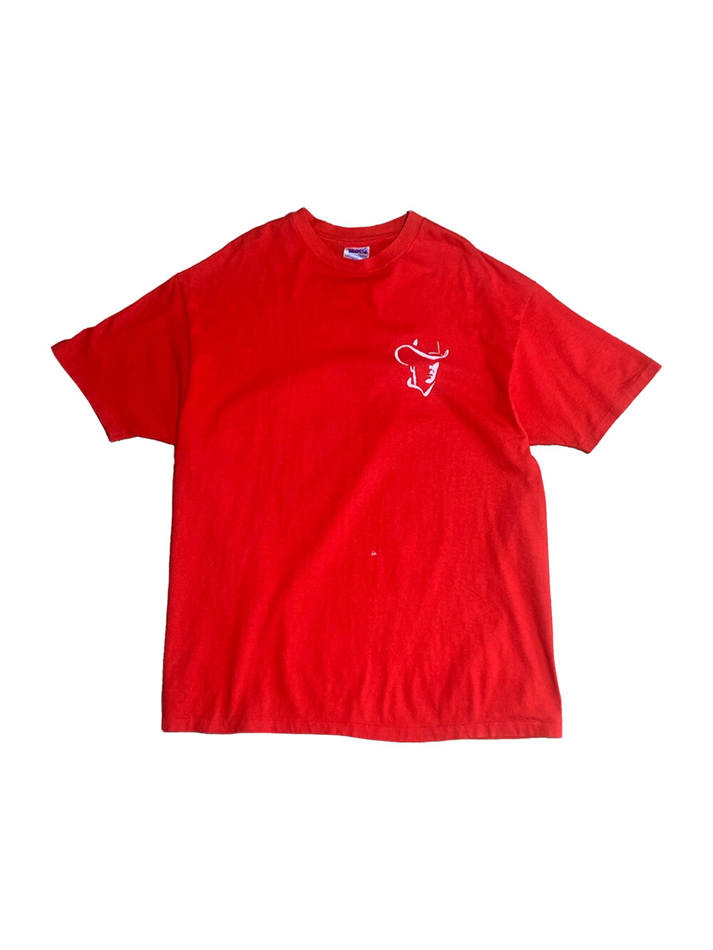 빨간색 바디에 카우보이 프린팅이 말보로(Marlboro)를 연상케하는 프린팅의 티셔츠. 전면과 후면 프린팅 컨디션이 달라 단품으로 착용하더라도 부담없이 소화할 수 있을만한 제품입니다.