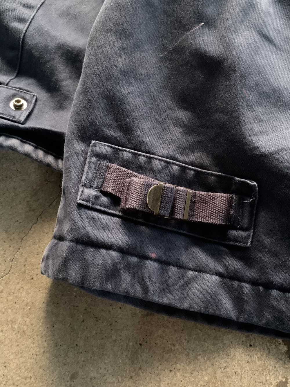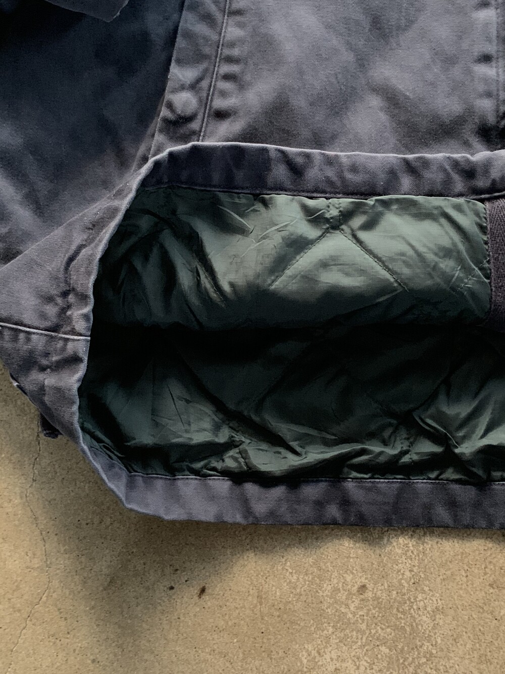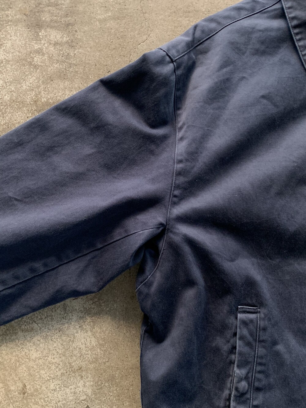 미 해군 A-2 덱 자켓을 모티브로 군복 특유의 올리브그린 대신 어디에나 입을 수 있을만한 네이비 컬러를, 마찰이 잦아 자주 상하는 립 대신 소매에 스냅버튼 스트랩을, 버튼클로징을 겸하는 지퍼 플랩 대신 원단이 서로 맞물리는 지퍼클로징을, 착용할수록 보풀이 많이 일고 꺼끌거리는 라이닝 대신 매끄럽고 부피감이 적은 퀼트 라이닝을 배치하는 등 여럿 디테일을 변경해 원본의 개선점을 보완한 형태를 선보입니다. 원본을 그대로 따르기보다는 컨템포러리한 관점에서 나름의 배려와 섬세함을 발견하는 즐거움이 분명히 존재합니다.