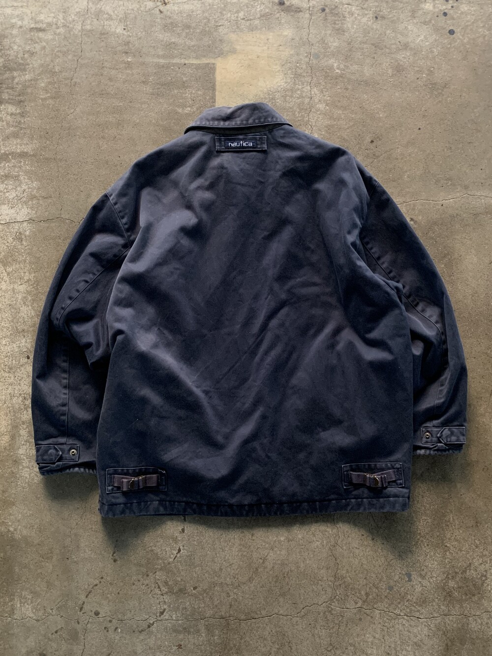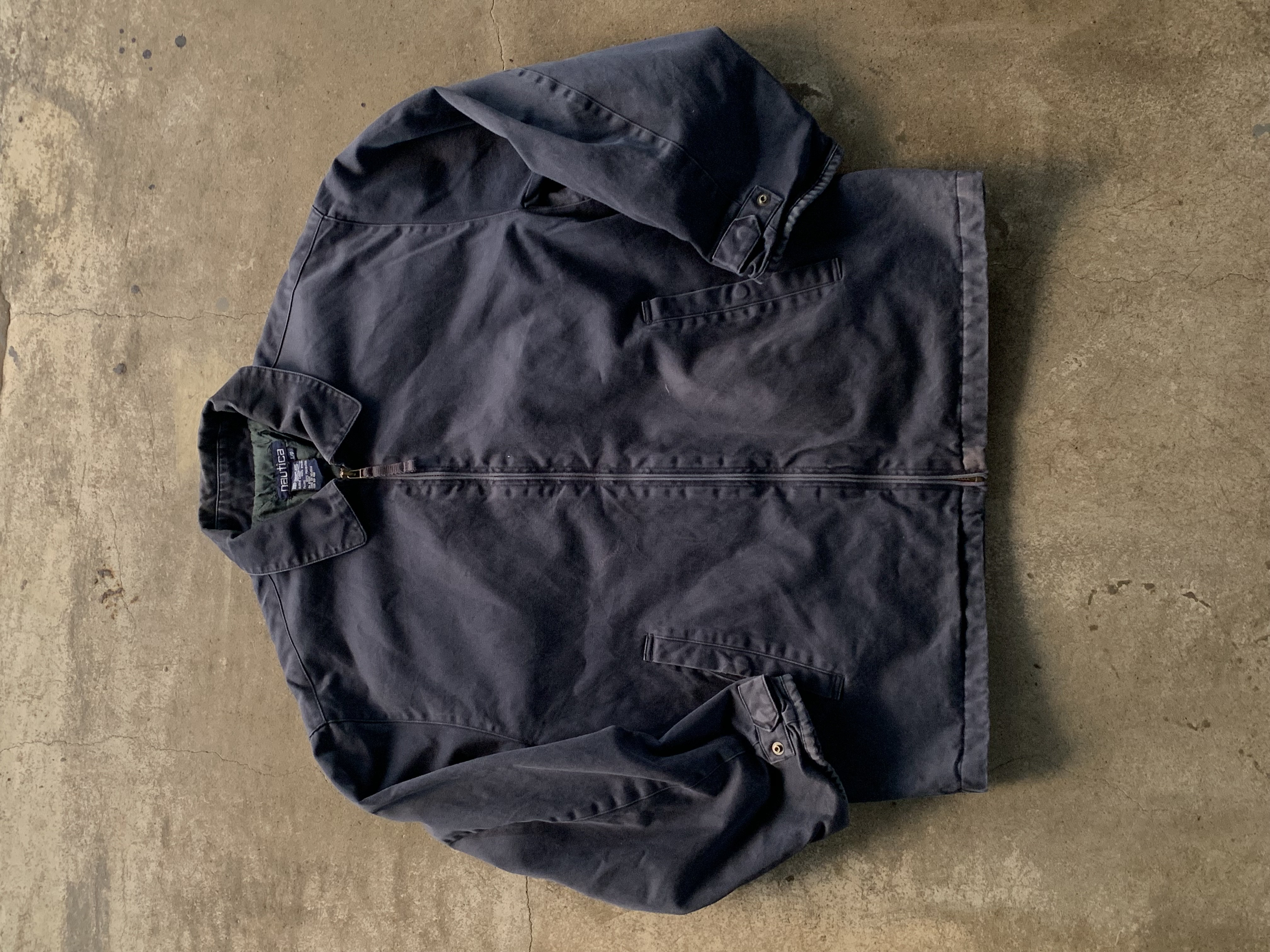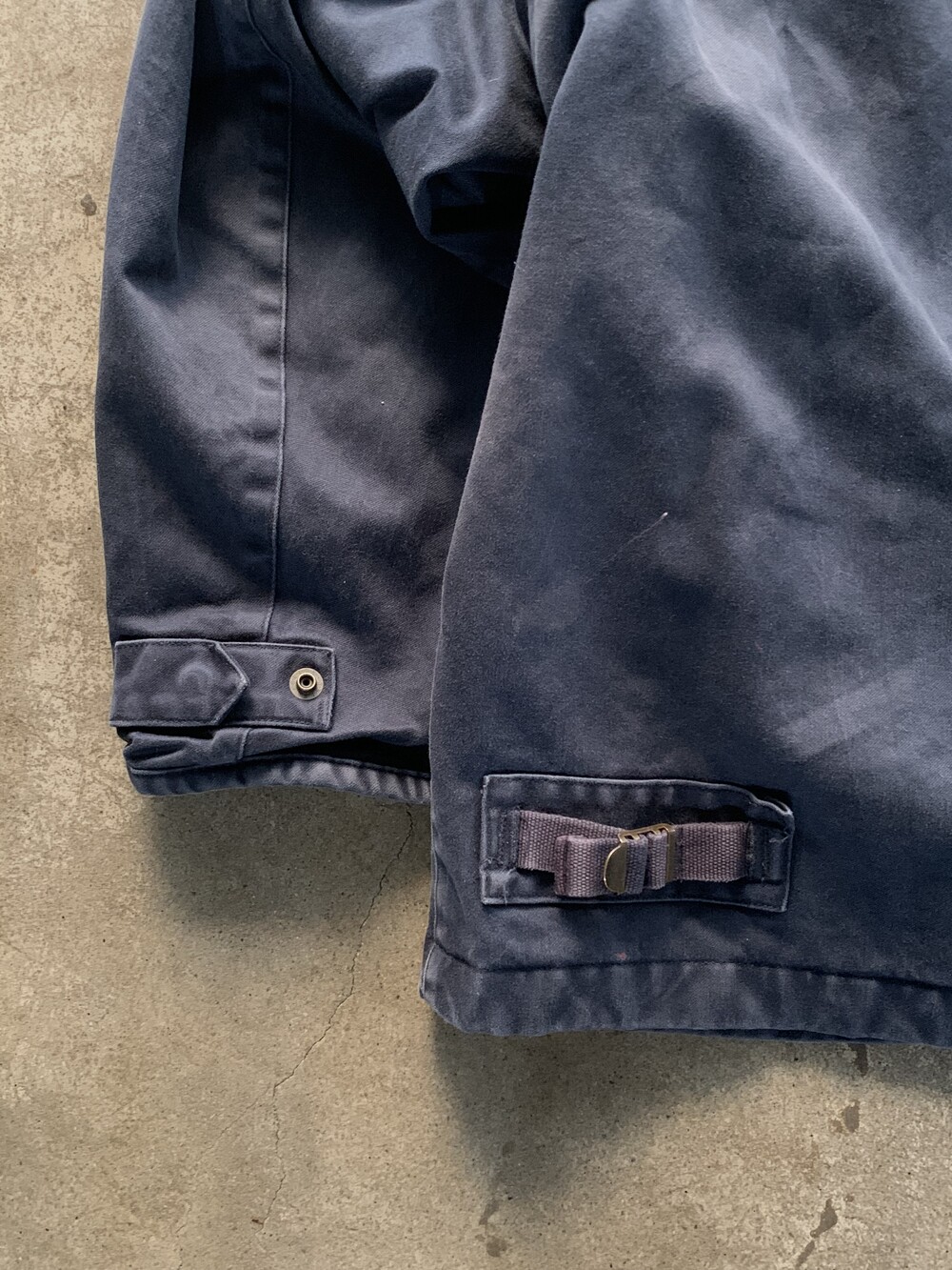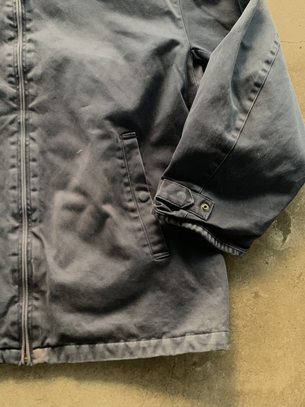 미 해군 A-2 덱 자켓을 모티브로 군복 특유의 올리브그린 대신 어디에나 입을 수 있을만한 네이비 컬러를, 마찰이 잦아 자주 상하는 립 대신 소매에 스냅버튼 스트랩을, 버튼클로징을 겸하는 지퍼 플랩 대신 원단이 서로 맞물리는 지퍼클로징을, 착용할수록 보풀이 많이 일고 꺼끌거리는 라이닝 대신 매끄럽고 부피감이 적은 퀼트 라이닝을 배치하는 등 여럿 디테일을 변경해 원본의 개선점을 보완한 형태를 선보입니다. 원본을 그대로 따르기보다는 컨템포러리한 관점에서 나름의 배려와 섬세함을 발견하는 즐거움이 분명히 존재합니다.