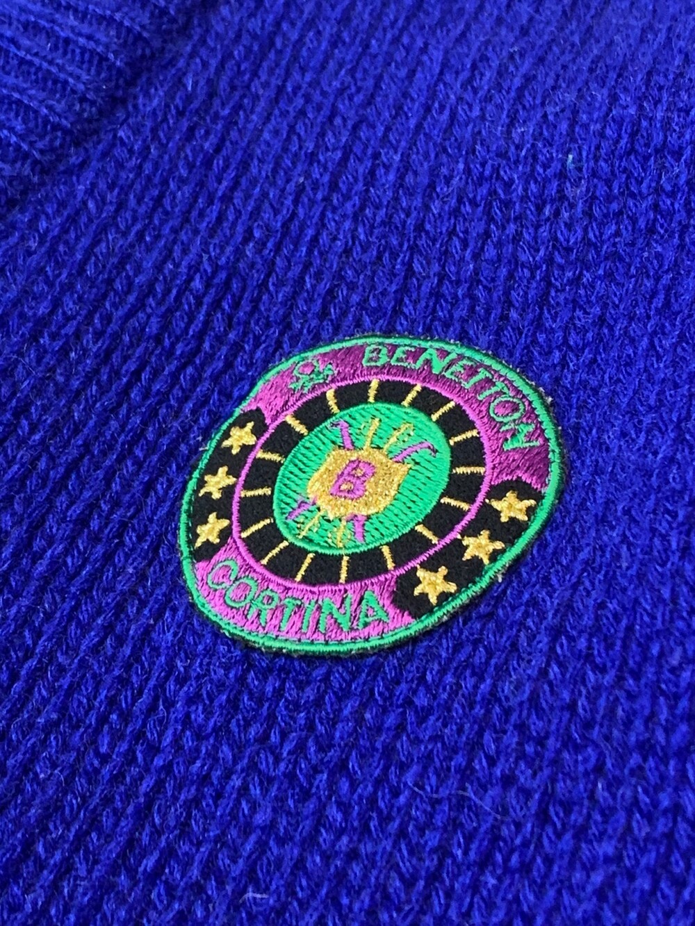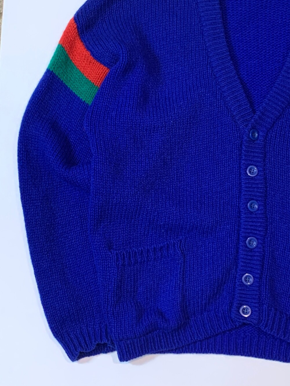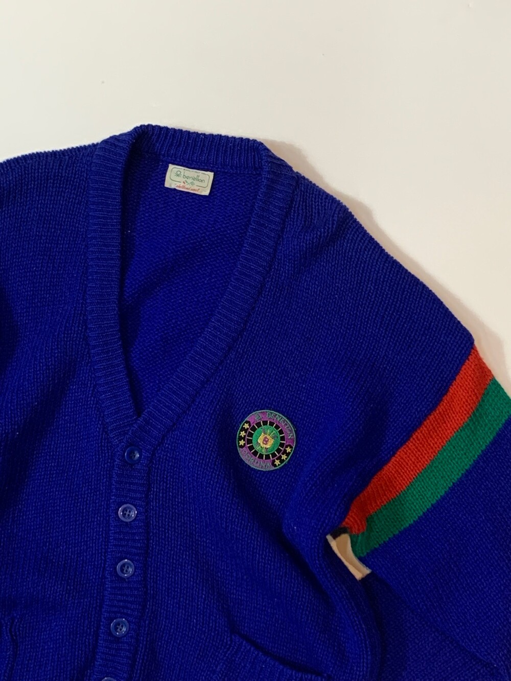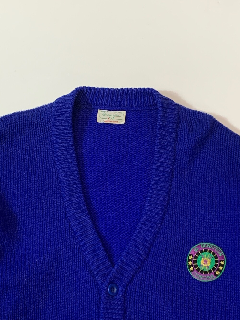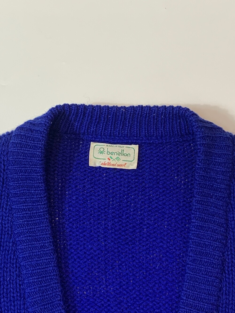 '유나이티드 컬러 오브 베네통'으로 브랜드명을 변경하기 이전 1970년대에서 80년대 사이에 생산된 셔틀랜드 울 소재의 울 카디건입니다. 적당히 두꺼우면서도 가벼운 원단감, 적당한 깊이감에 둥글둥글한 실루엣, 그리고 미국발 브랜드에서는 보기 드문 비비드한 배색이 매력적인 제품입니다.