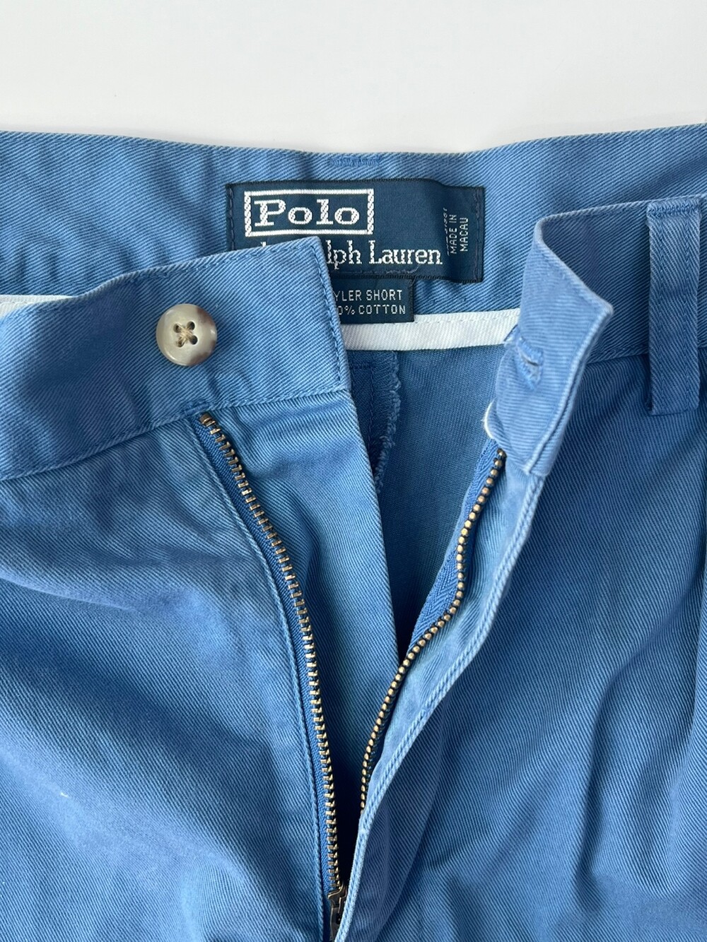 지퍼를 바라보는 방향으로 주름져있는 두 개의 포워드 플리츠가 적용된 폴로 랄프로렌의 TYRER SHORT 모델입니다. 해당 제품 기준으로 인심 8.5인치로 무릎 위로 올라오는 경쾌하면서도 부담스럽지 않을 기장감의 제품입니다.
