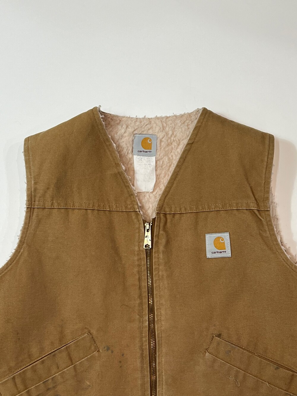 덕 캔버스 원단 겉감에 쉐르파 라이닝이 붙는 칼하트의 베스트입니다. 덕 캔버스 특유의 거칠고 단단한 원단감과 품에 비해 짧은 기장감으로 인해, 플란넬 셔츠나 스웻셔츠 등 두께감있는 상의와 매치하기 좋을만한 제품입니다.