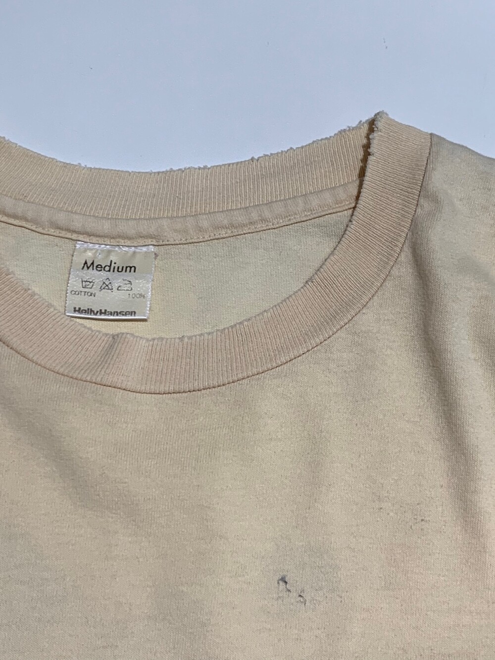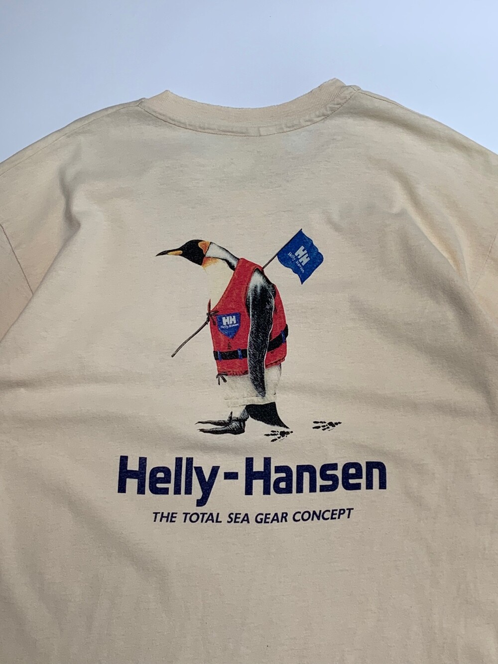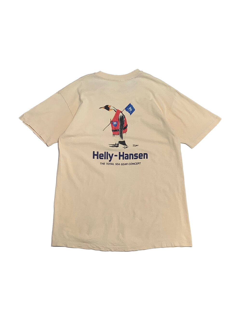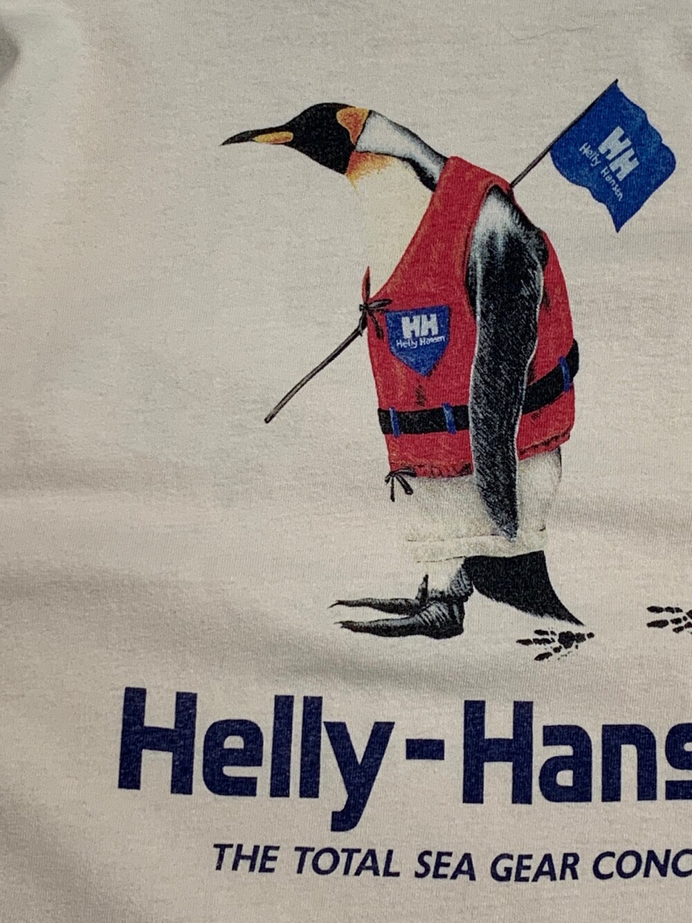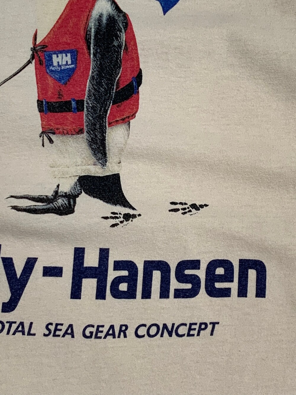 🚩Detail 노르웨이에서 배 위에서 일하는 노동자들을 위한 방수복을 생산하는 제조업체로 시작한 브랜드 헬리 한센(Helly Hansen)의 역사에 어울리는 THE TOTAL SEA GEAR CONCEPT 라는 슬로건과 함께 선보인 전후면 그래픽 티셔츠 중 하나입니다. 구명조끼를 입은 펭귄과 펭귄 발자국이 전후면에 찍힌, 시 기어(SEA GEAR)라는 컨셉과 잘 어울리는 프린팅이 돋보이는 티셔츠입니다.