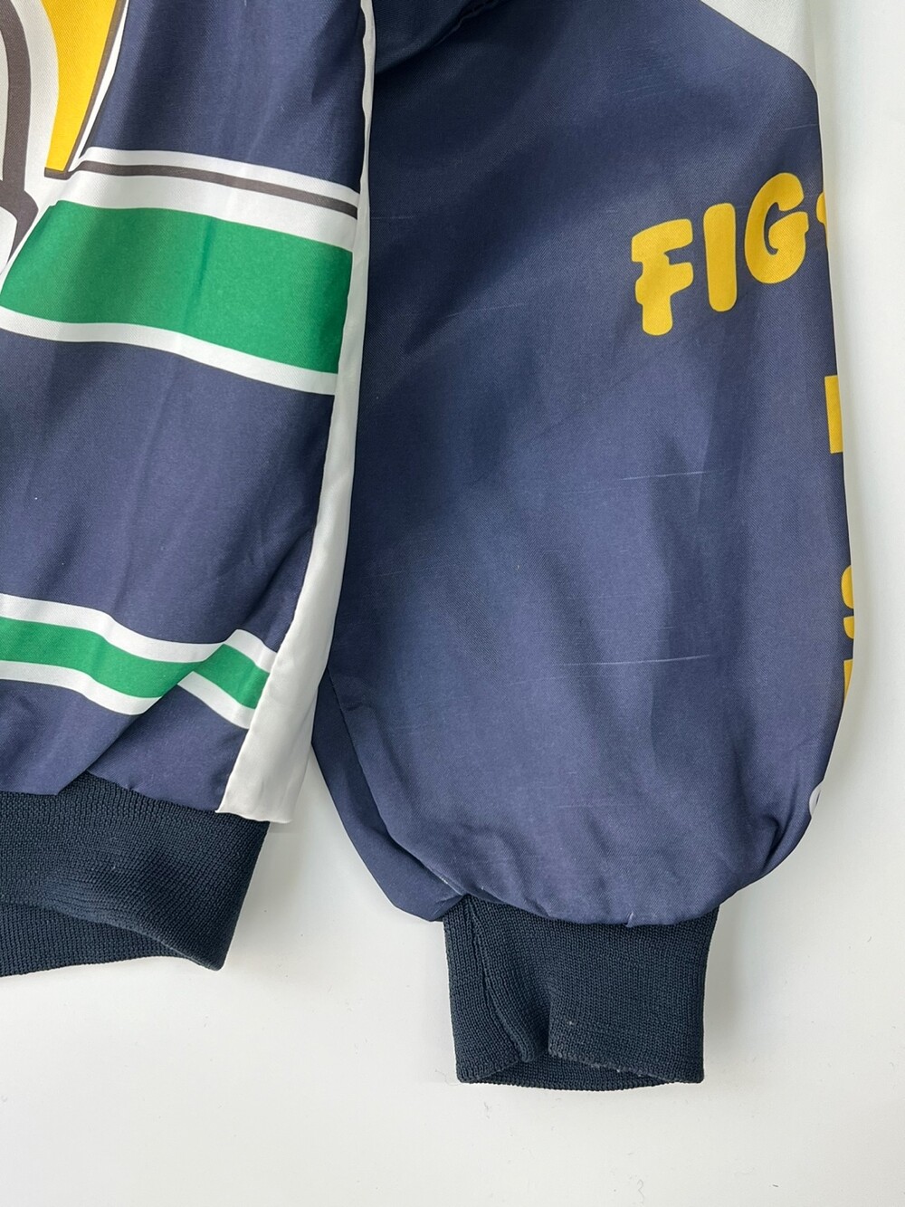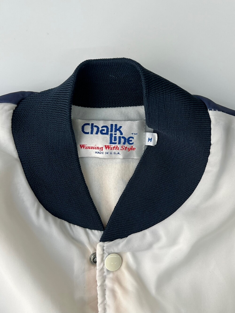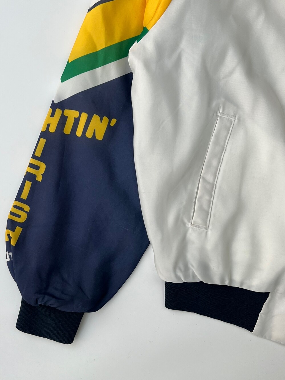 🚩Detail 북미권에서는 스포츠 팬(Fan)과 마스코트 프린팅(Animation)의 합성어인 Fanimation Jacket 이라는 품목으로 소개되는 전면 프린팅 자켓입니다. 미국 대학교 바시티 팀 중에서도 전국구 인기를 자랑하는 노터데임 대학교의 바시티 팀 노터데임 파이팅 아이리시(Notre Dame Fighting Irish)의 프린팅이 전면에 배치된 제품입니다. 스타터나 팰코와 마찬가지로 팀 웨어 메이커로서 알려진 Chalk Line의 제품으로 나일론 겉감에 얄팍한 플리스 라이닝이 붙은 제품입니다.