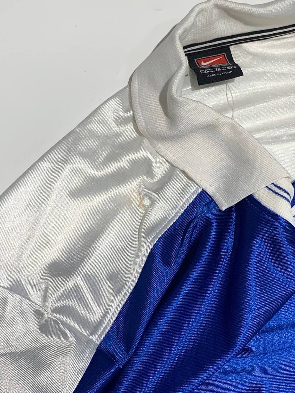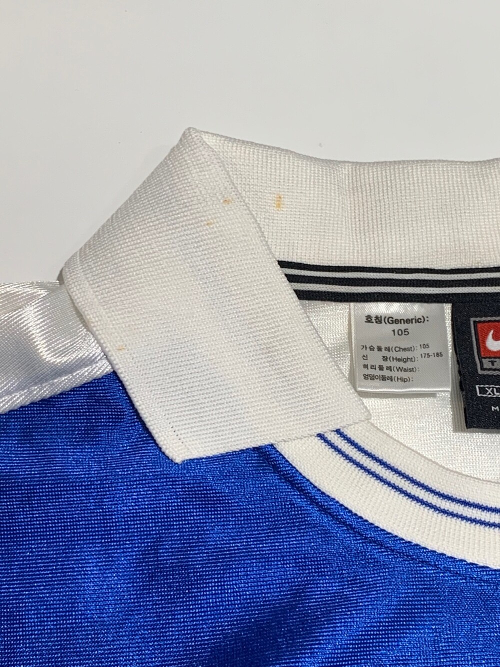 별도의 커스텀 없는 플레인 사양의 바디로 각 팀별로 패치를 붙이고 마킹을 올리는 등 커스텀하여 착용하는 나이키의 템플릿 풋볼셔츠. 크루넥 타입의 풋볼셔츠에 칼라가 붙어 레트로한 분위가가 물씬 나는 제품입니다. 루즈한 하프팬츠와 캐주얼하게 매치하거나 워크팬츠 혹은 데님팬츠 등의 투박한 바지에 턱인하여 착용하기를 권장드립니다.