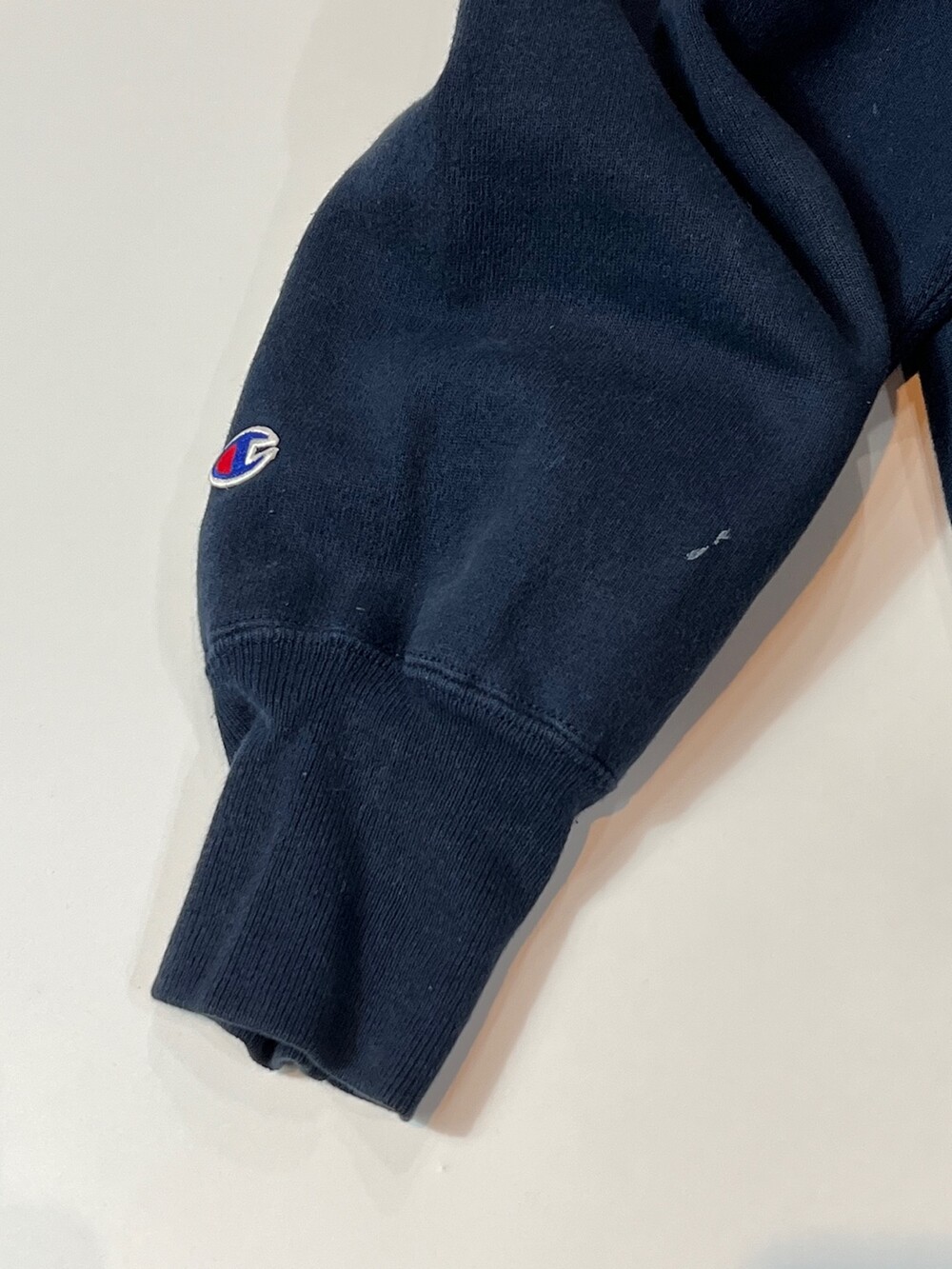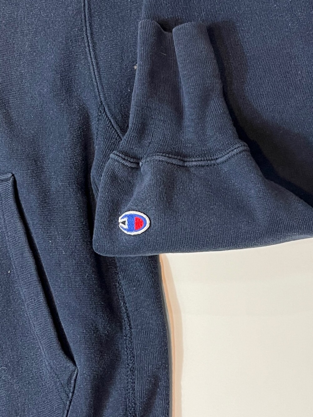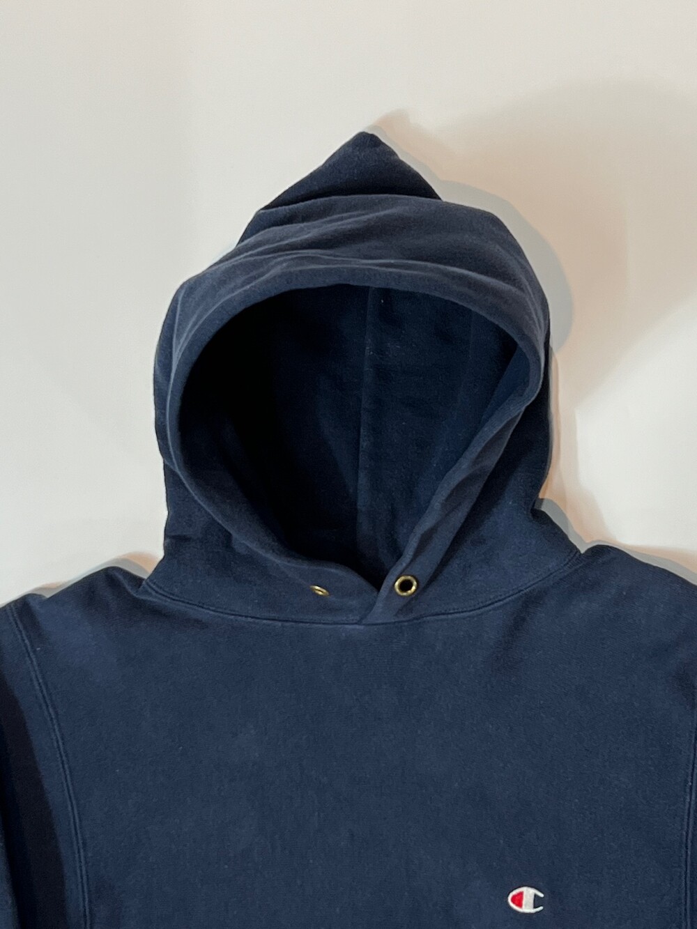 네이비 컬러의 리버스위브 스웻 후디입니다. 넓은 암홀과 길고 타이트한 소매 립으로 인해 리버스위브 특유의 실루엣이 두드러지는 품목입니다. 거기에 더해 각잡힌 고깔 형태의 후드는 특유의 미국발 스포츠웨어 특유의 투박함이 두드러지는 요소입니다.