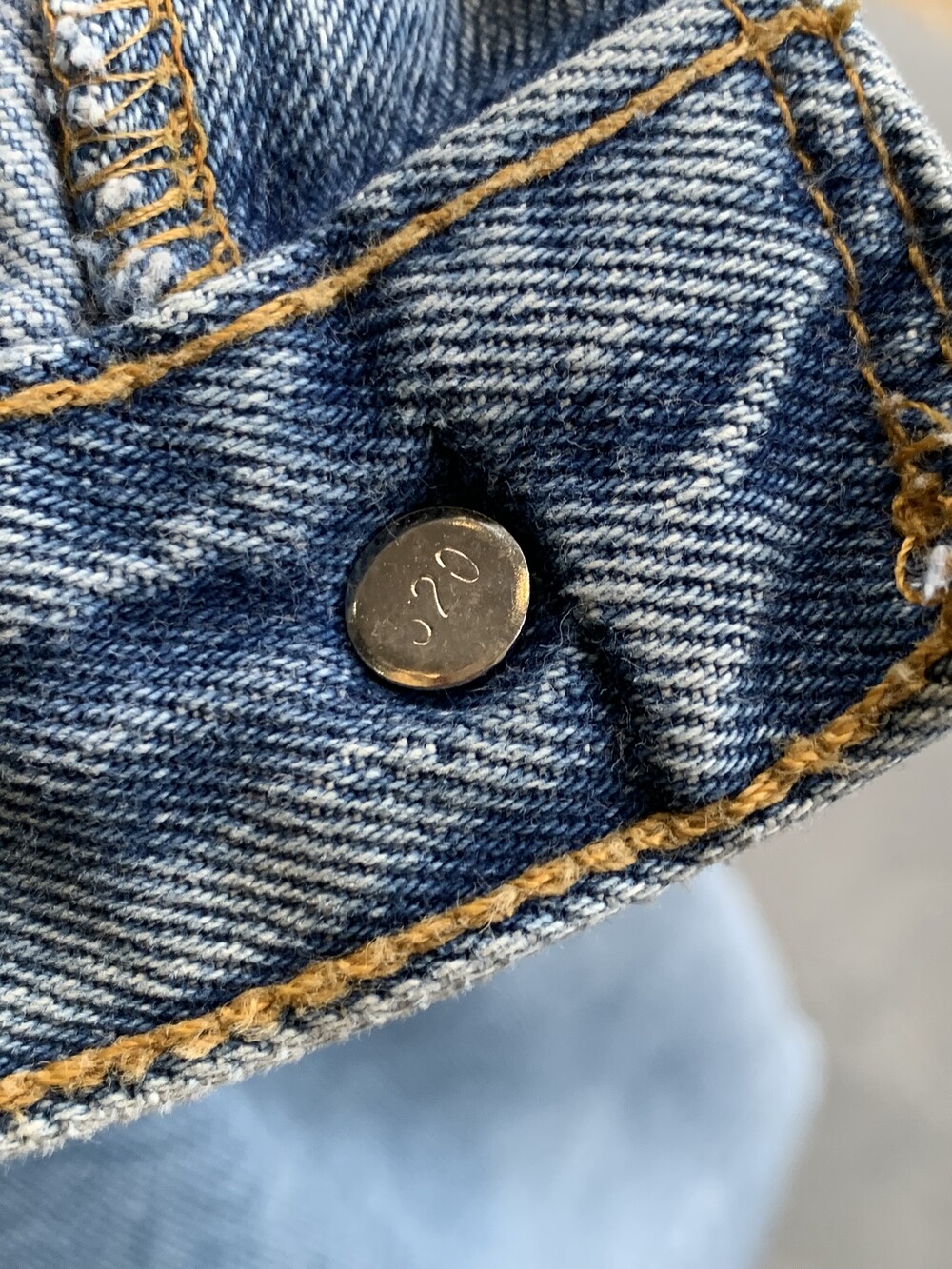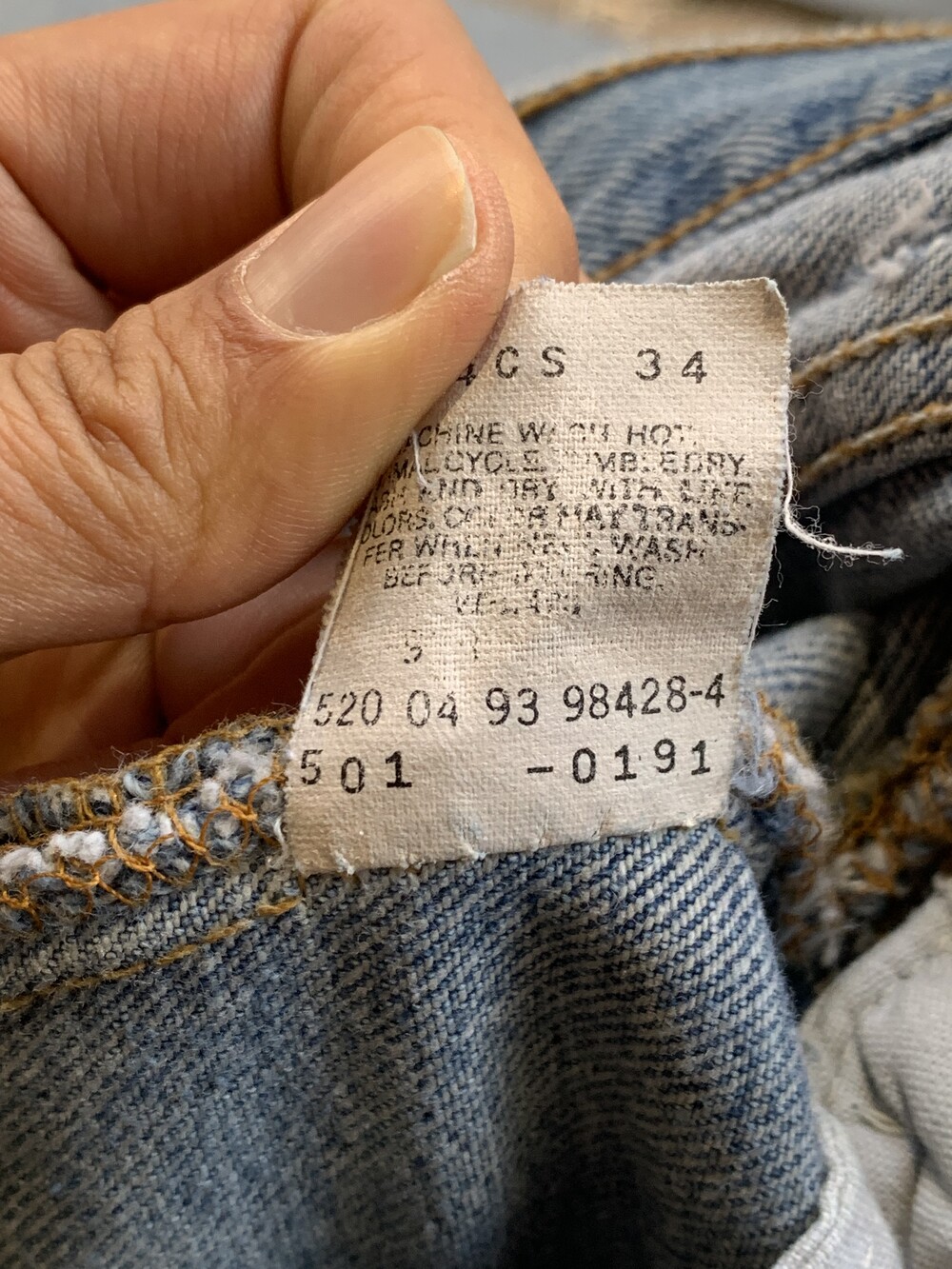 클래식한 슬림 스트레이트 실루엣, 버튼 플라이 사양의 리바이스 501 데님팬츠입니다. 1993년 4월 미국 생산으로 전반적으로 균일한 색감과 심심하지 않게 부분적으로 페이딩이 가미되어 어느 착장에나 매치할 수 있을만한 제품입니다.