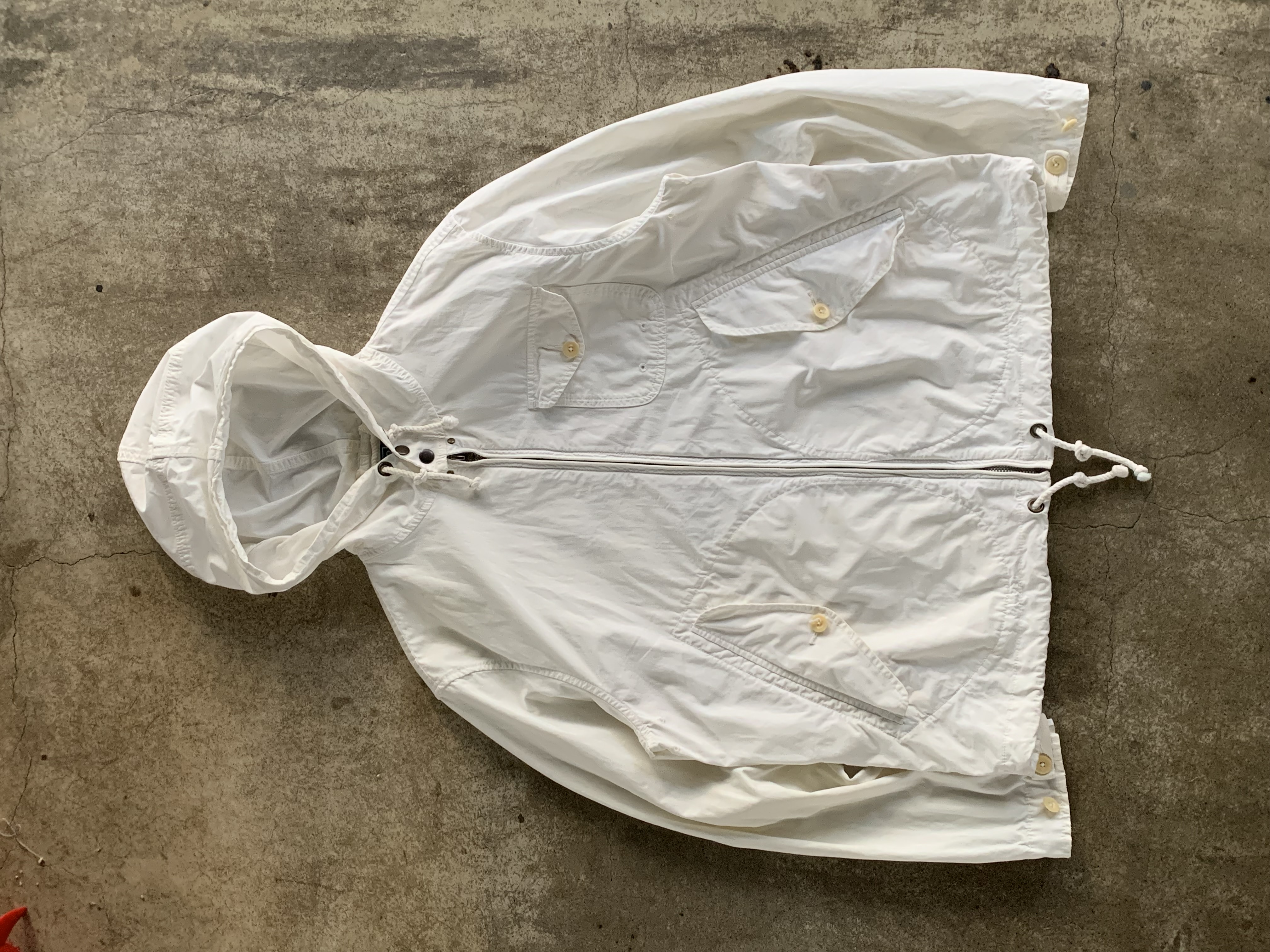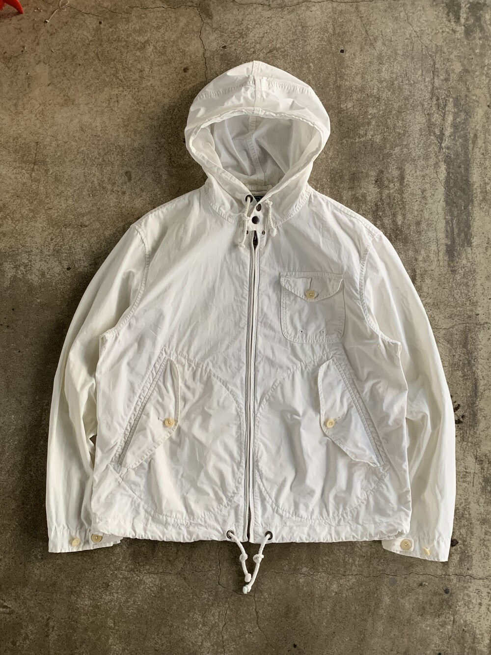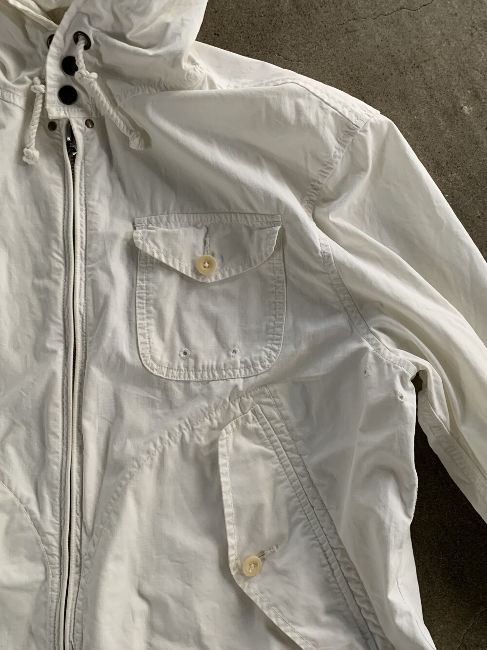 얇은 원단과 더불어 후드와 밑단 스트링, 소매 플랩이 붙는 방풍용 자켓. 안쪽 프린팅이나 라벨 등 빈티지한 무드가 가미된 제품으로, 다소 슬림한 느낌의 핏으로 최종아우터보다는 미들레이어 아우터로 활용하기를 권장드립니다.
