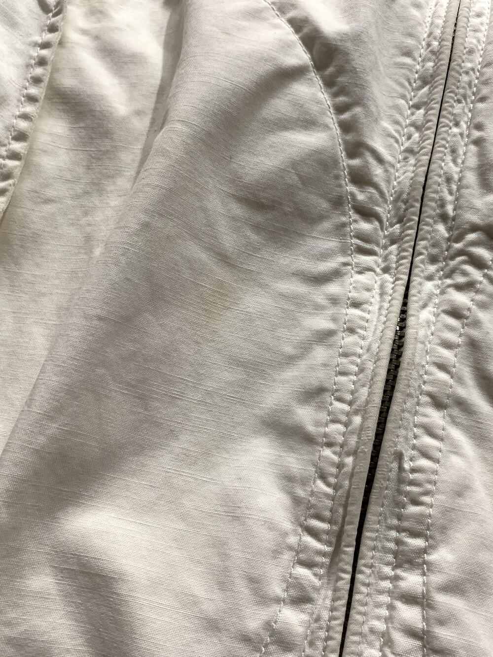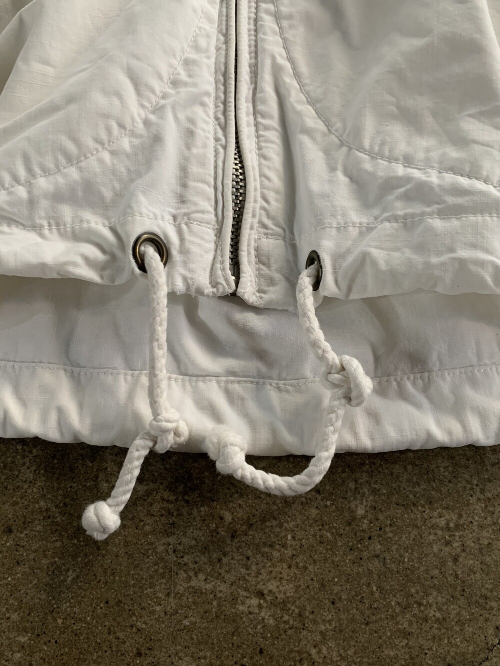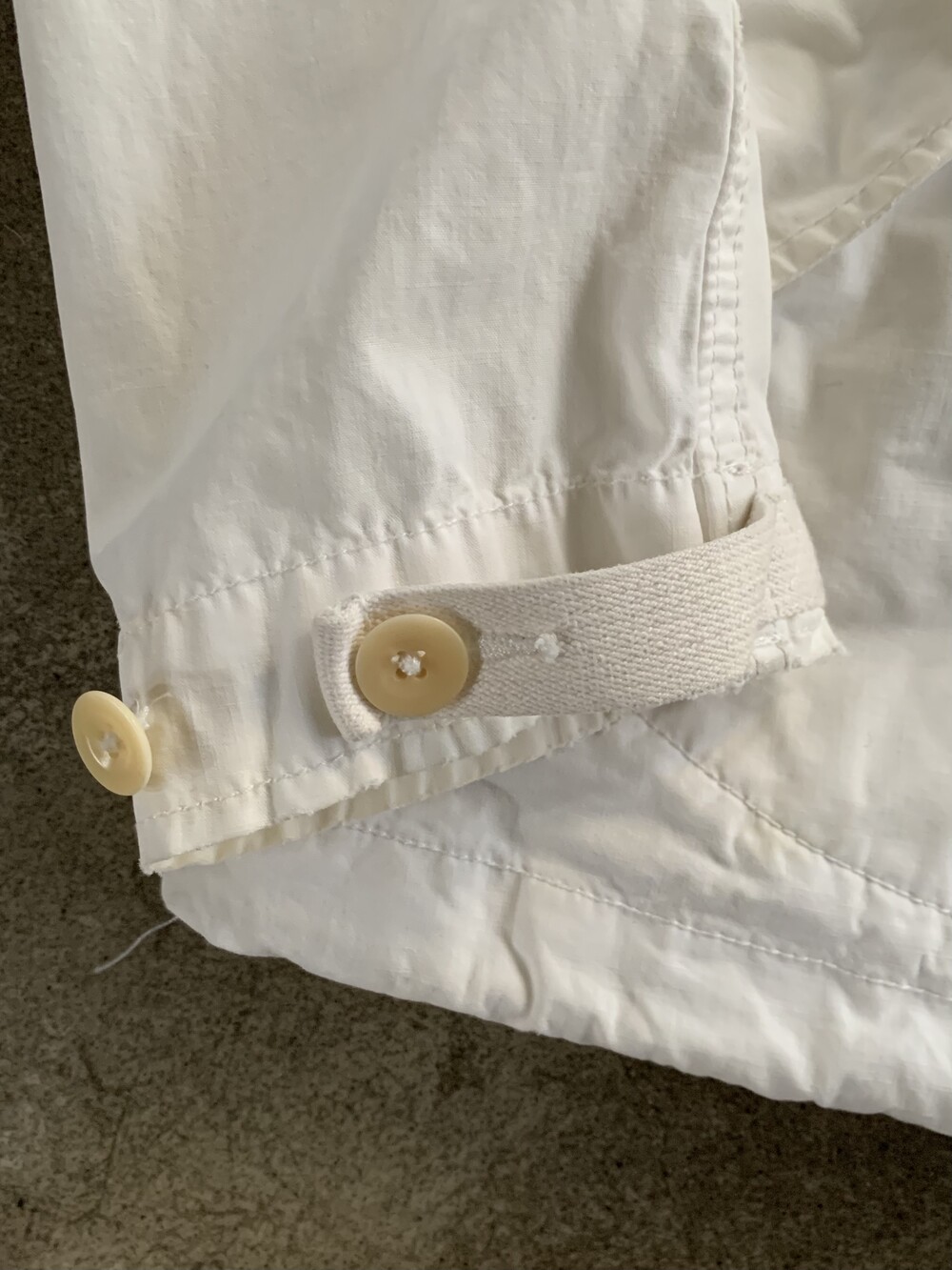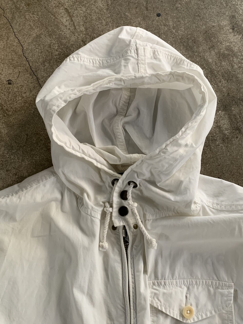 얇은 원단과 더불어 후드와 밑단 스트링, 소매 플랩이 붙는 방풍용 자켓. 안쪽 프린팅이나 라벨 등 빈티지한 무드가 가미된 제품으로, 다소 슬림한 느낌의 핏으로 최종아우터보다는 미들레이어 아우터로 활용하기를 권장드립니다.